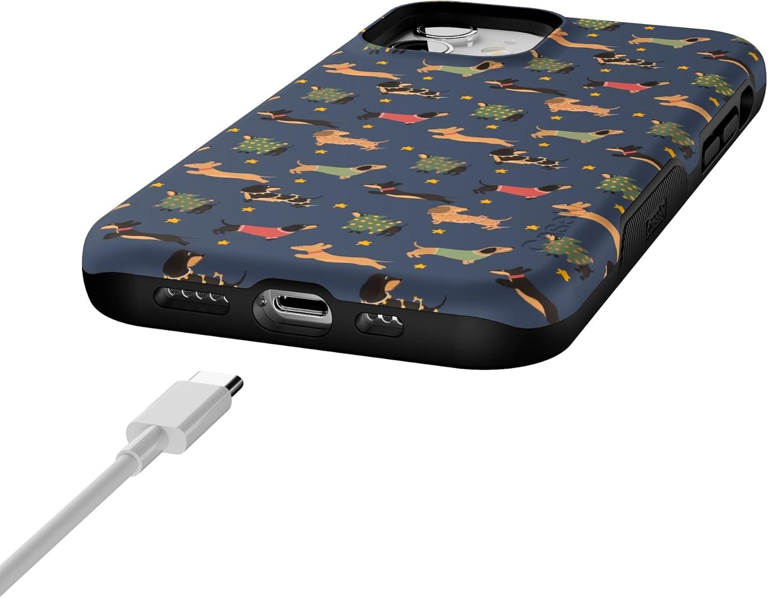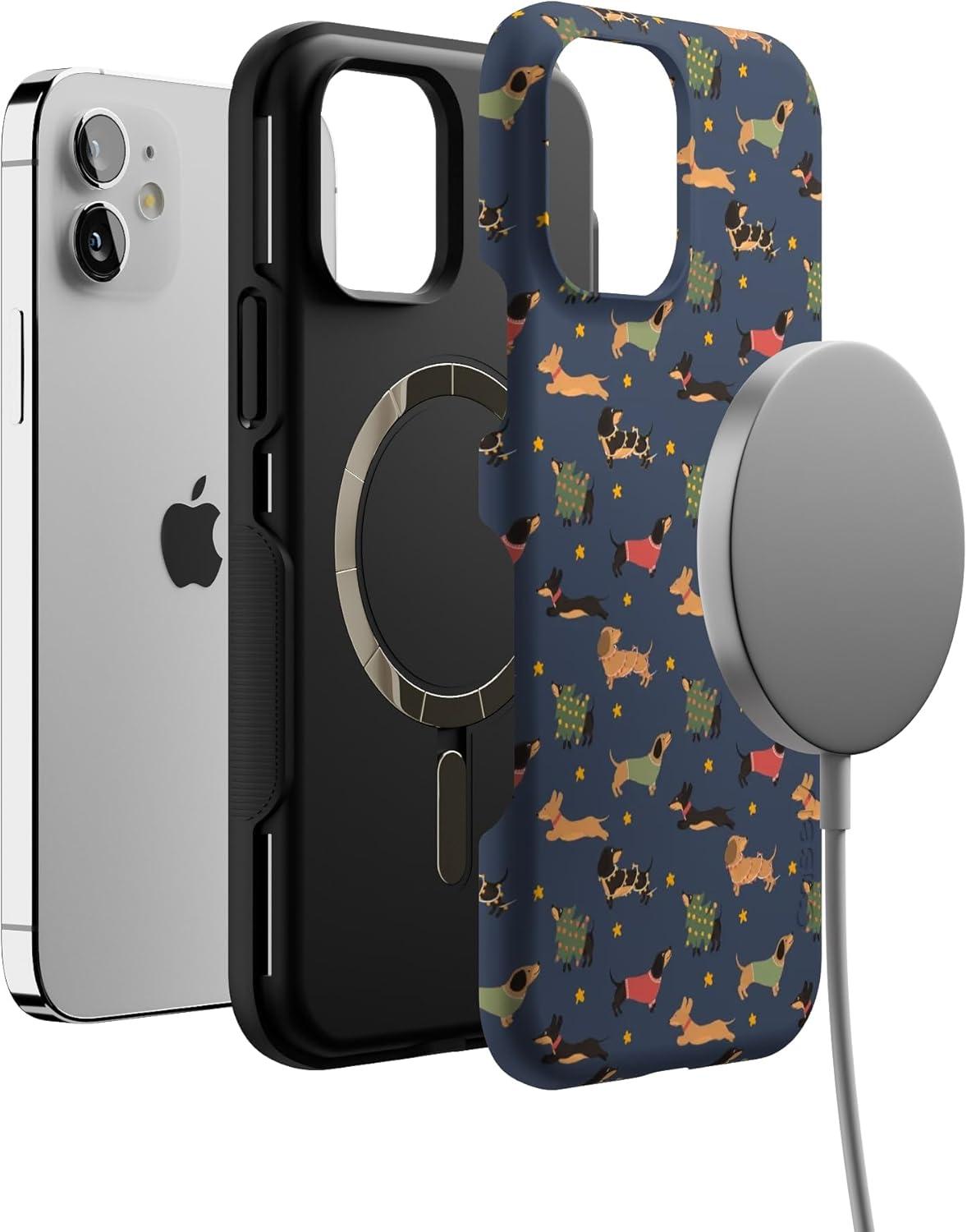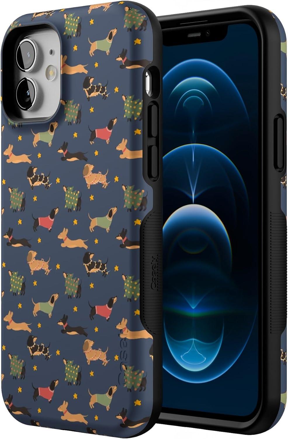 Casely iPhone 12/12 Pro Case | Dashing Doxies | Dachshund Dog | Bold Protective Design | MagSafe Compatible Design