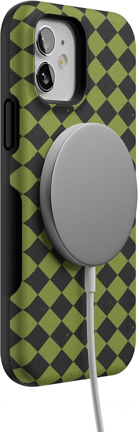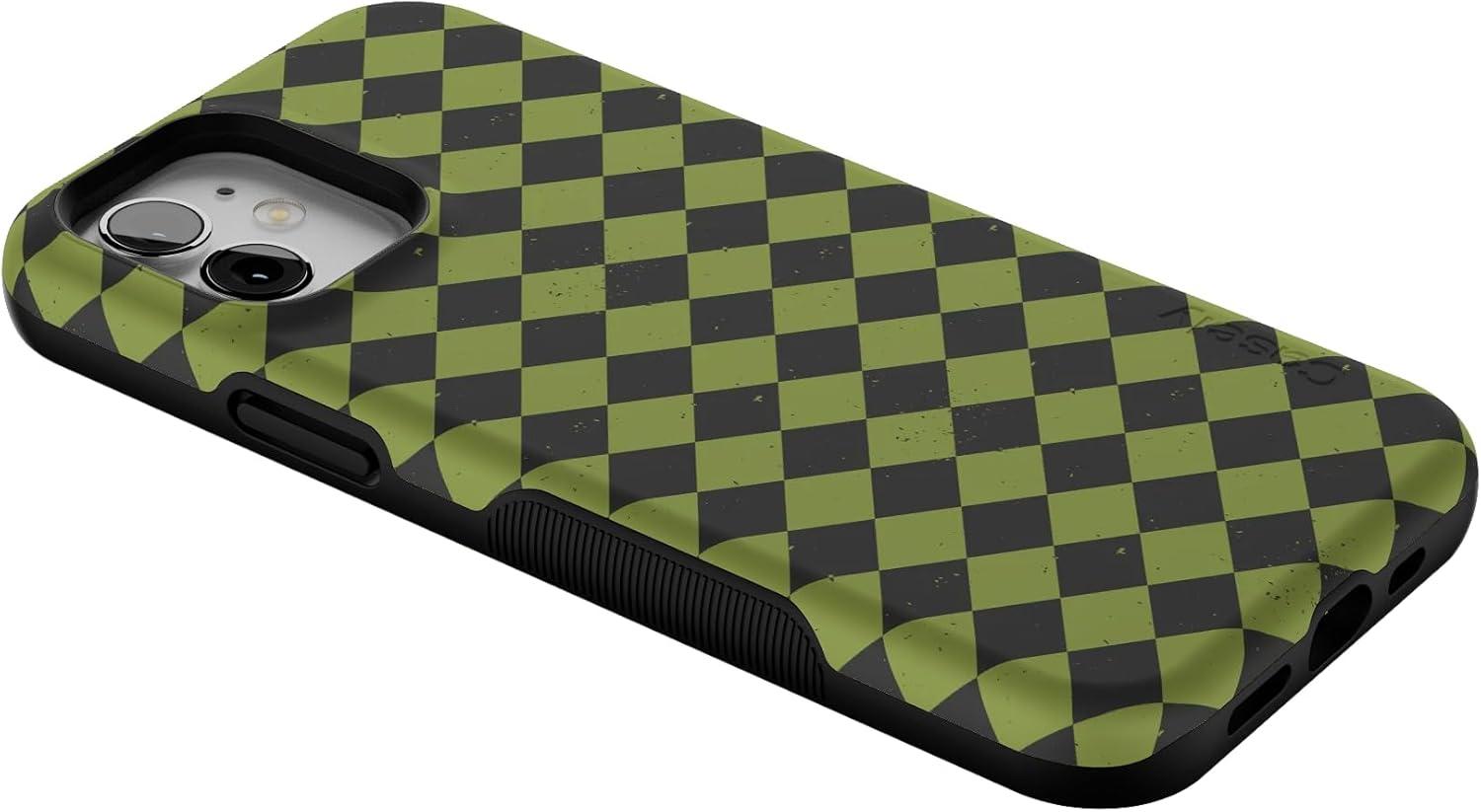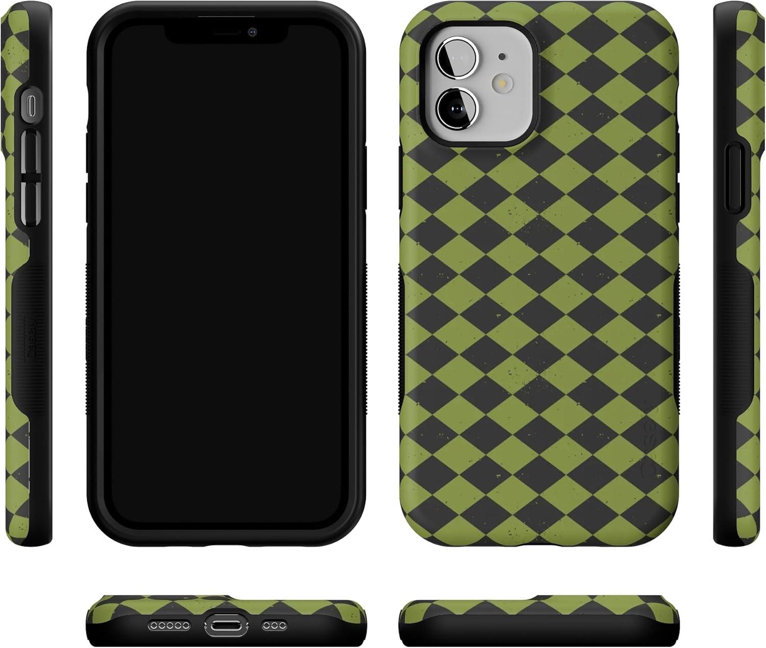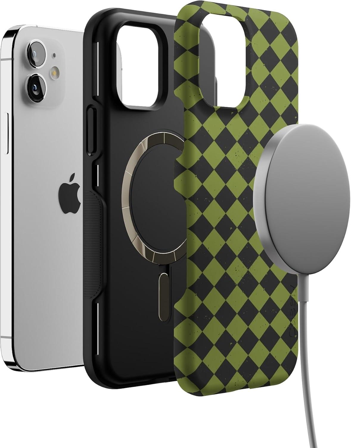 Casely iPhone 12/12 Pro Case | Harlequin Wicked Diamond | Black and Green | Bold Protective Design | MagSafe Compatible Design
