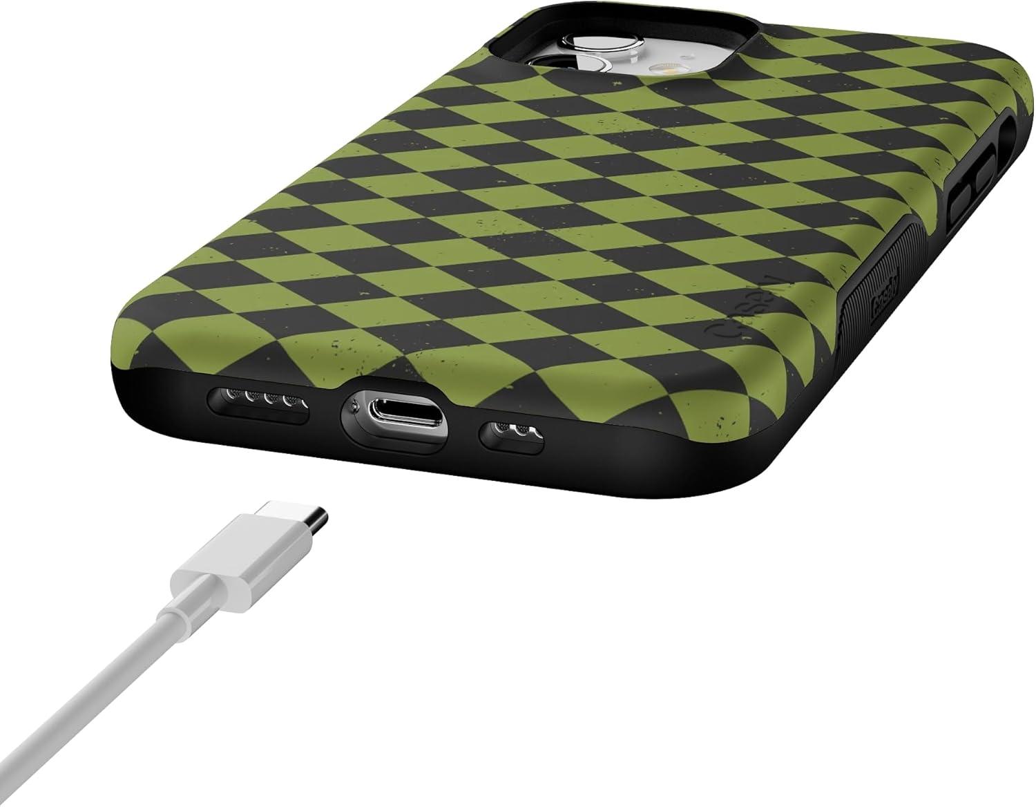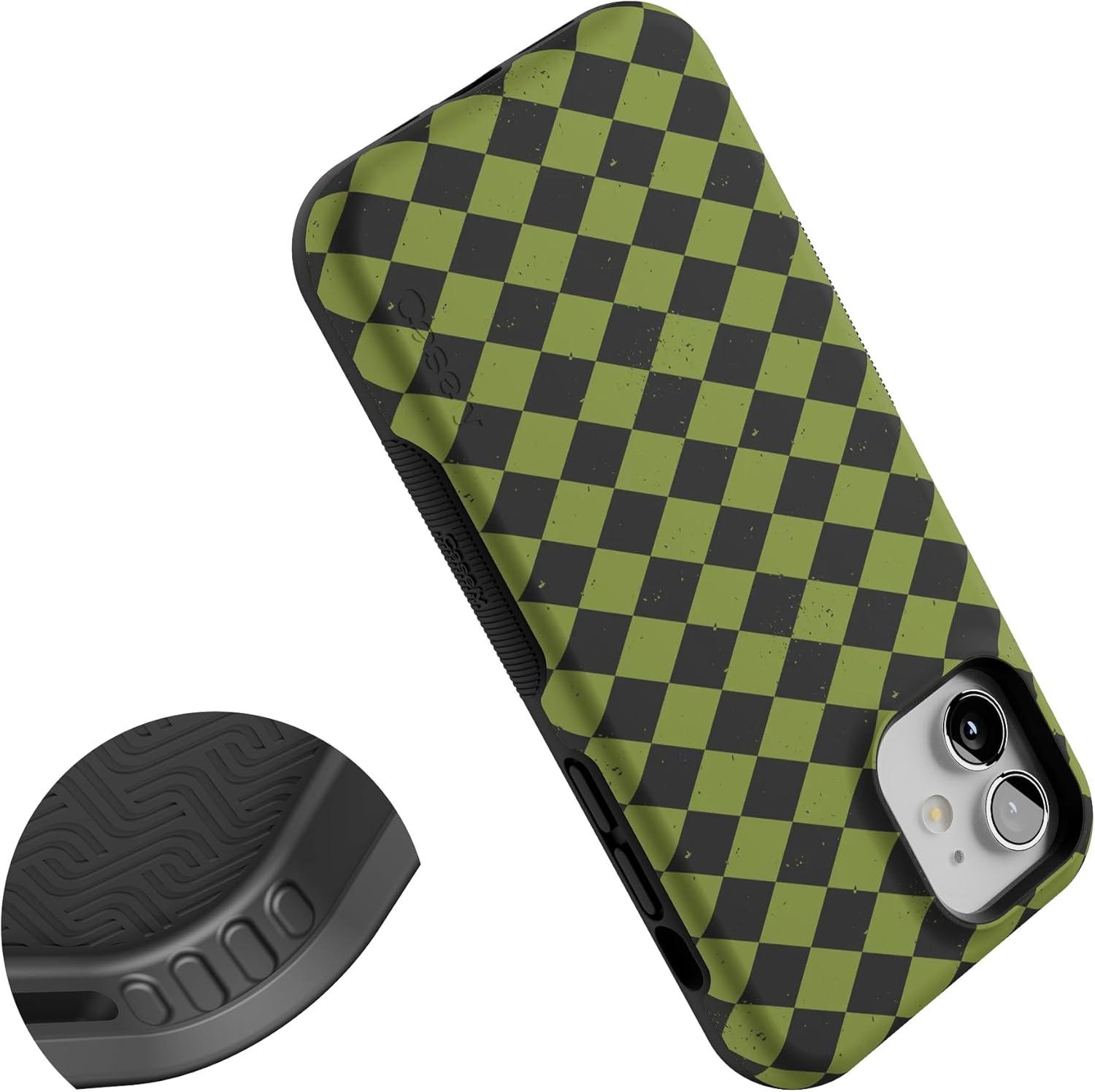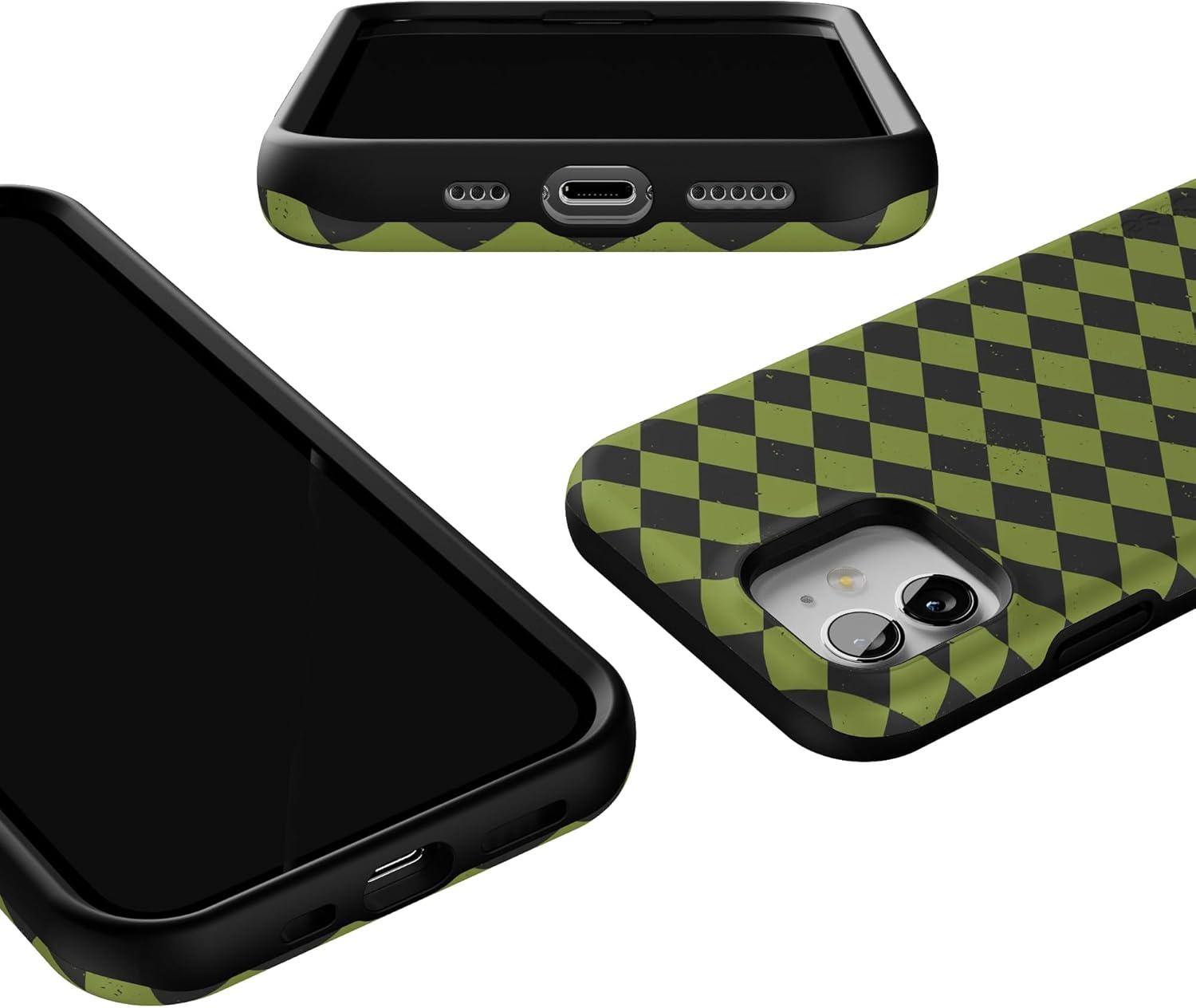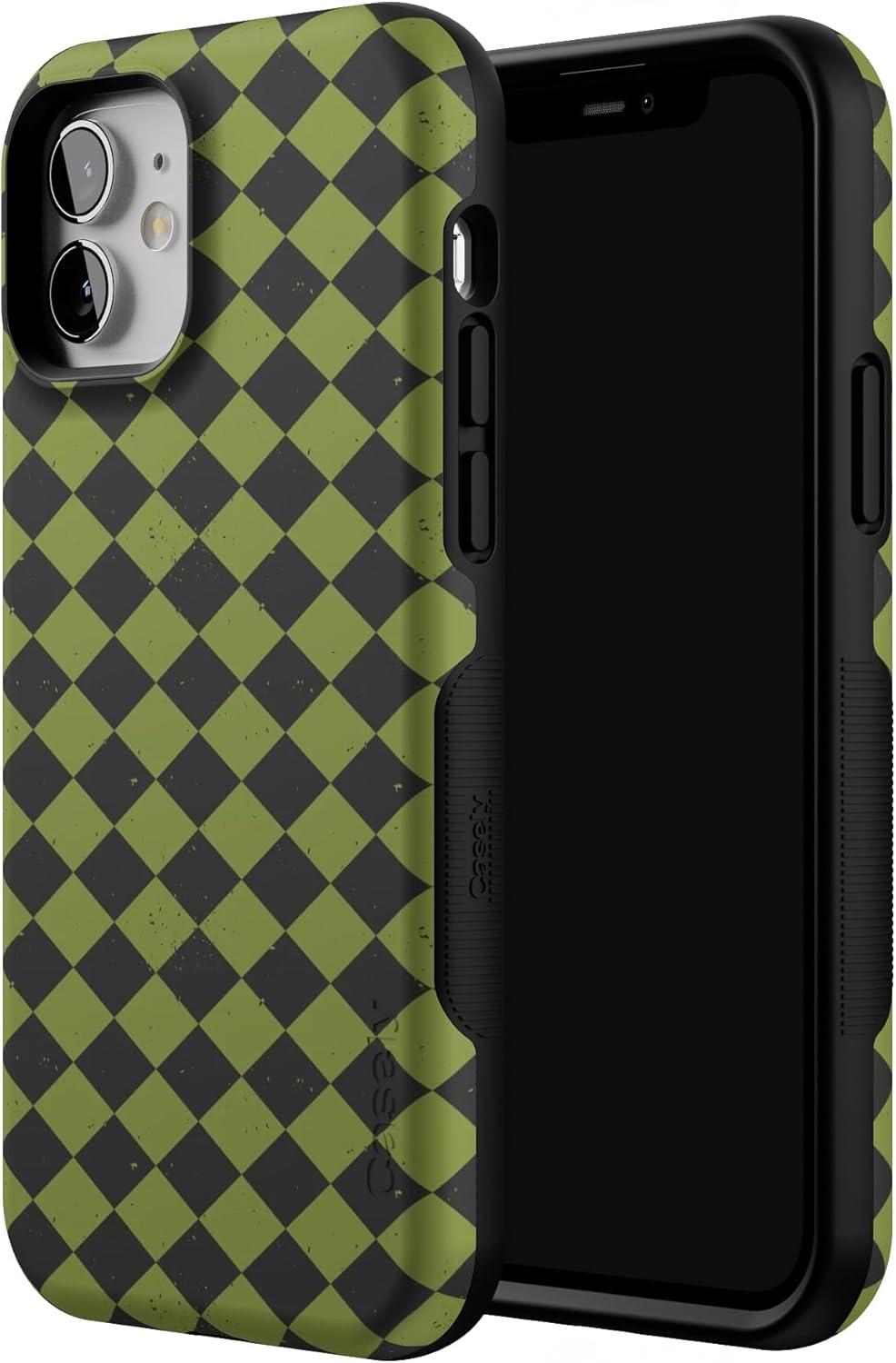 Casely iPhone 12/12 Pro Case | Harlequin Wicked Diamond | Black and Green | Bold Protective Design | MagSafe Compatible Design