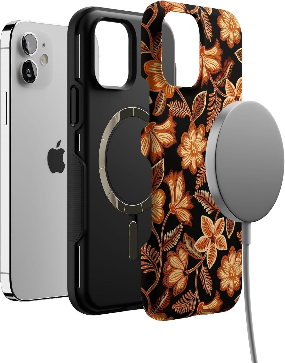 Casely iPhone 12/12 Pro Case | Maple Flowers | Floral Foliage | Bold Protective Design | MagSafe Compatible Design