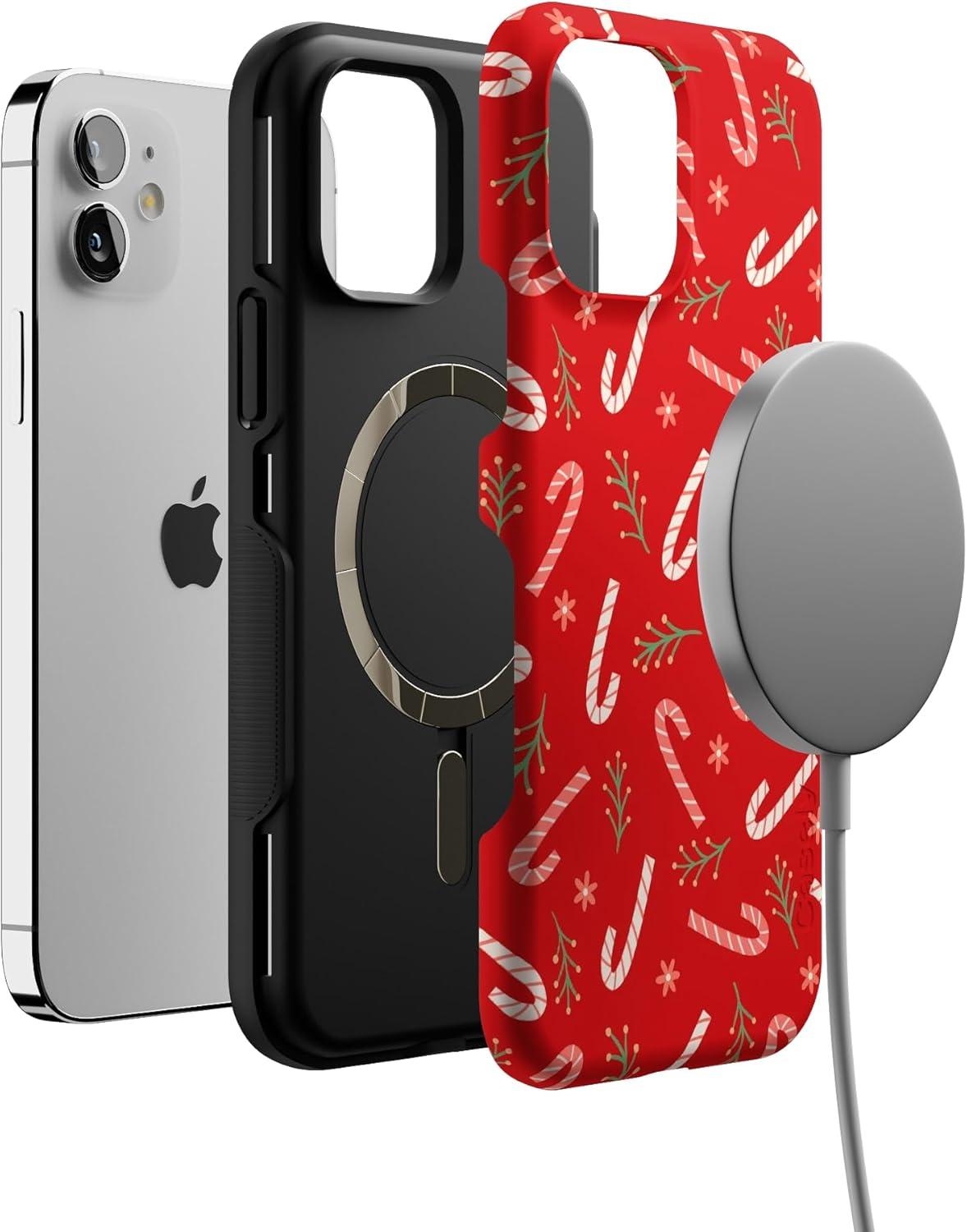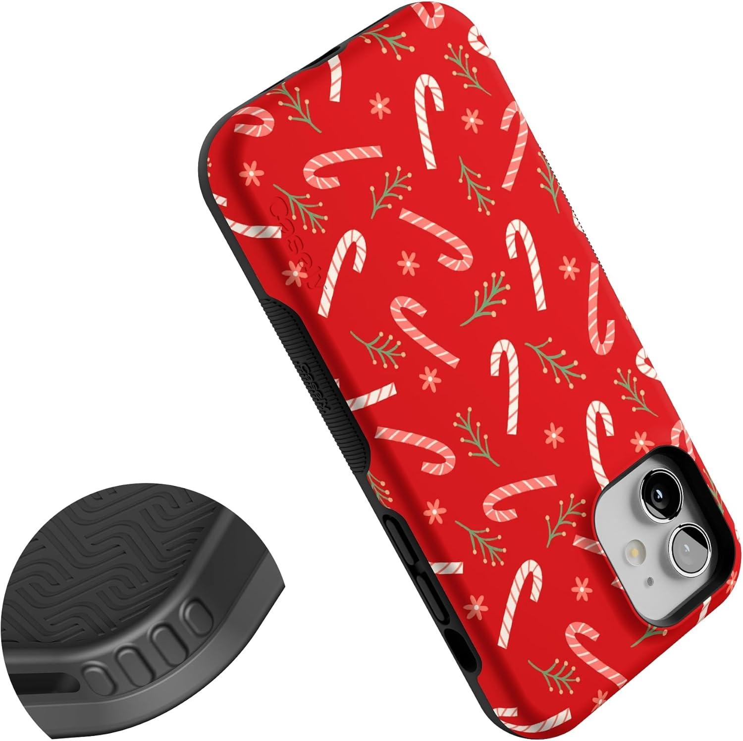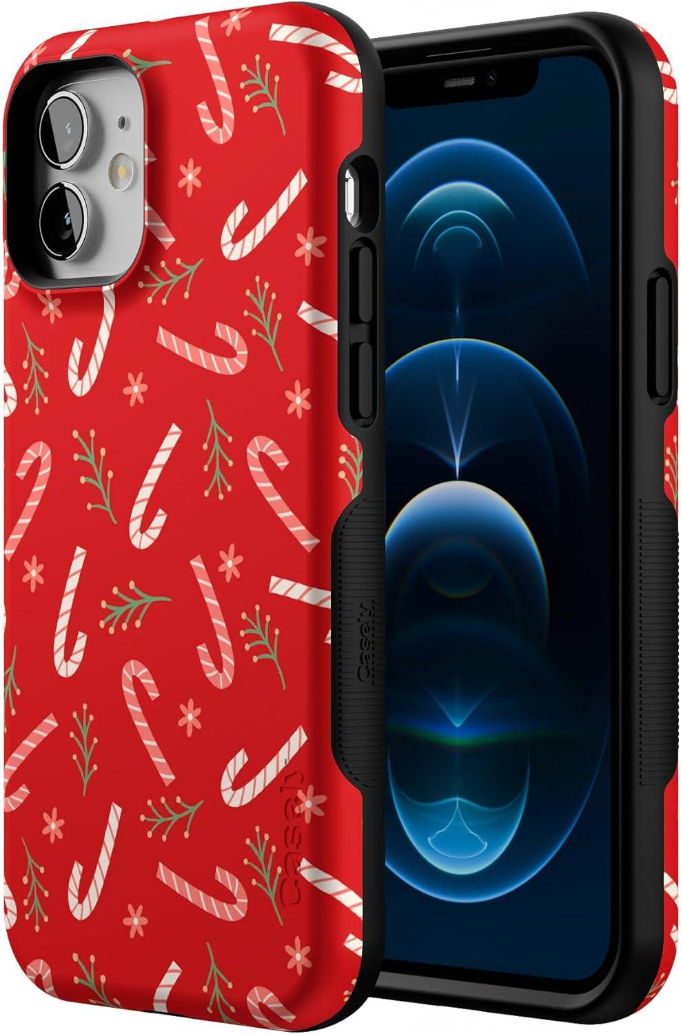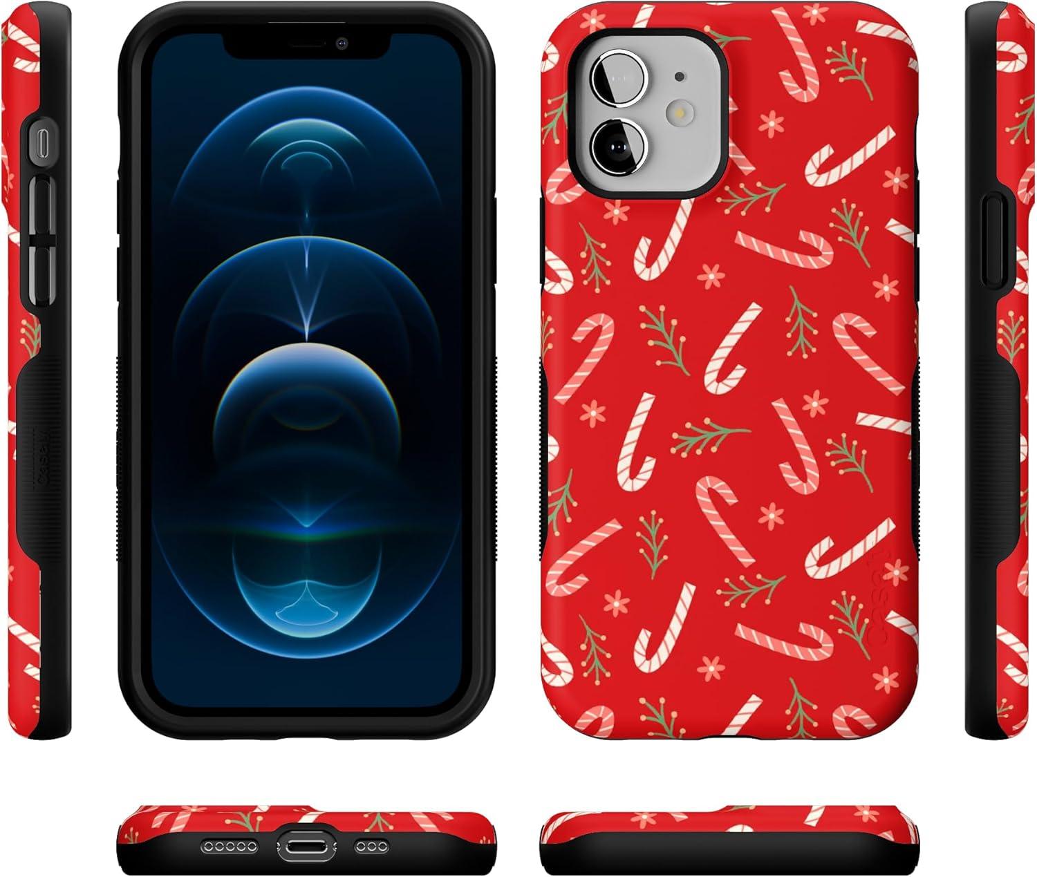 Casely iPhone 12/12 Pro Case | Peppermint Kiss | Candy Cane | Bold Protective Design | MagSafe Compatible Design