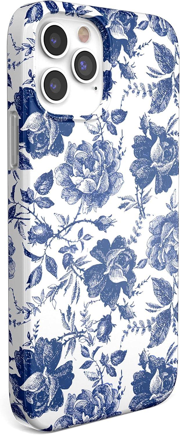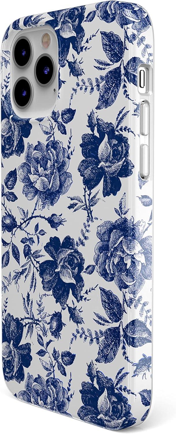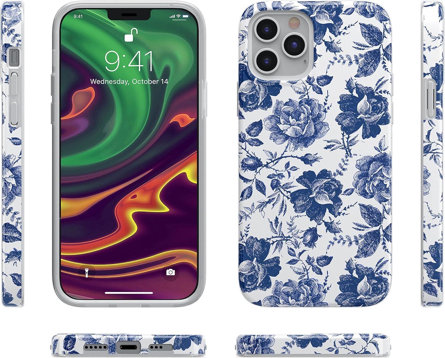 Casely iPhone 12/12 Pro Case | Spring Forward | Daisy Floral | Classic Ultra-Slim Design(Rose to Fame | Blue & White Rose Floral)