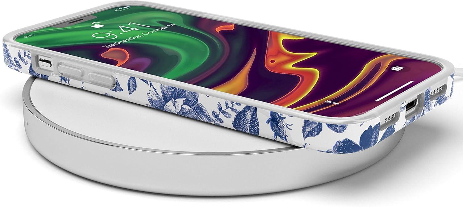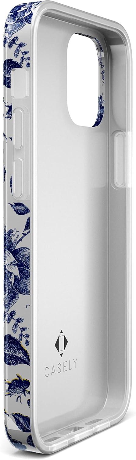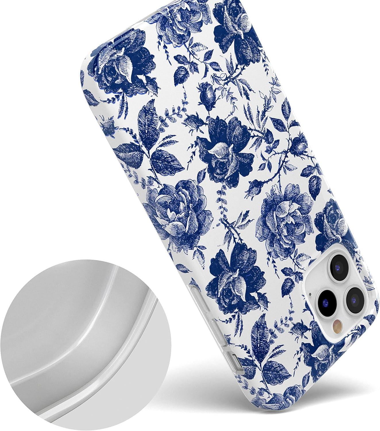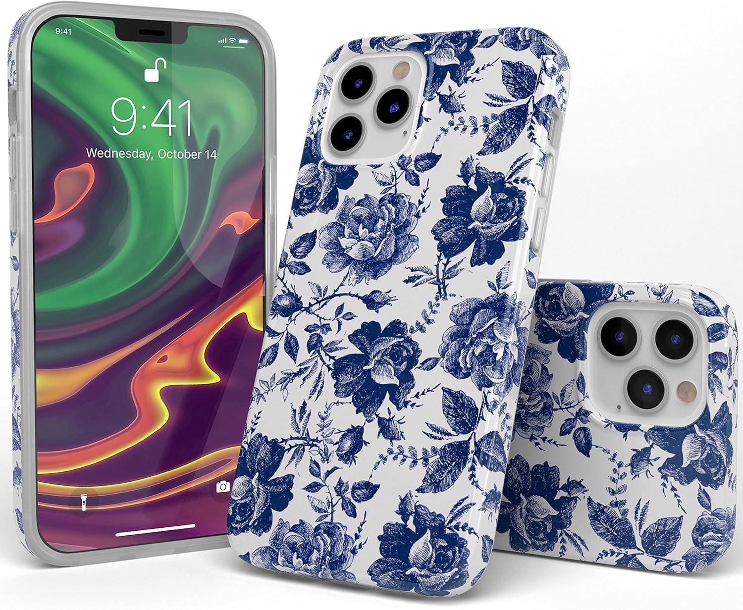 Casely iPhone 12/12 Pro Case | Spring Forward | Daisy Floral | Classic Ultra-Slim Design(Rose to Fame | Blue & White Rose Floral)