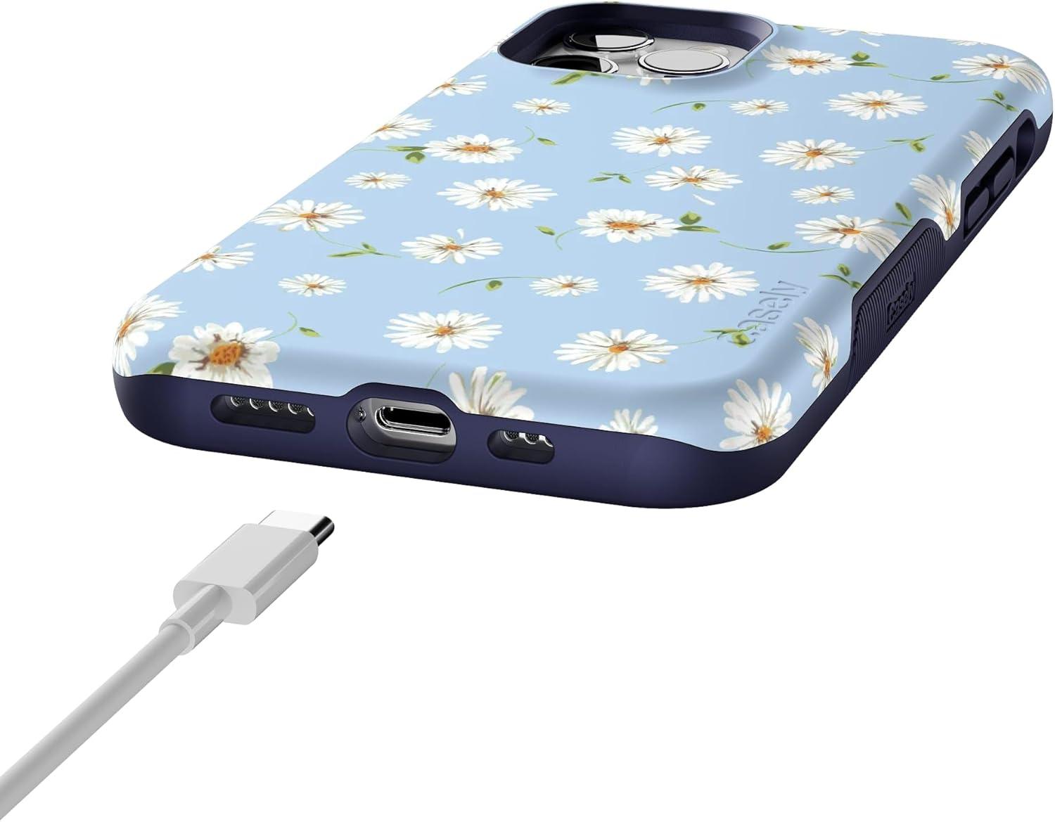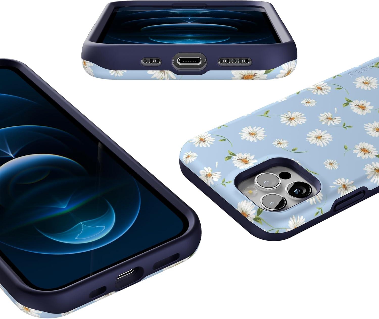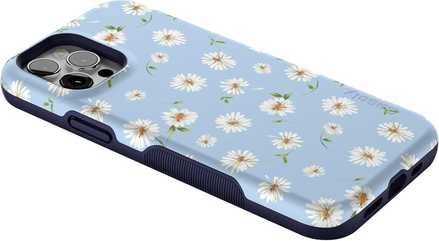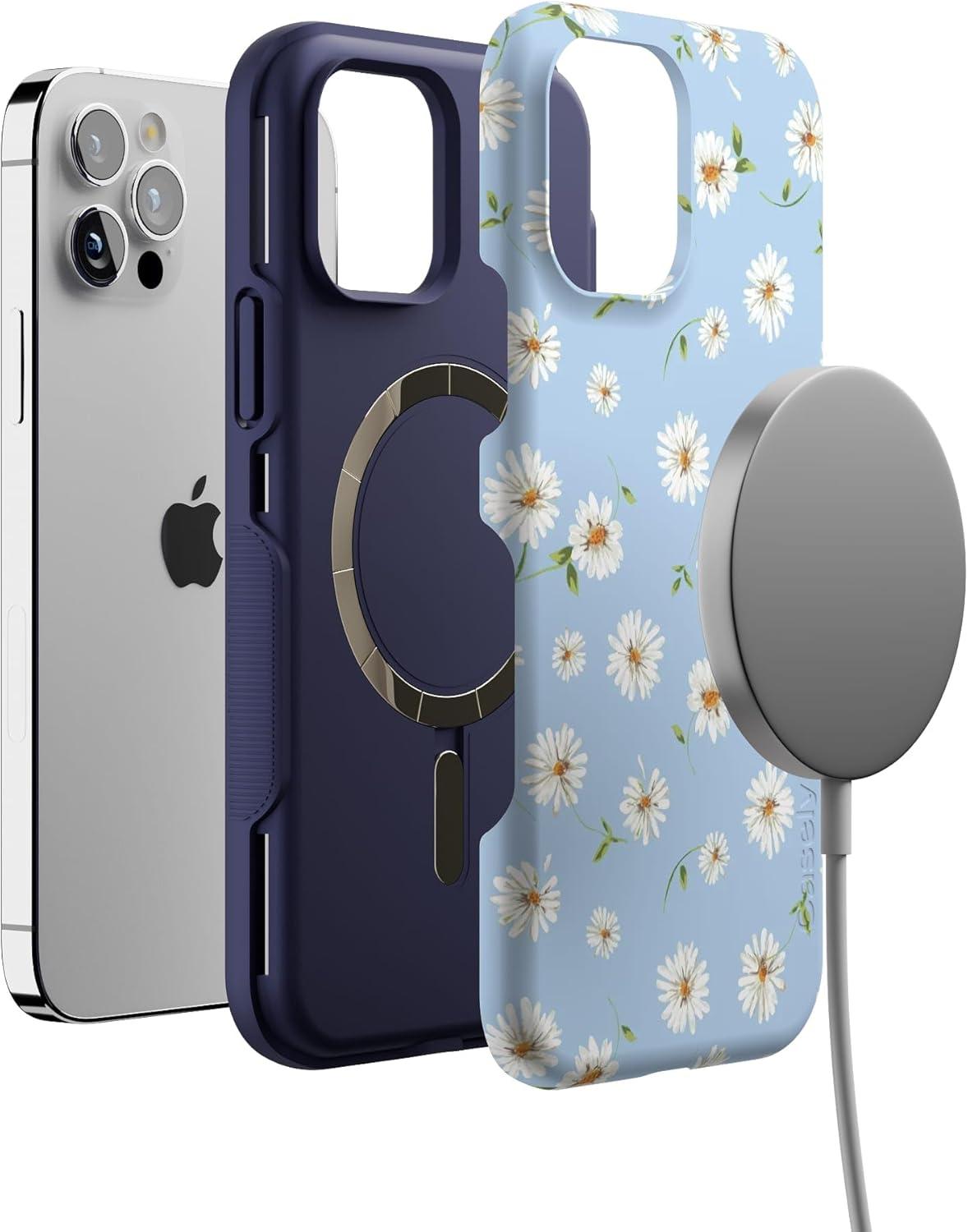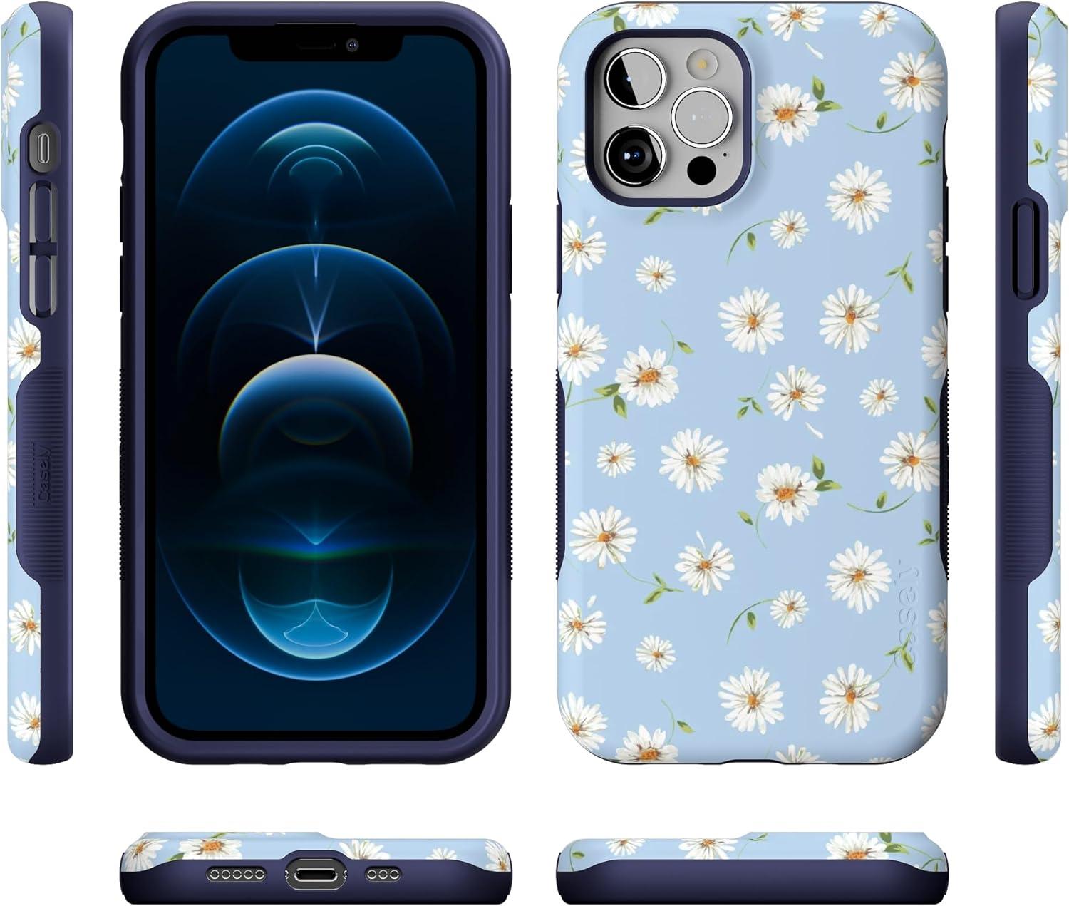 Casely iPhone 12/12 Pro Case | Tropical Dreams | Pura Vida | Compatible with MagSafe | Bold Protective Design(Baby Blue Floral | Daisy Daydream)