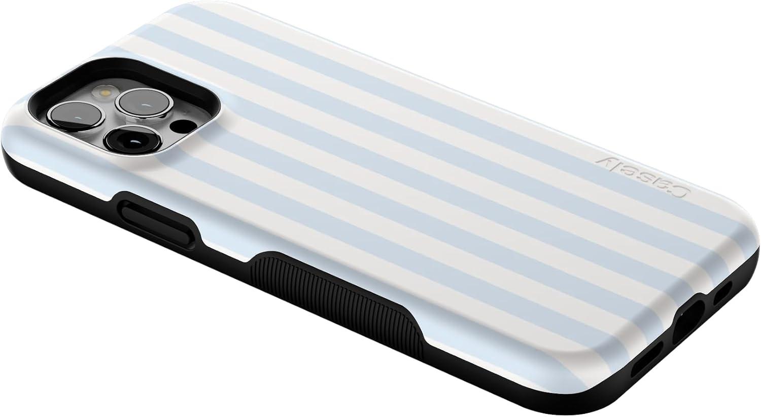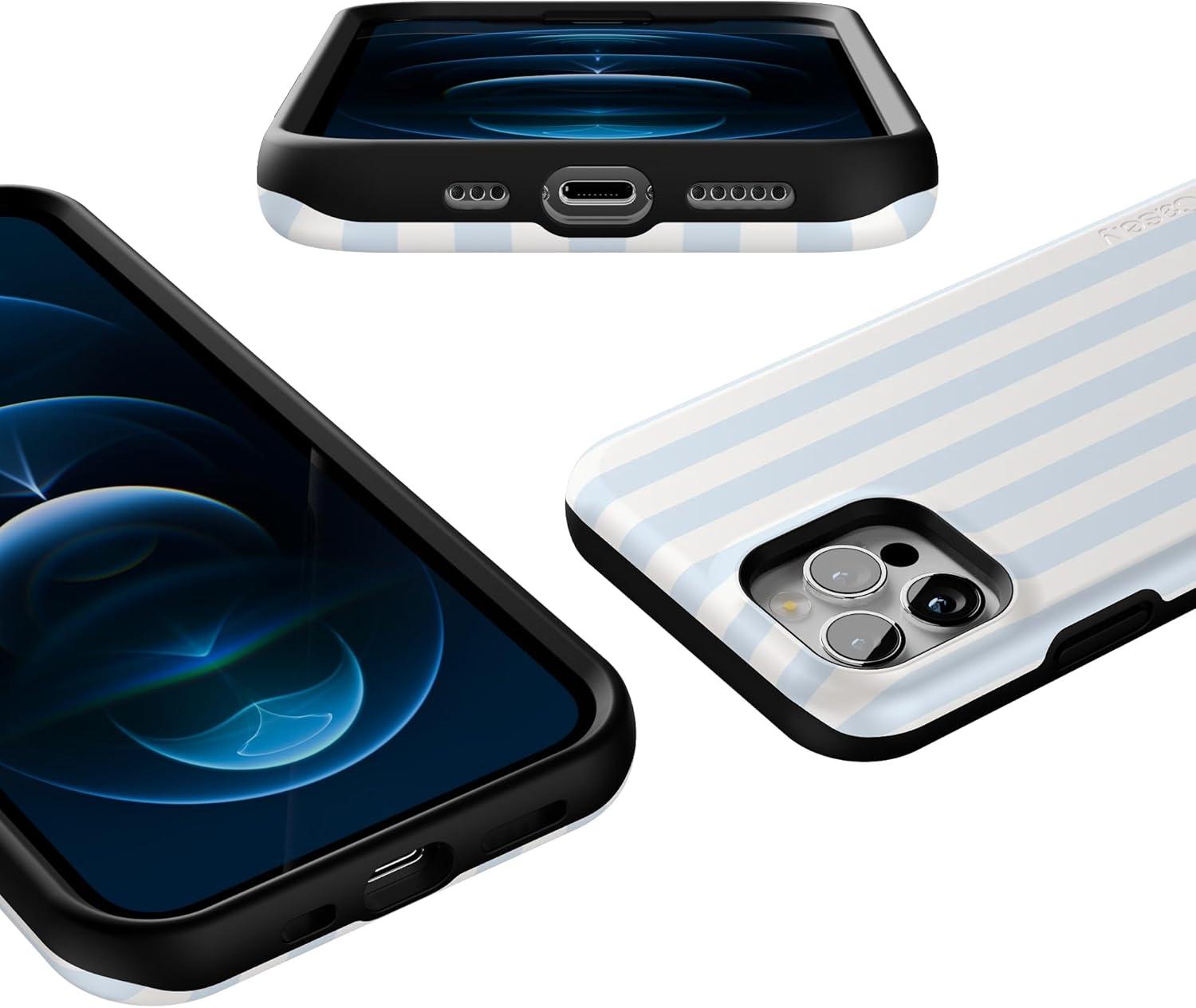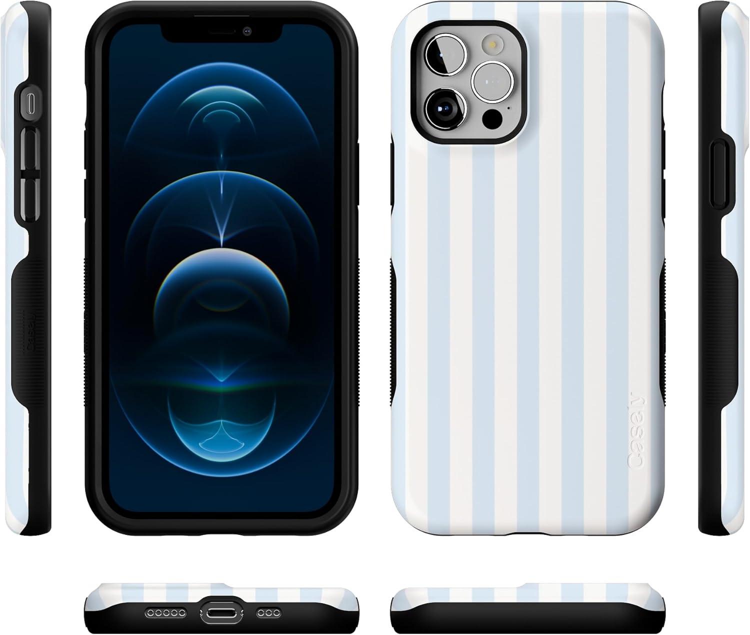 Casely iPhone 12/12 Pro Case | Tropical Dreams | Pura Vida | Compatible with MagSafe | Bold Protective Design(Blue Stripes | Sunday Best)