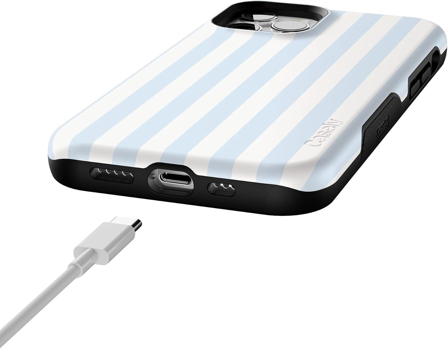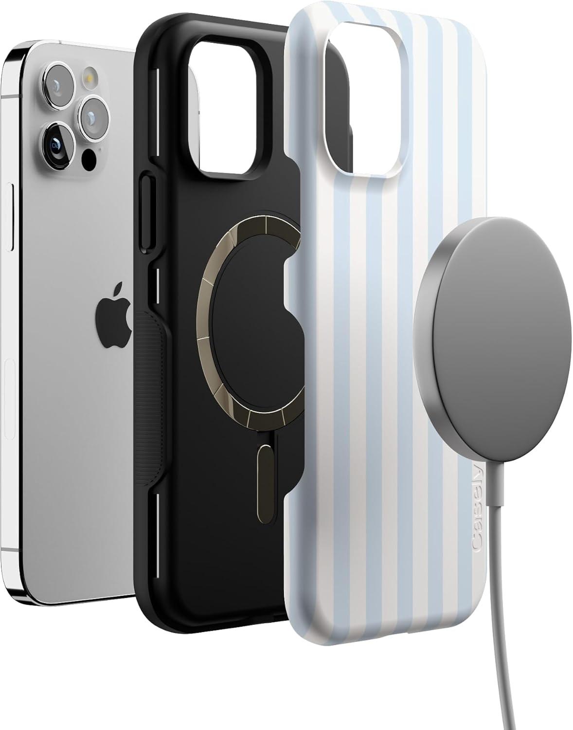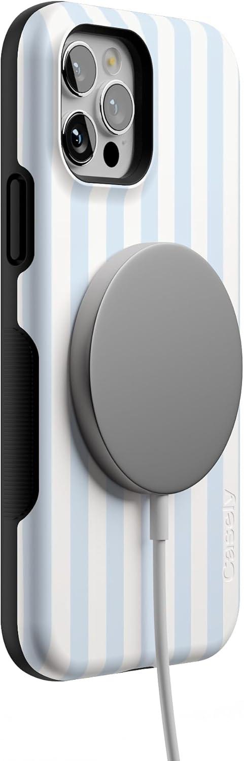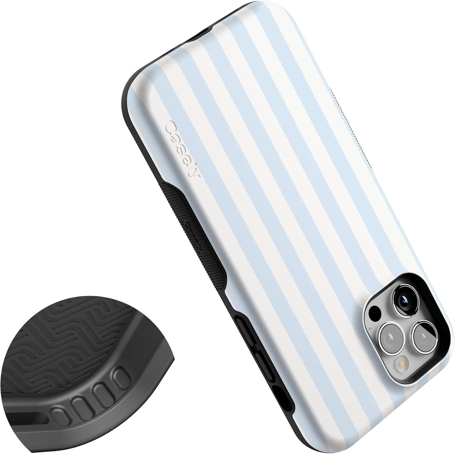 Casely iPhone 12/12 Pro Case | Tropical Dreams | Pura Vida | Compatible with MagSafe | Bold Protective Design(Blue Stripes | Sunday Best)