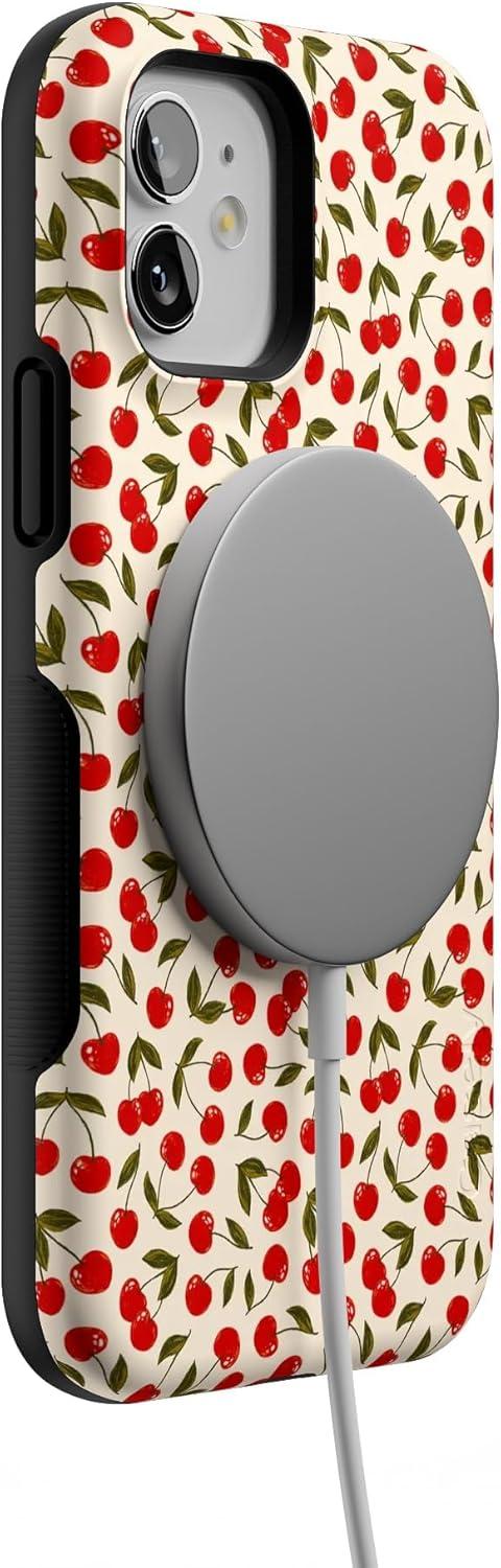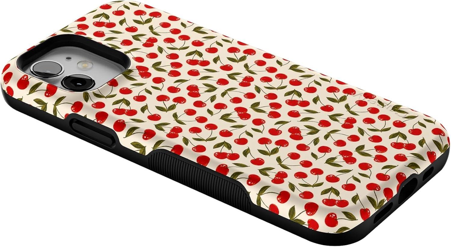 Casely iPhone 12/12 Pro Case | Tropical Dreams | Pura Vida | Compatible with MagSafe | Bold Protective Design(Cherry on Top | Red Cherries)
