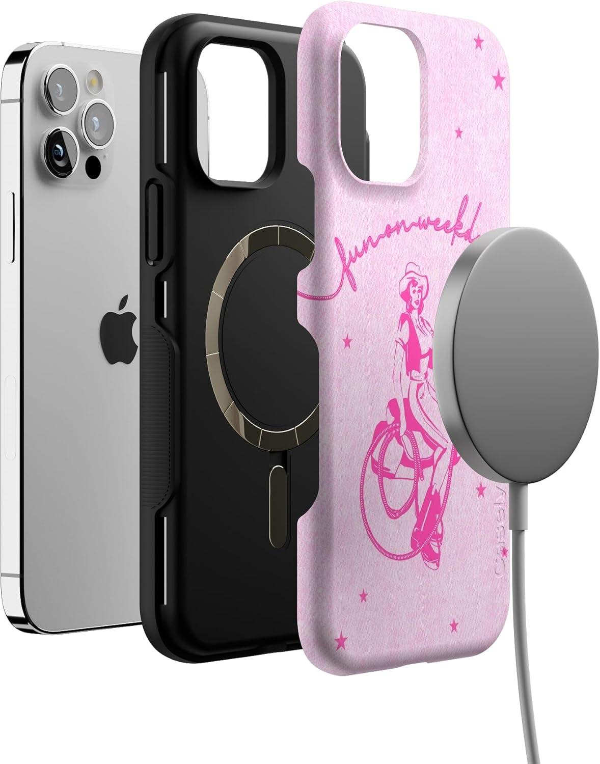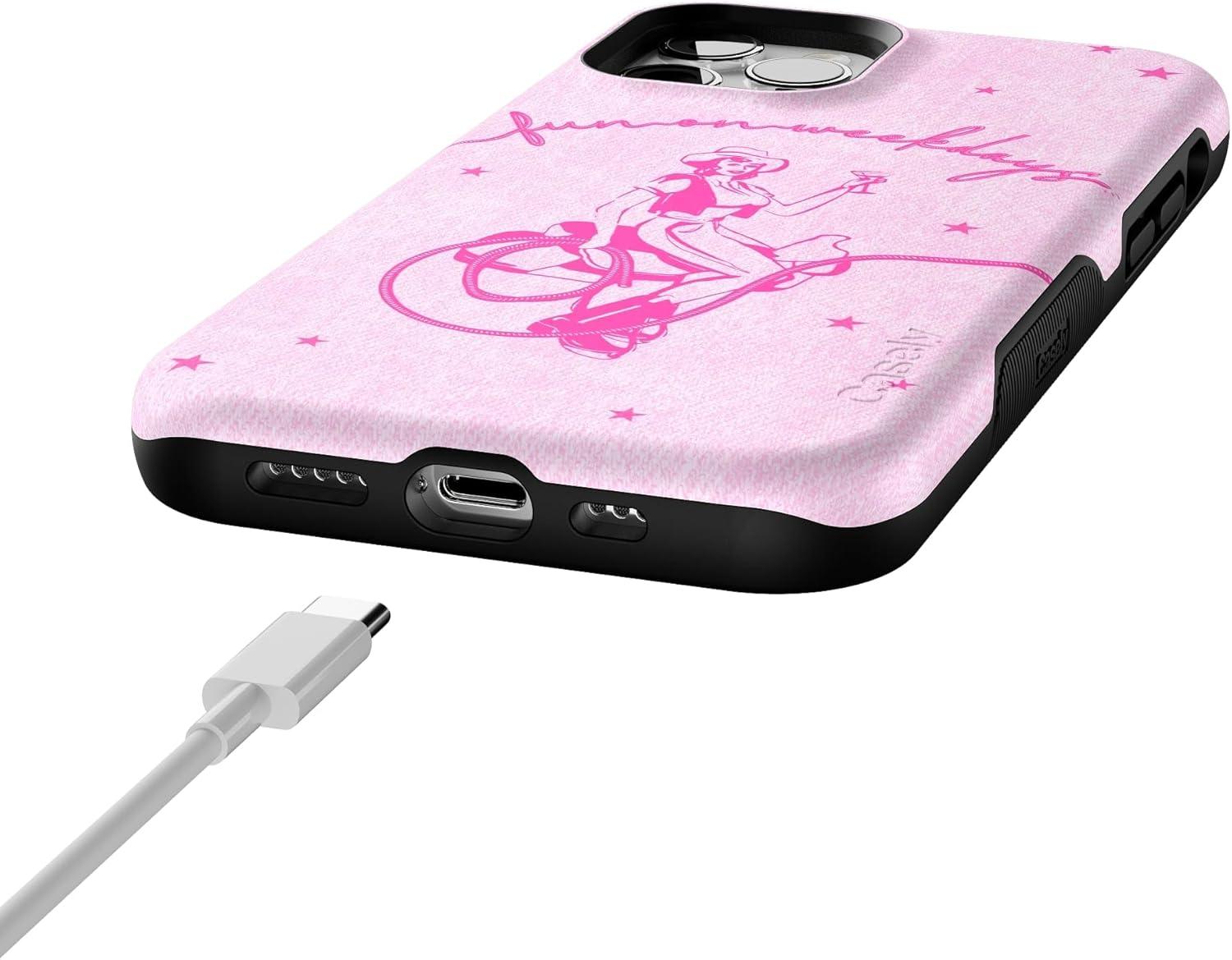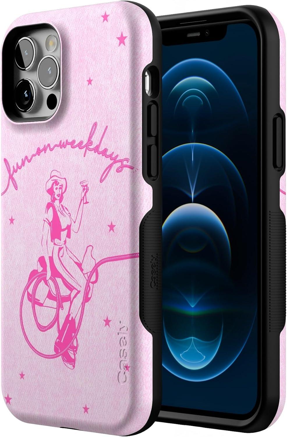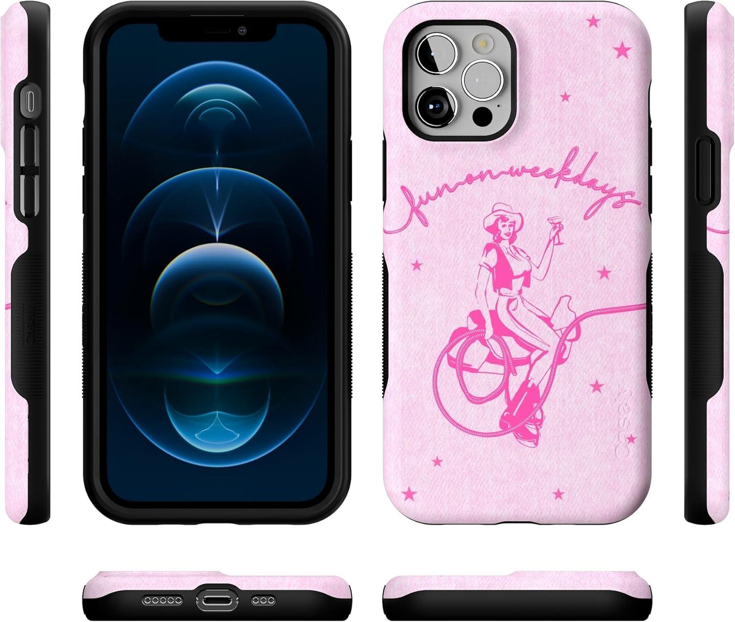 Casely iPhone 12/12 Pro Case | Tropical Dreams | Pura Vida | Compatible with MagSafe | Bold Protective Design(Denim Cowgirl | Fun on Weekdays)