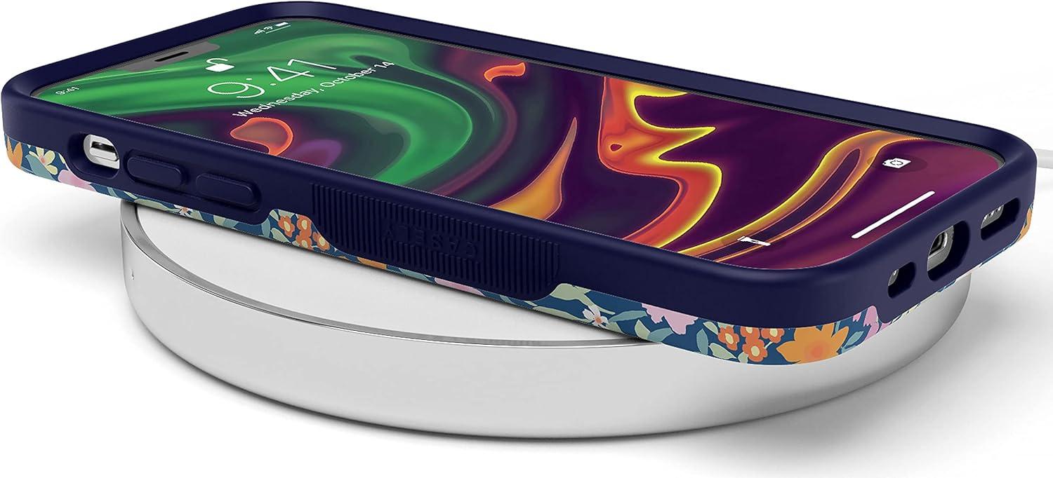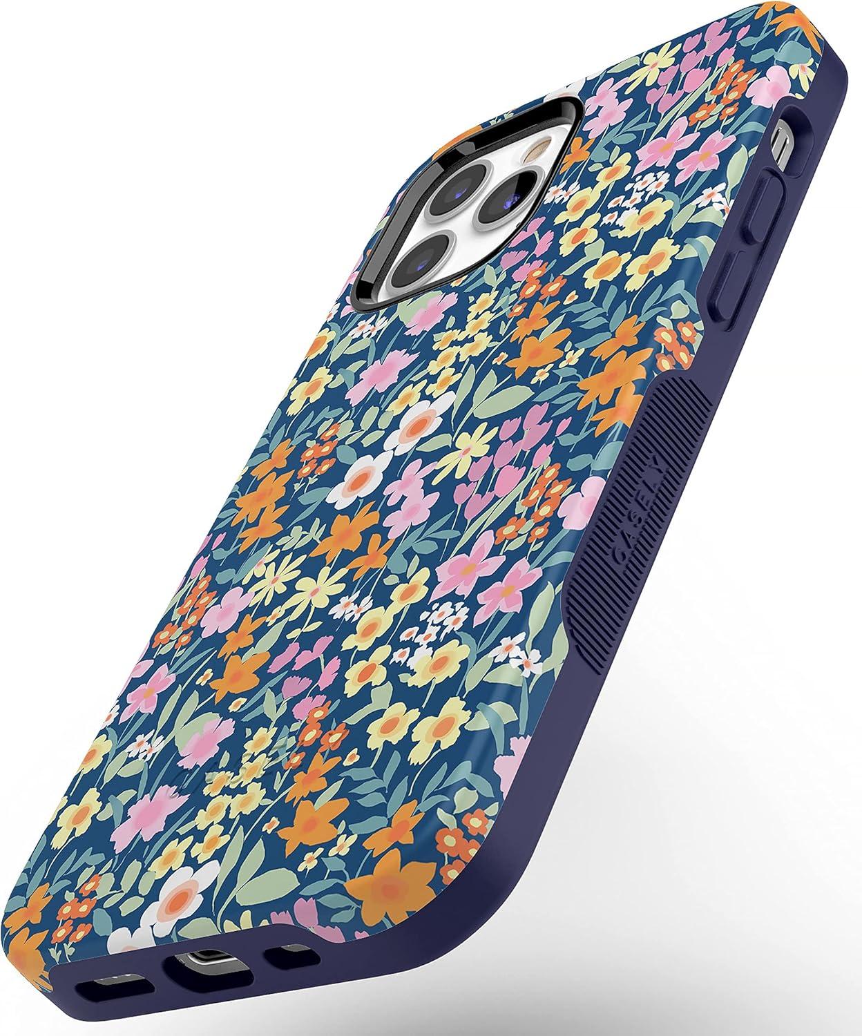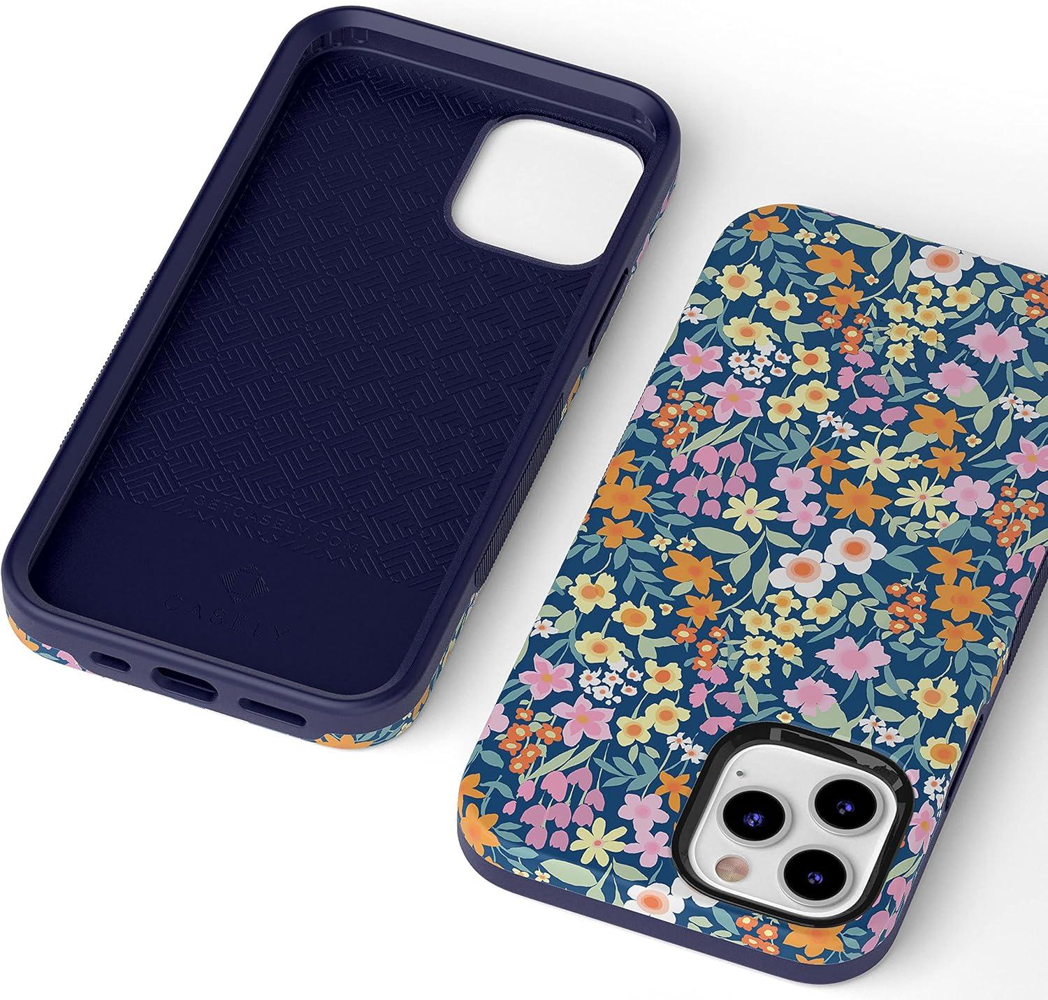 Casely iPhone 12/12 Pro Case | Tropical Dreams | Pura Vida | Compatible with MagSafe | Bold Protective Design(Full Bloom | Navy Floral)