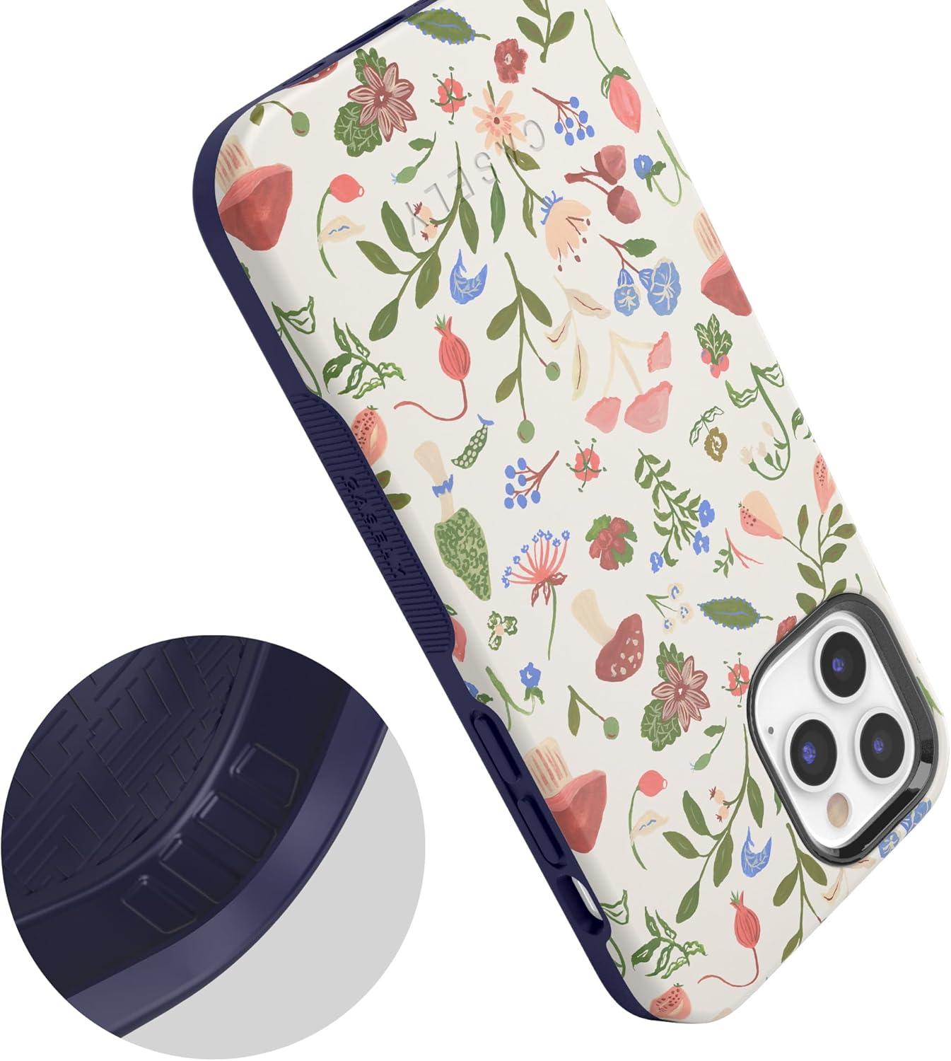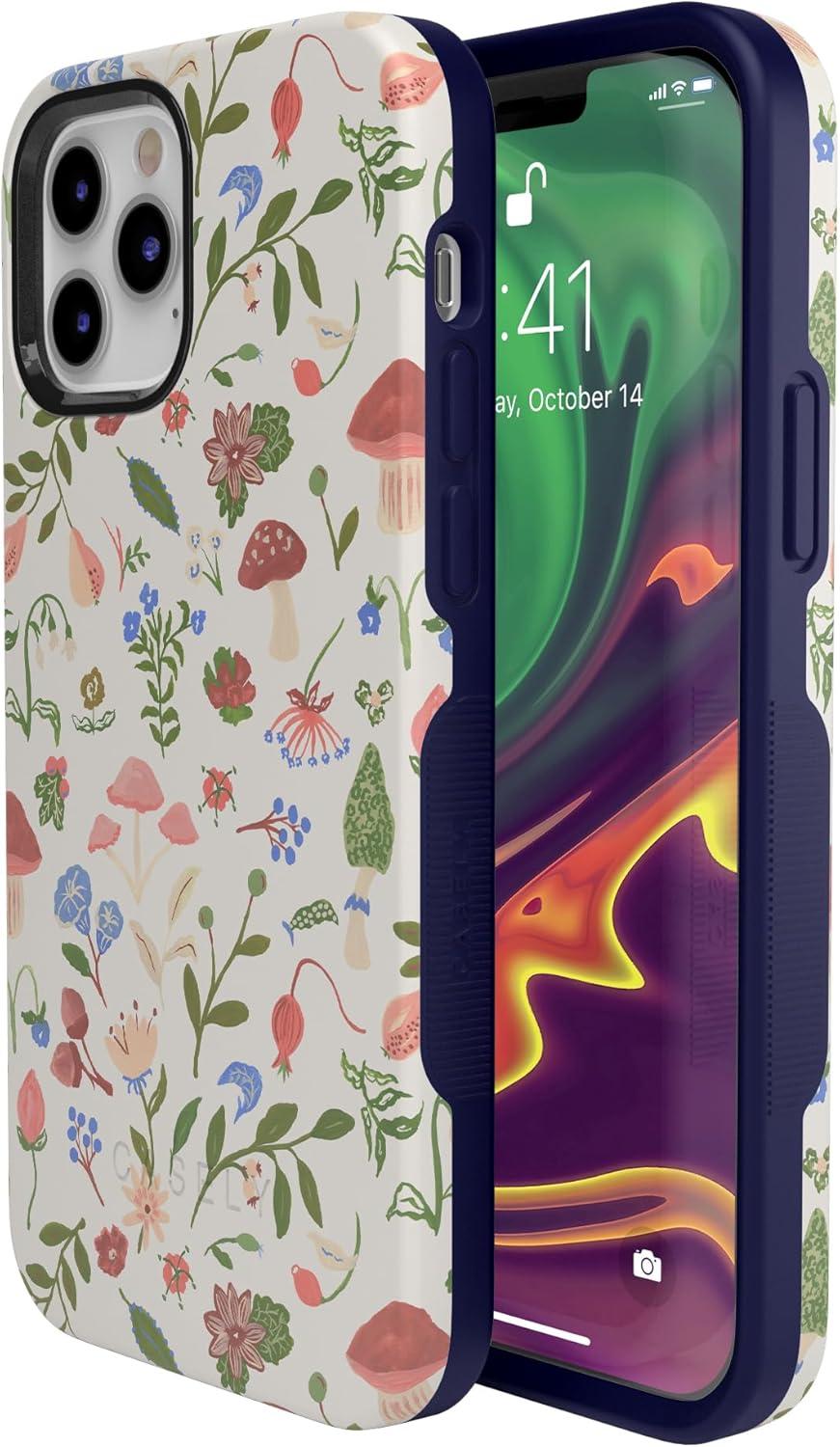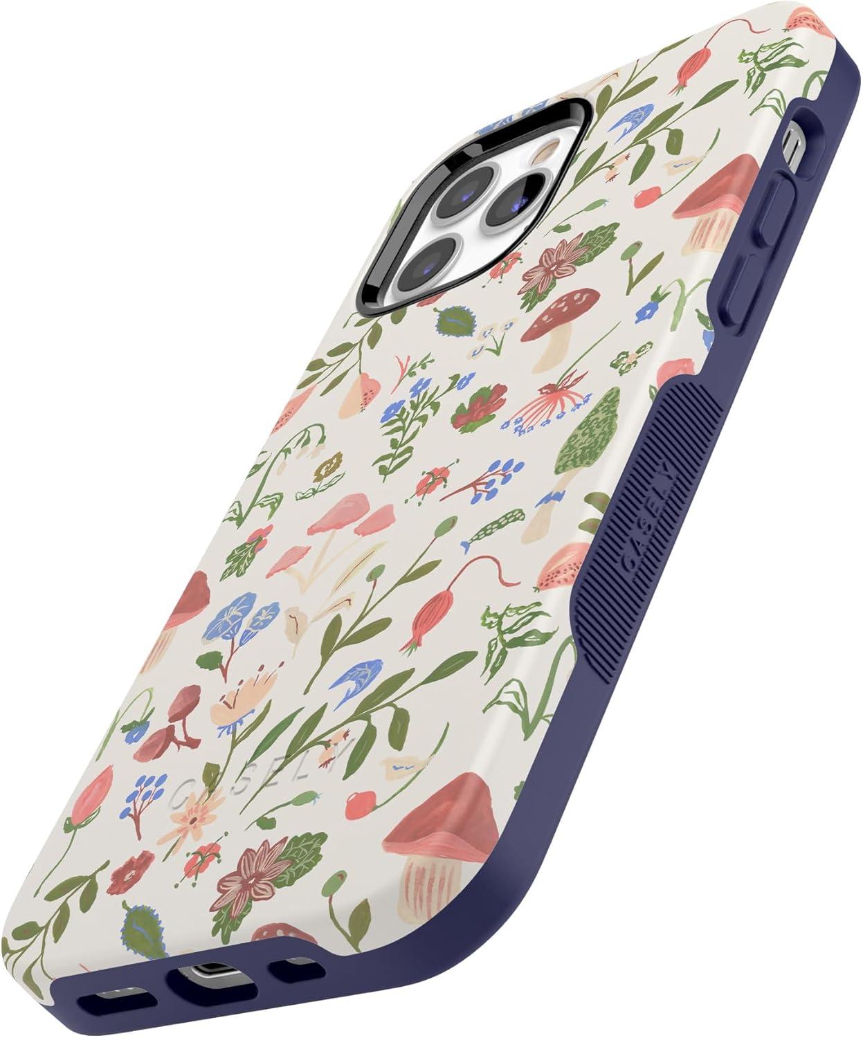 Casely iPhone 12/12 Pro Case | Tropical Dreams | Pura Vida | Compatible with MagSafe | Bold Protective Design(Garden Party | Mushroom Floral)