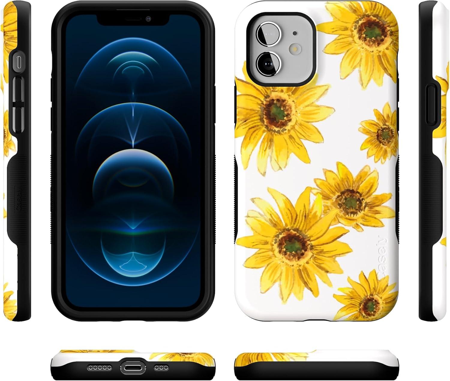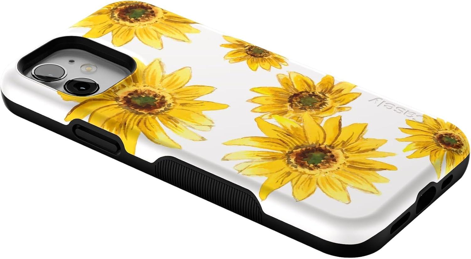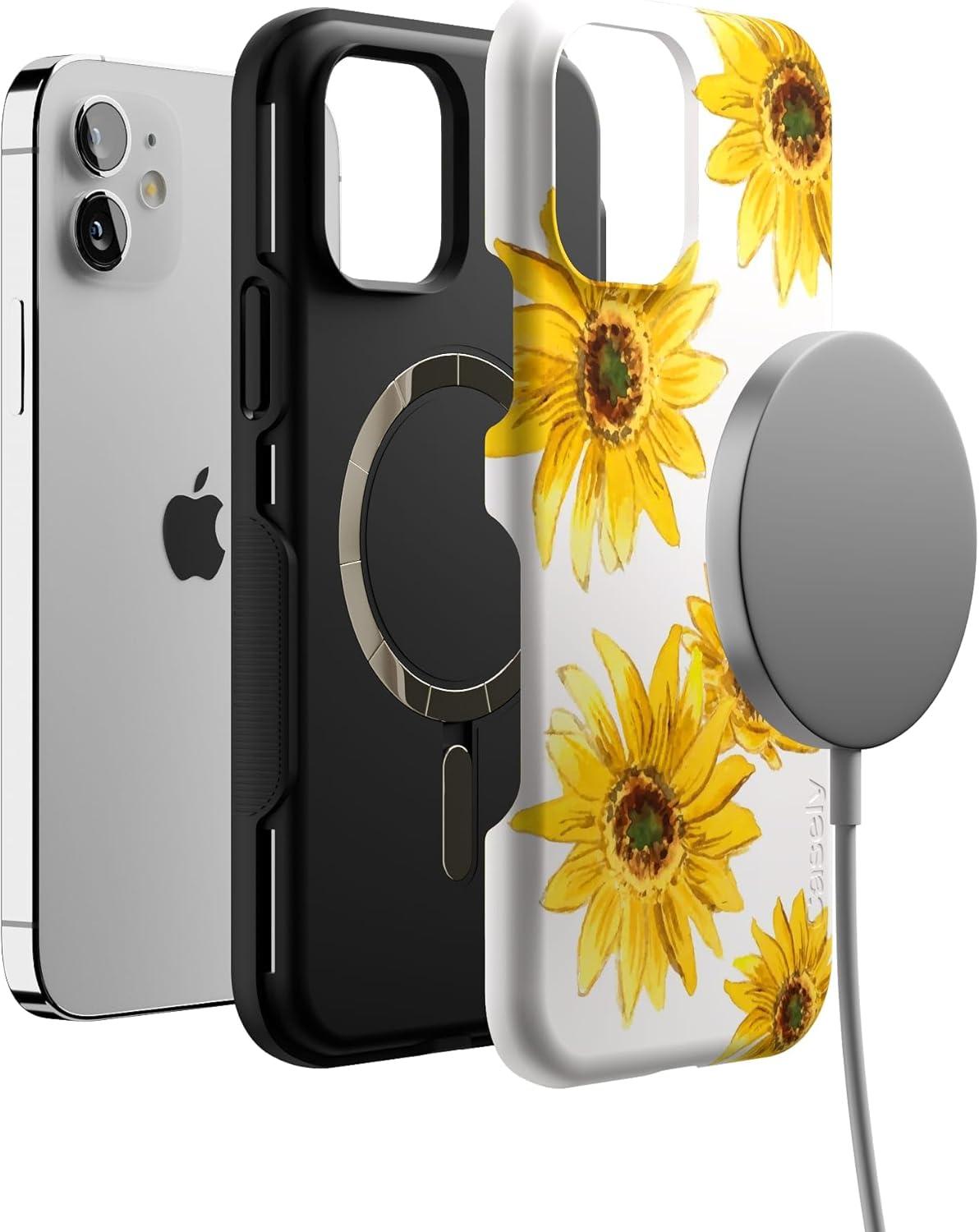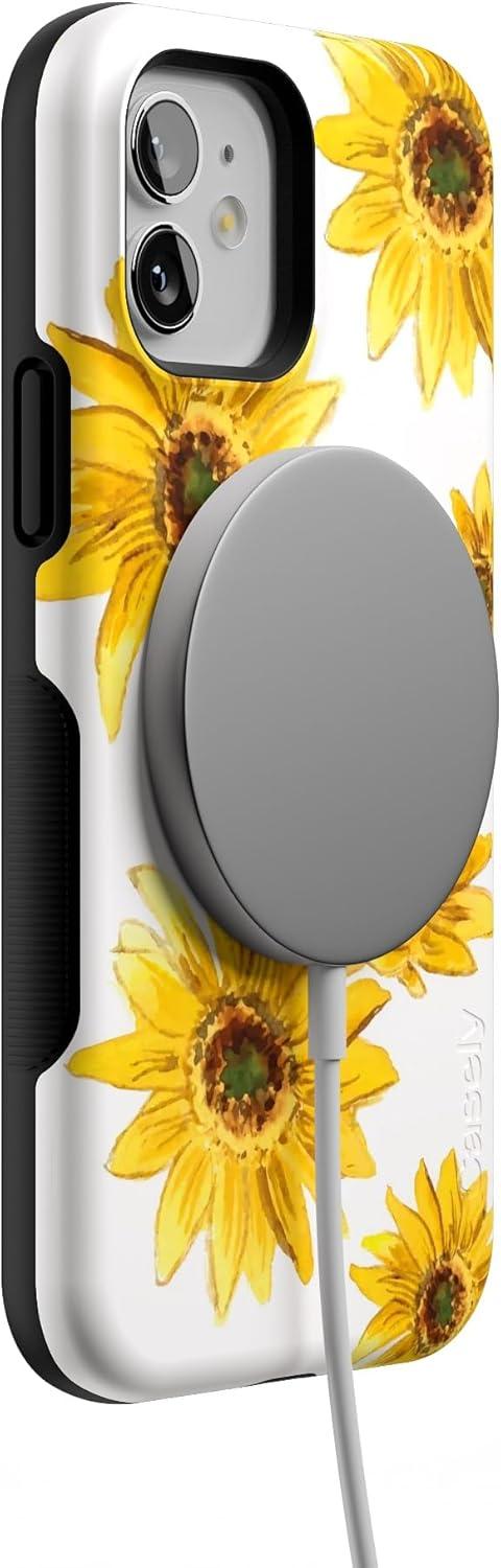 Casely iPhone 12/12 Pro Case | Tropical Dreams | Pura Vida | Compatible with MagSafe | Bold Protective Design(Golden Garden | Yellow Sunflower)