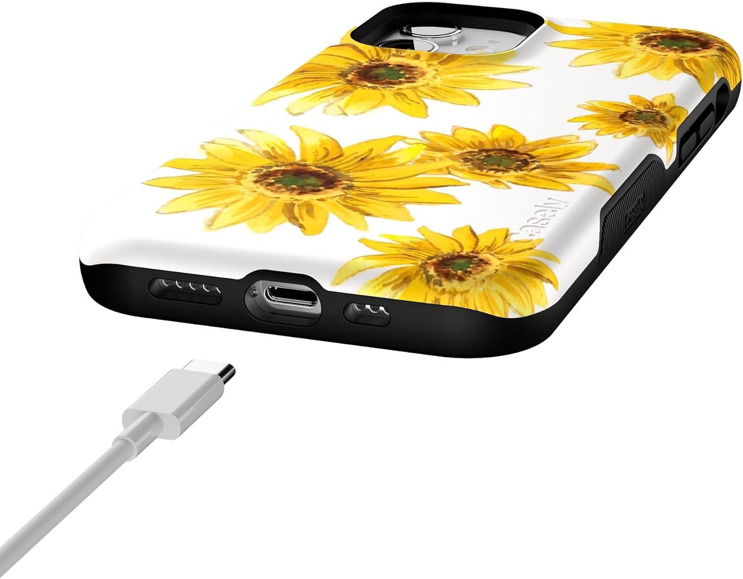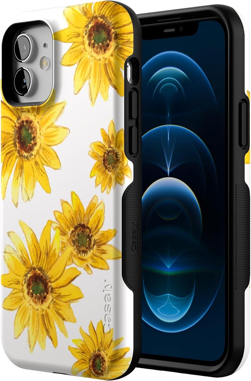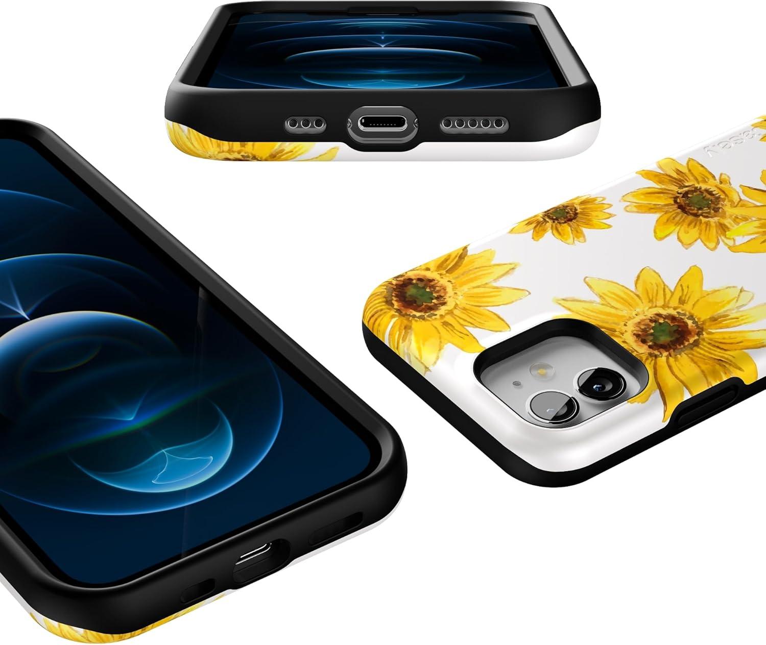 Casely iPhone 12/12 Pro Case | Tropical Dreams | Pura Vida | Compatible with MagSafe | Bold Protective Design(Golden Garden | Yellow Sunflower)