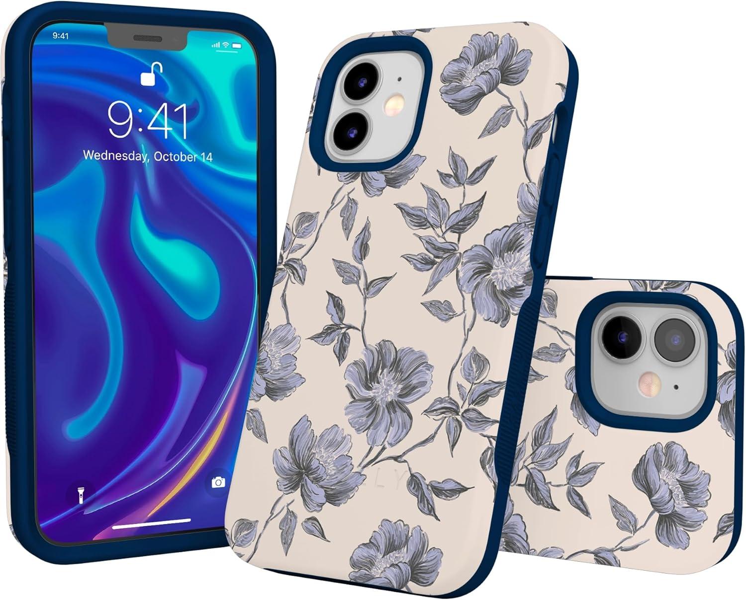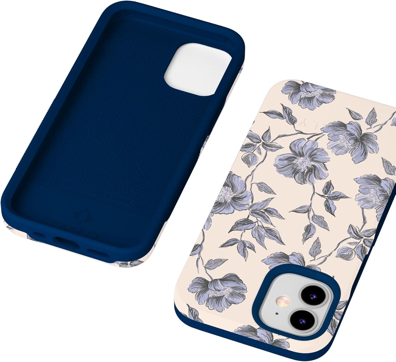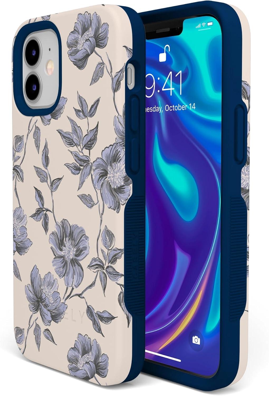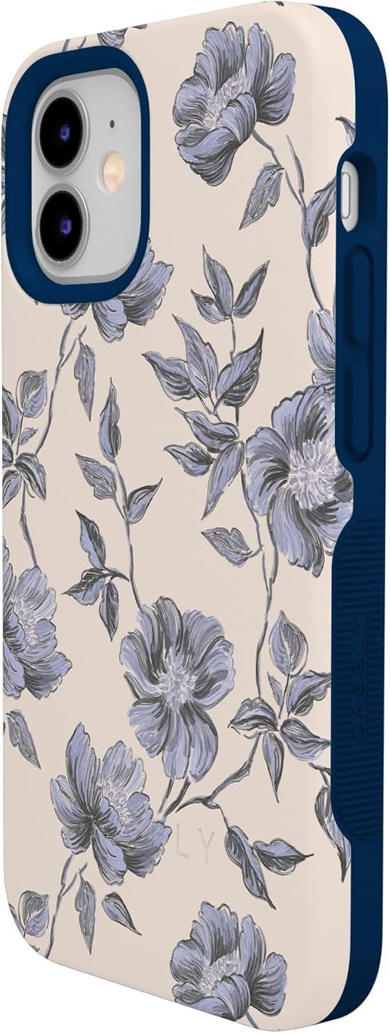 Casely iPhone 12/12 Pro Case | Tropical Dreams | Pura Vida | Compatible with MagSafe | Bold Protective Design(Ink & Iris | Vintage Floral)