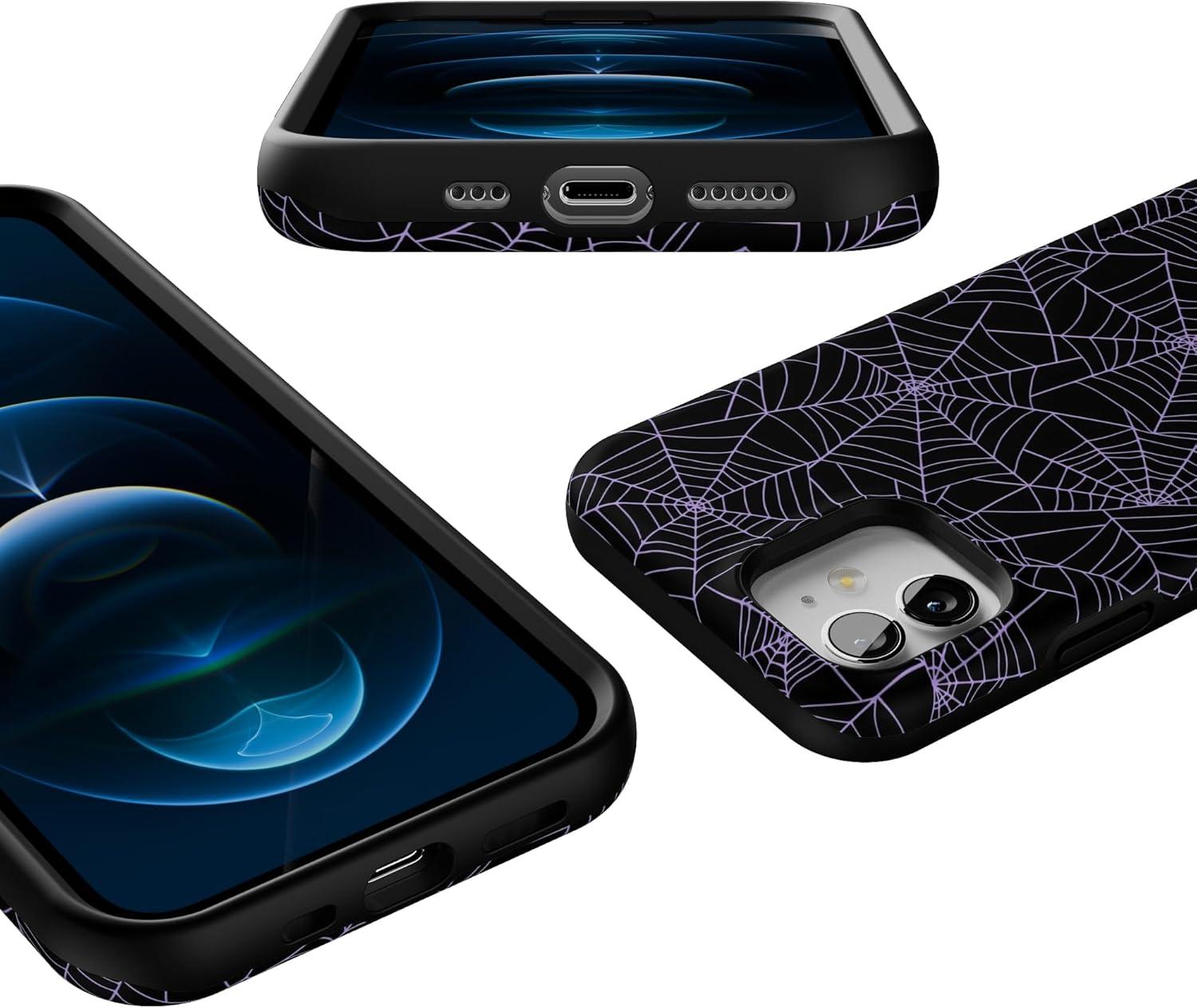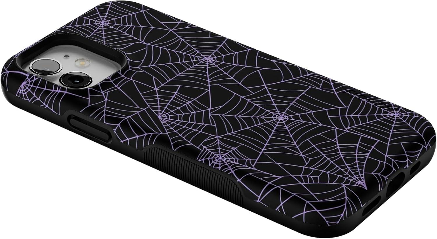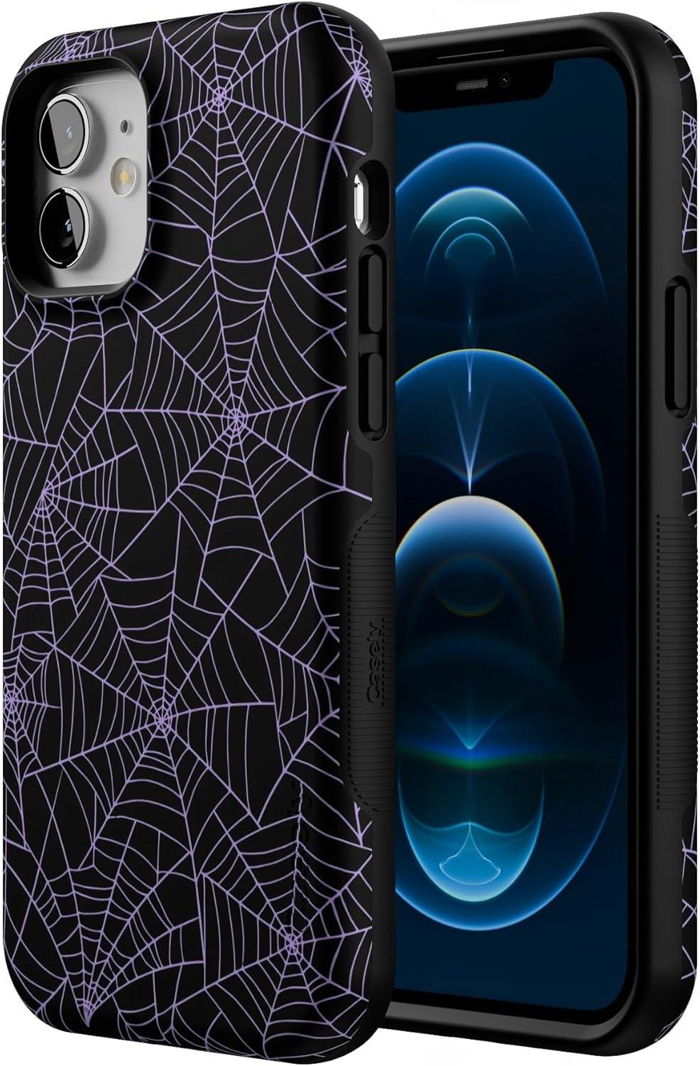 Casely iPhone 12/12 Pro Case | Tropical Dreams | Pura Vida | Compatible with MagSafe | Bold Protective Design(Midnight Web | Spider Web)