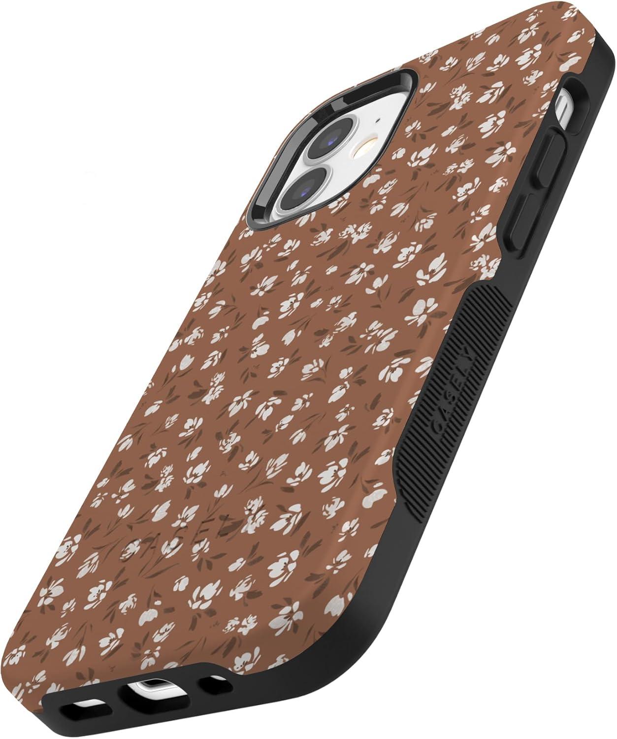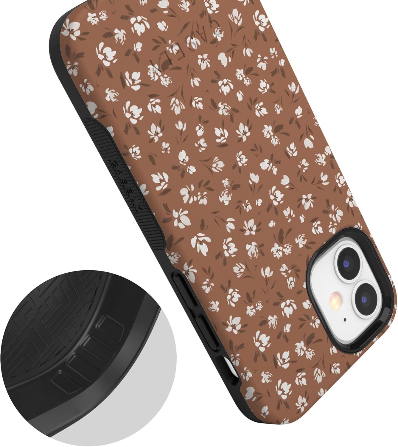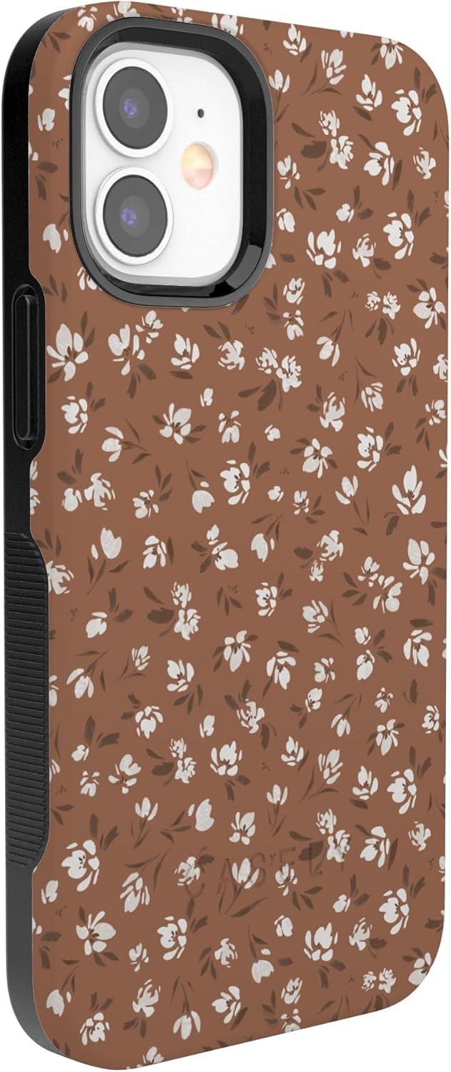 Casely iPhone 12/12 Pro Case | Tropical Dreams | Pura Vida | Compatible with MagSafe | Bold Protective Design(Mocha Meadow | Tiny Flowers)