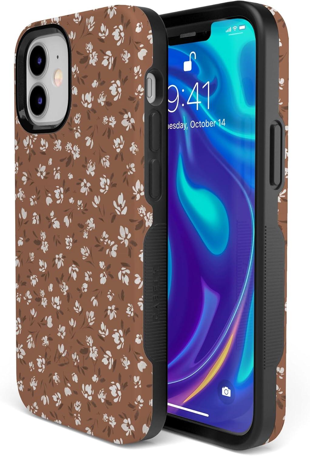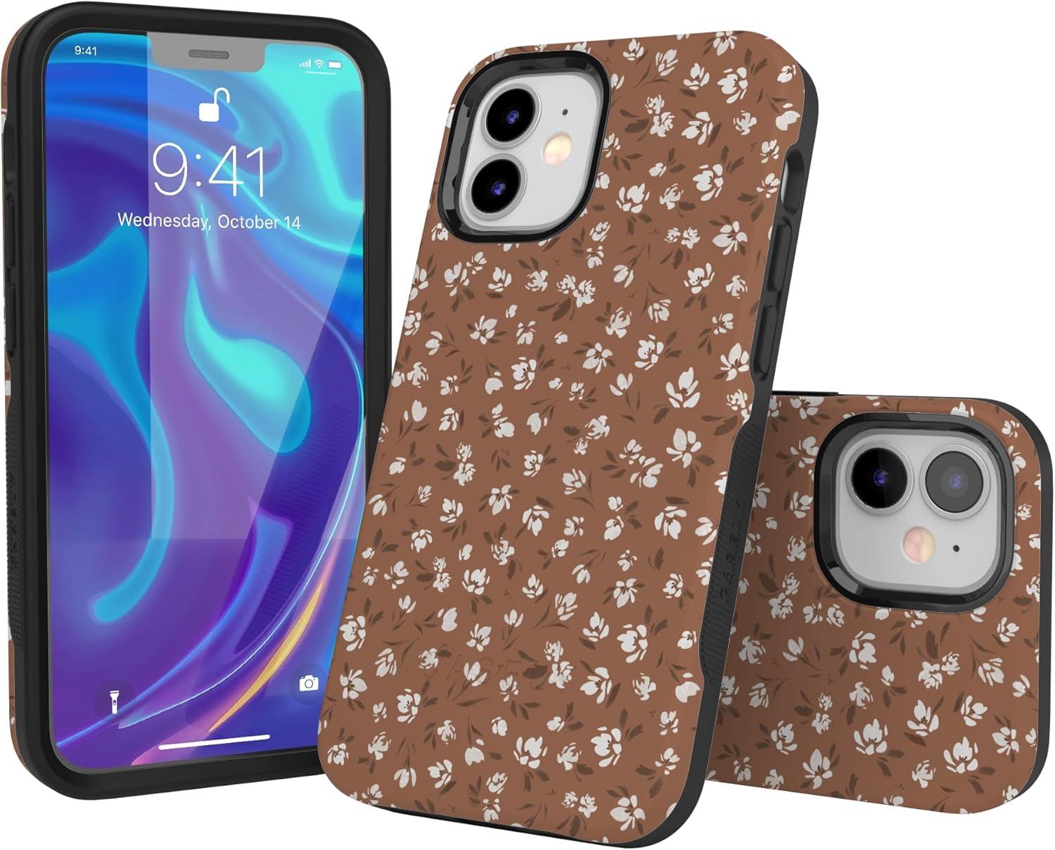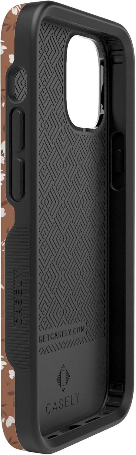 Casely iPhone 12/12 Pro Case | Tropical Dreams | Pura Vida | Compatible with MagSafe | Bold Protective Design(Mocha Meadow | Tiny Flowers)