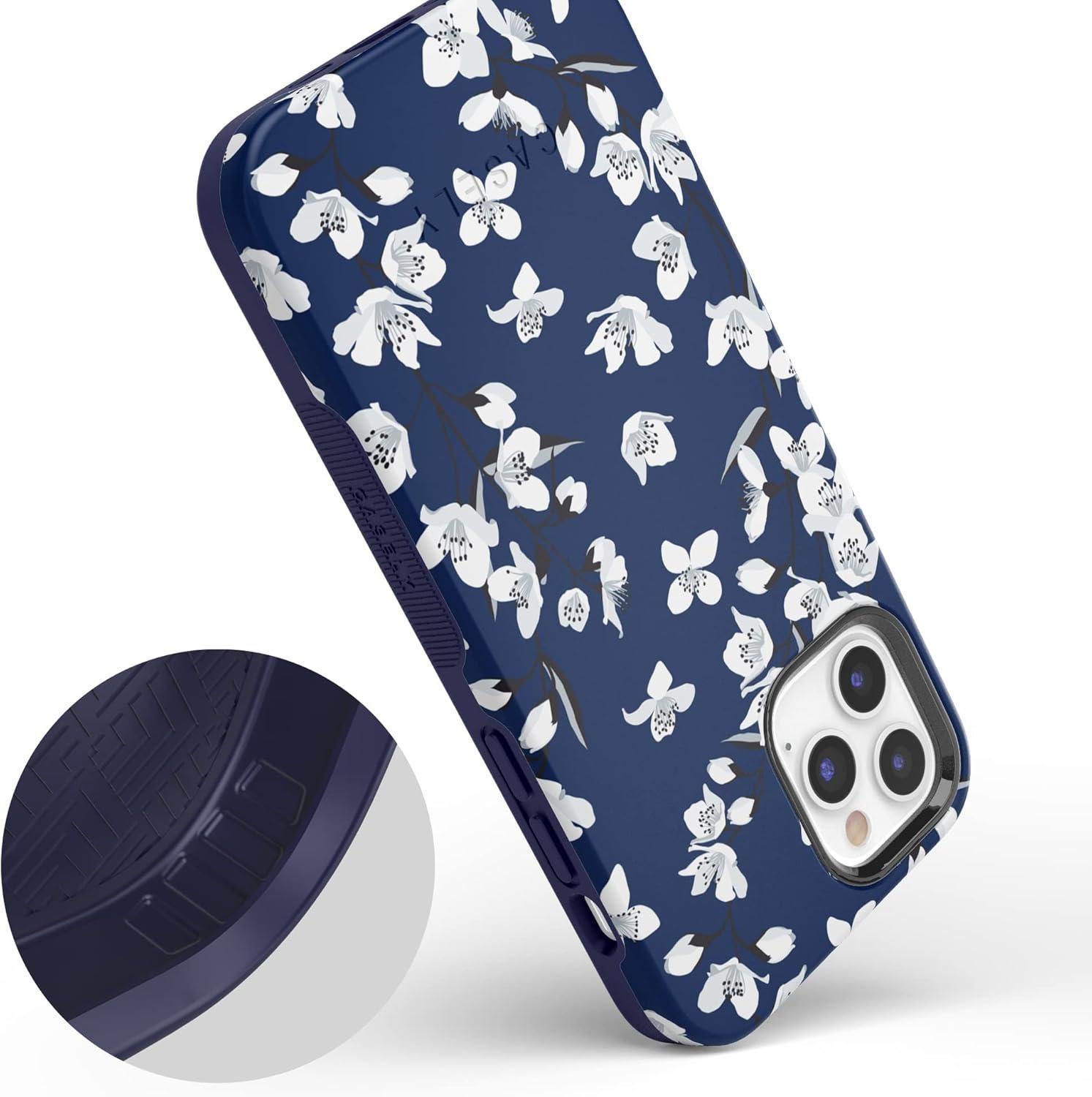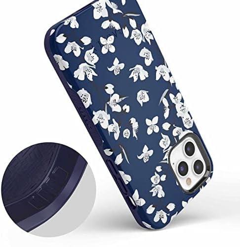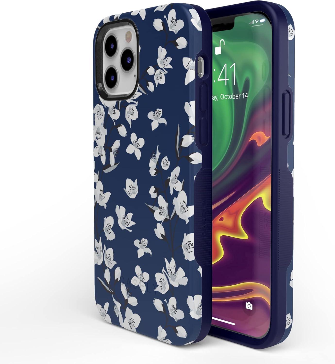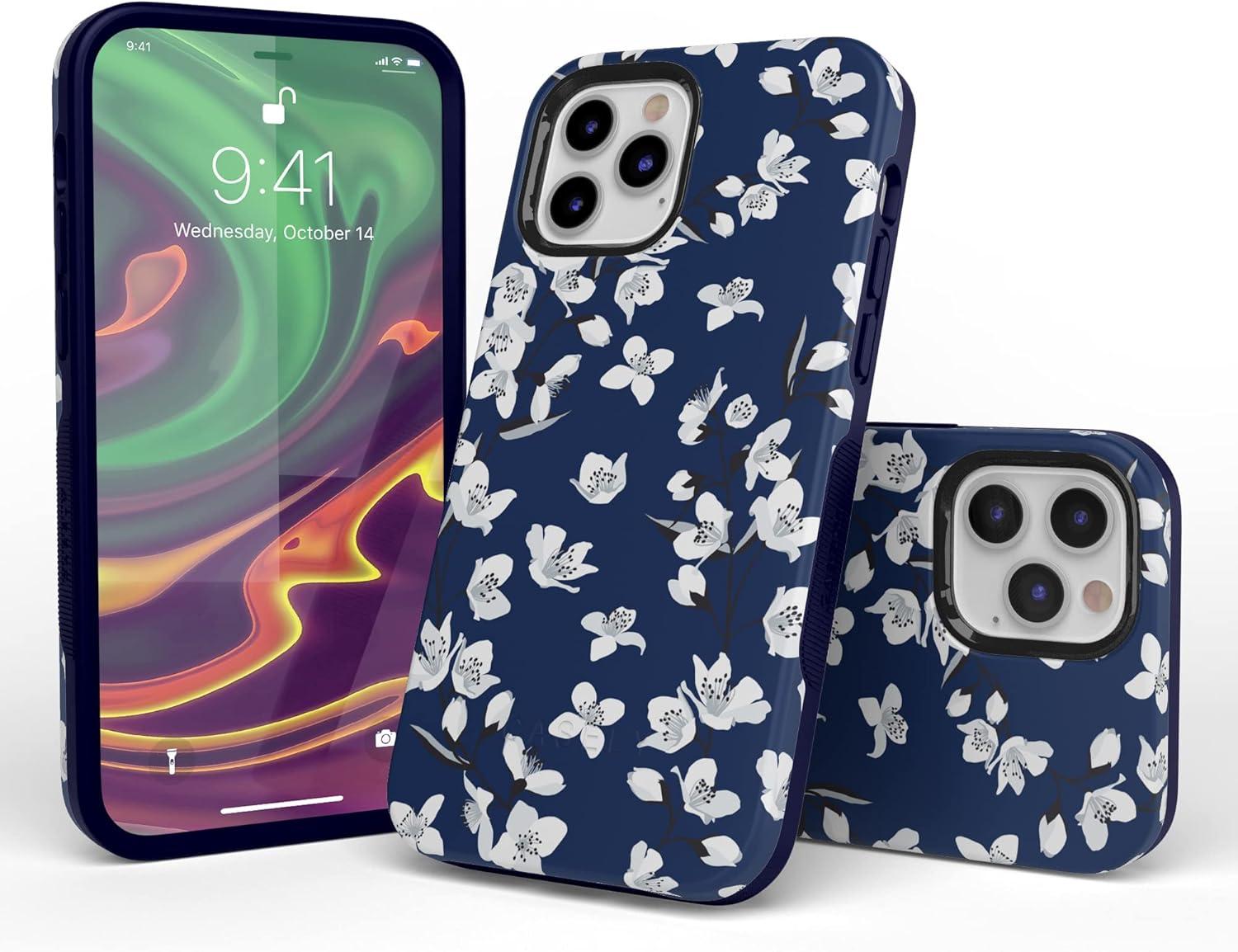 Casely iPhone 12/12 Pro Case | Tropical Dreams | Pura Vida | Compatible with MagSafe | Bold Protective Design(Navy Cherry Blossom Floral)