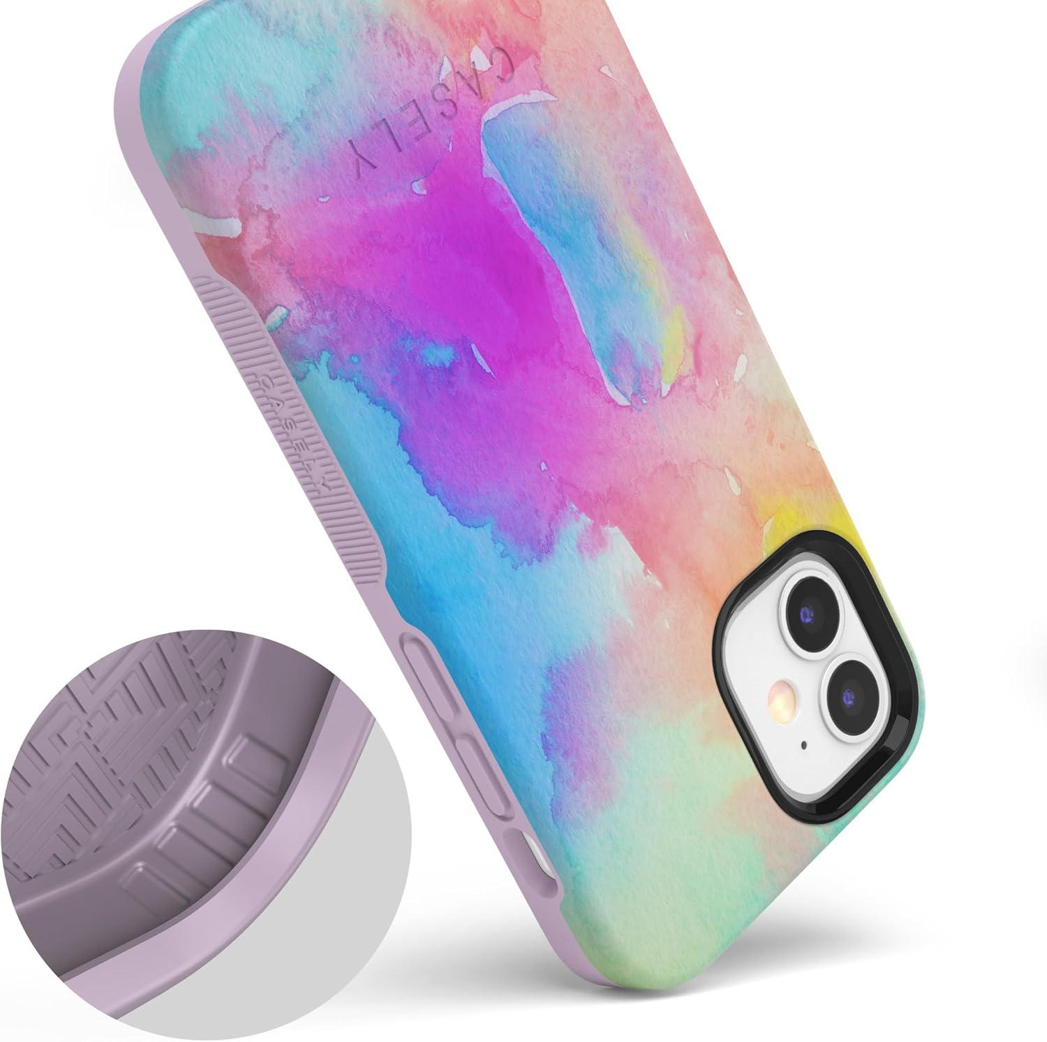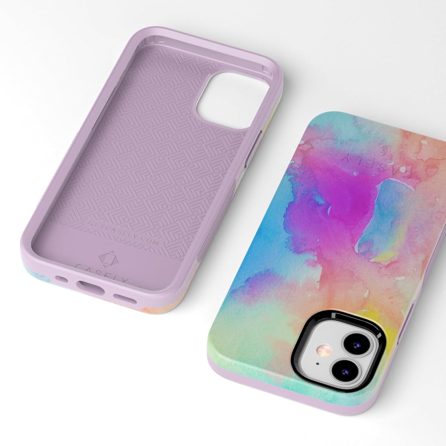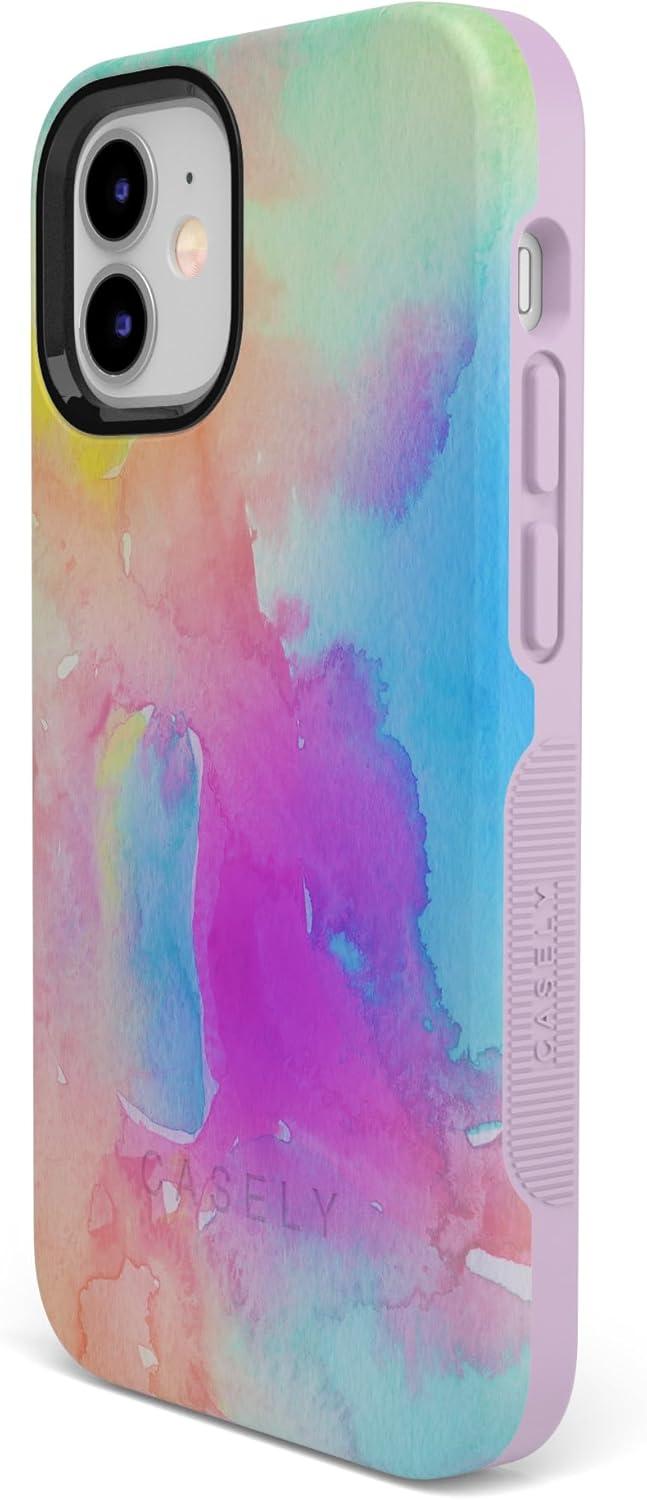 Casely iPhone 12/12 Pro Case | Tropical Dreams | Pura Vida | Compatible with MagSafe | Bold Protective Design(Painting in Pastels | Rainbow Watercolor)