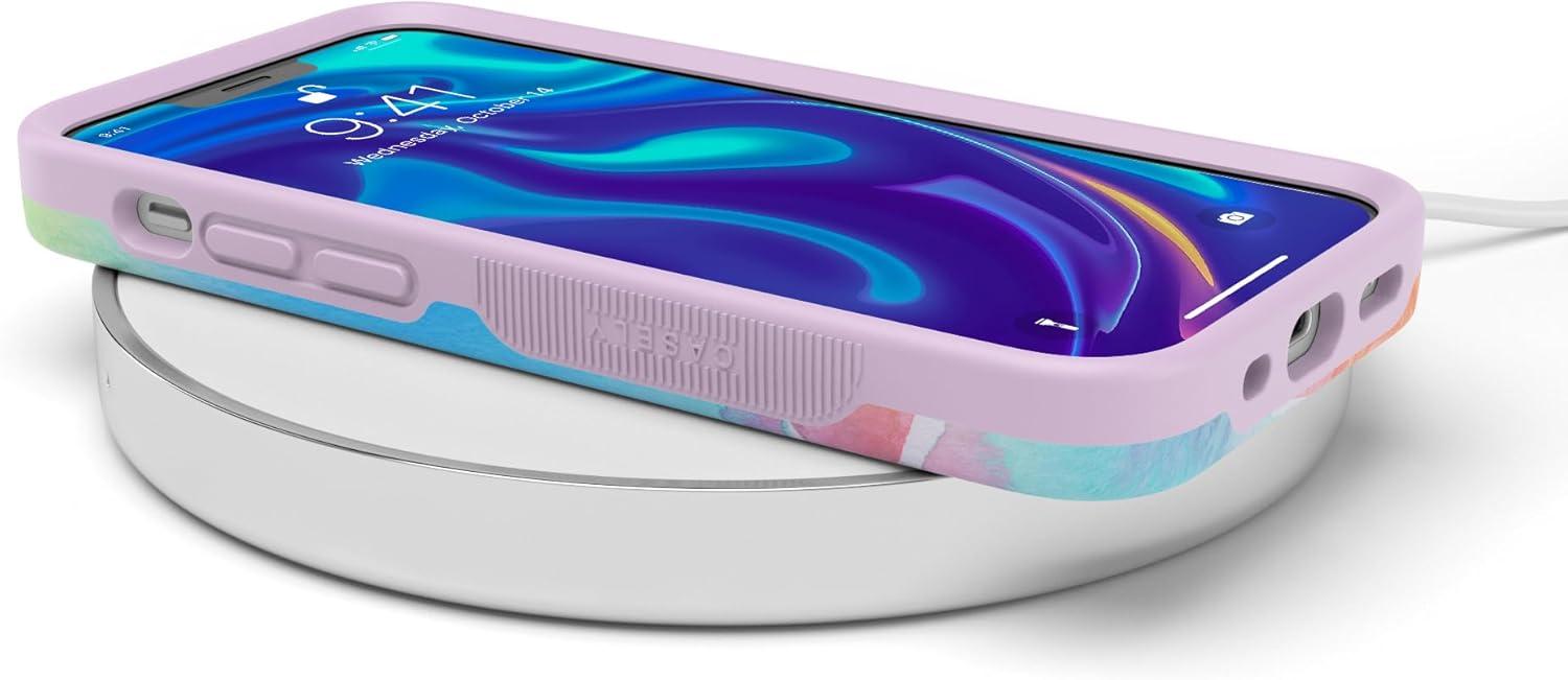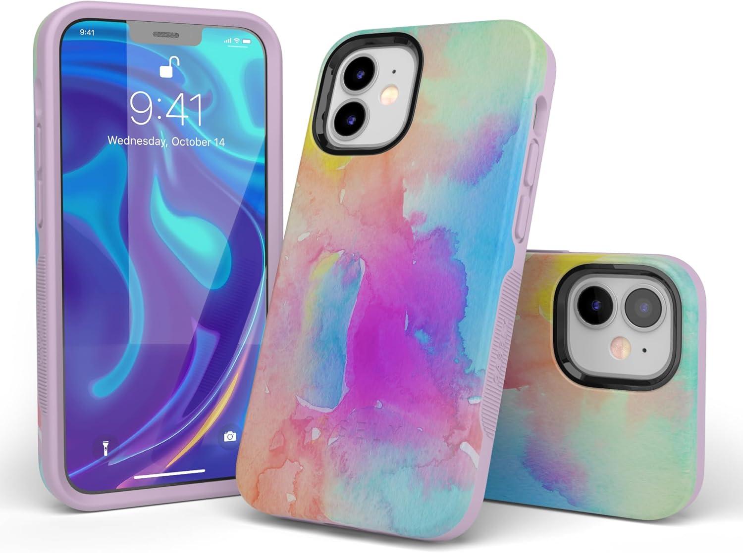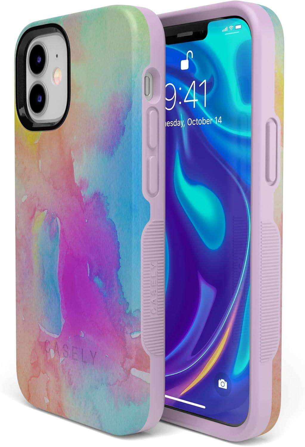 Casely iPhone 12/12 Pro Case | Tropical Dreams | Pura Vida | Compatible with MagSafe | Bold Protective Design(Painting in Pastels | Rainbow Watercolor)