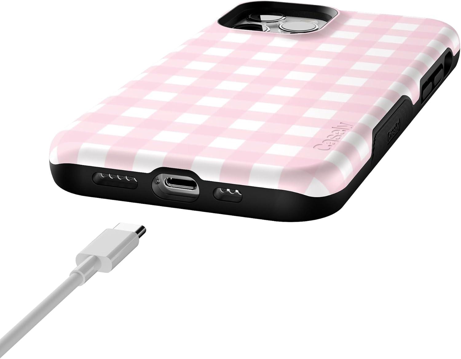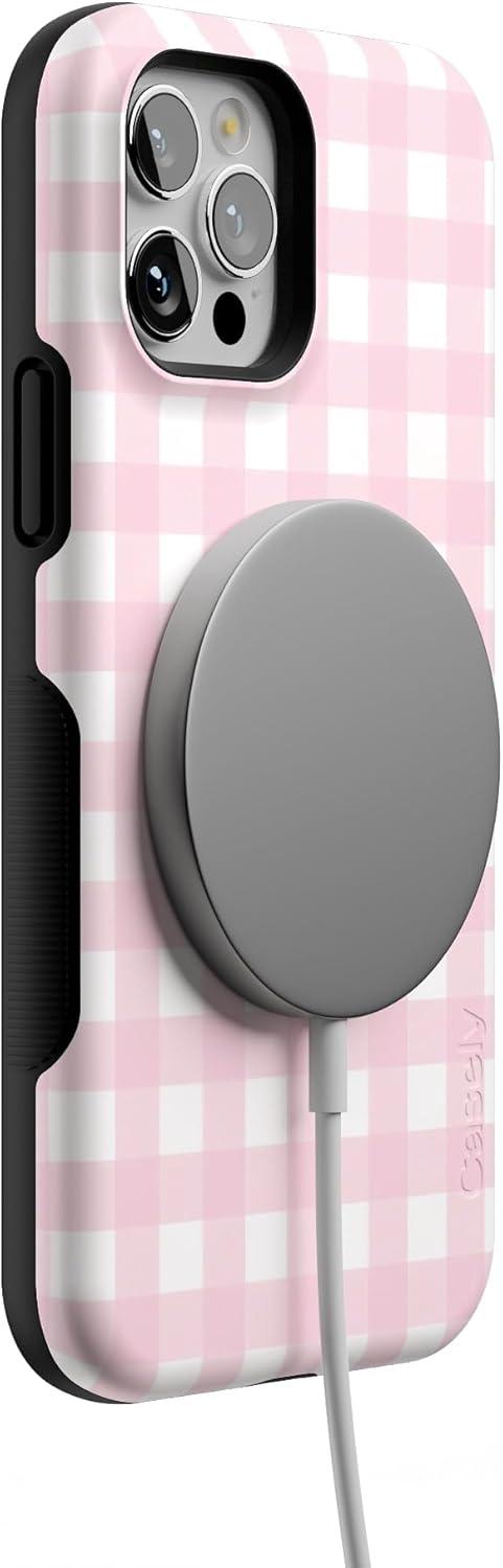 Casely iPhone 12/12 Pro Case | Tropical Dreams | Pura Vida | Compatible with MagSafe | Bold Protective Design(Pink Plaid | Sunday Best)