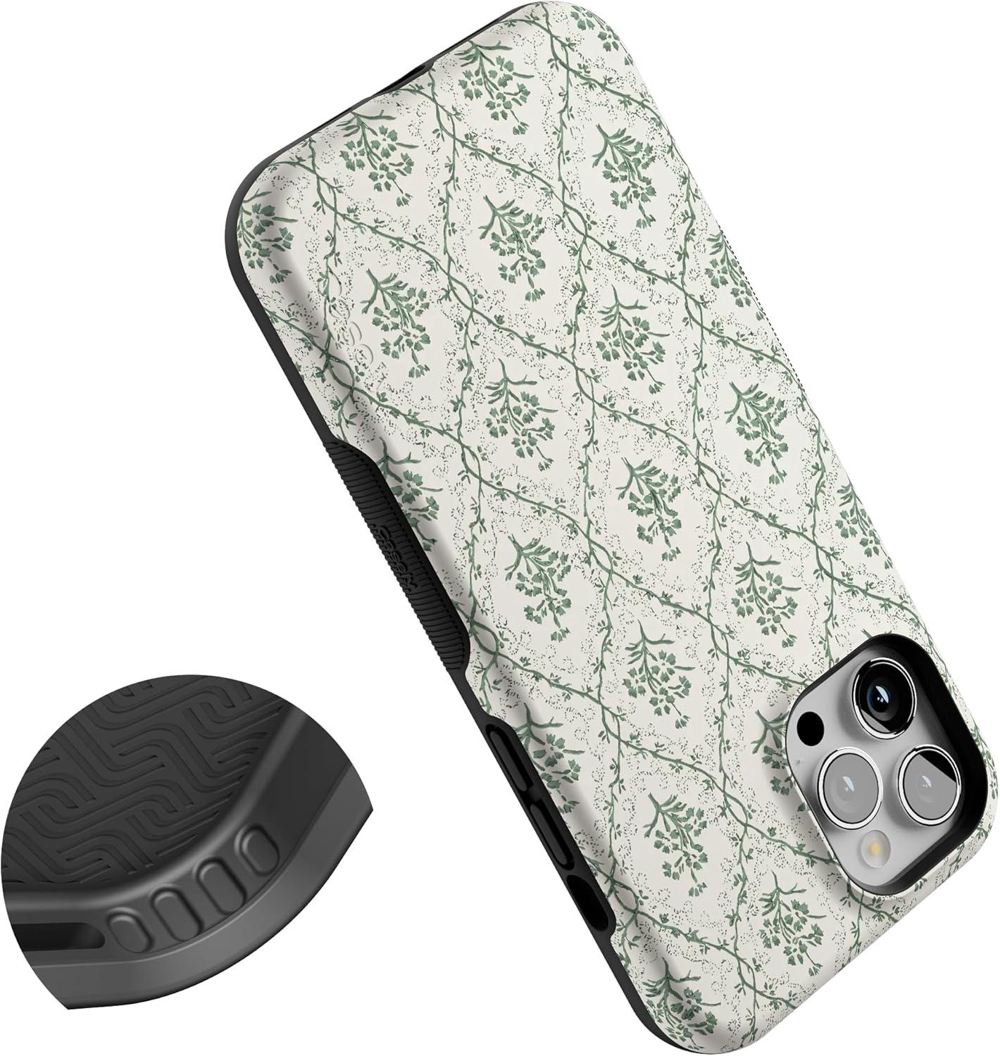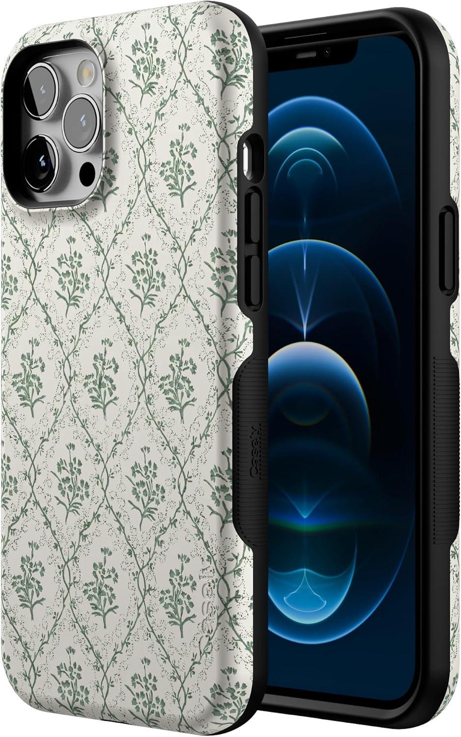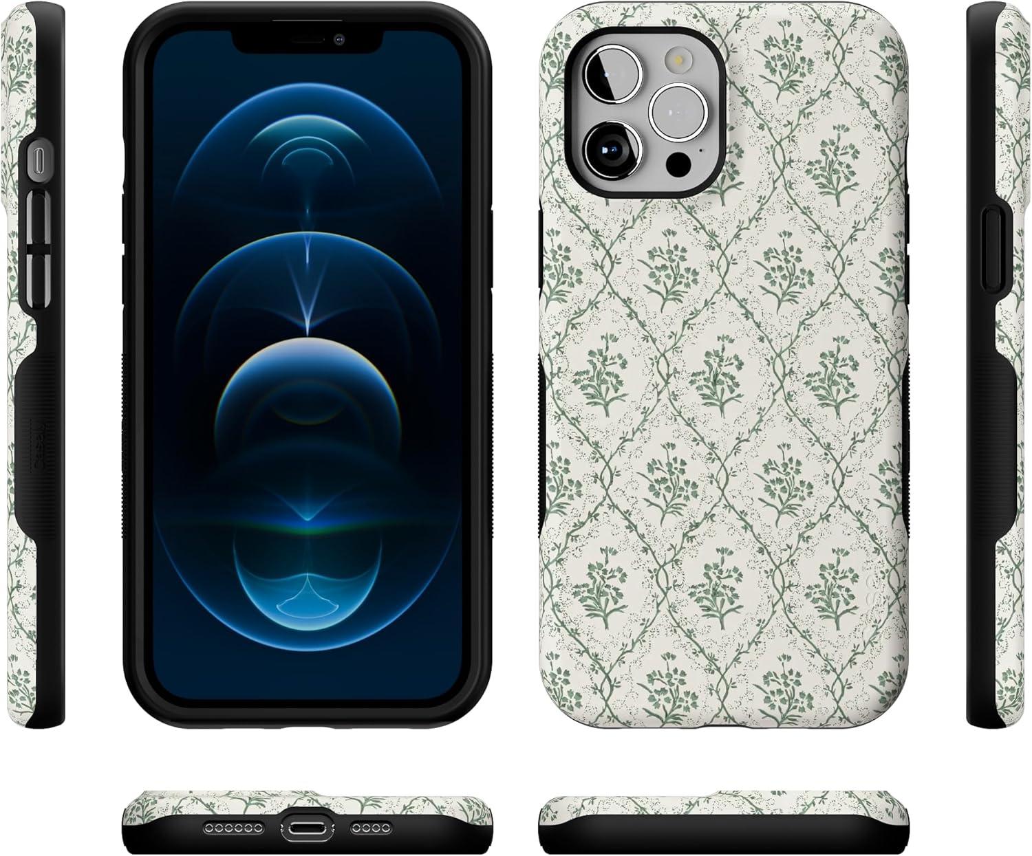 Casely iPhone 12/12 Pro Case | Tropical Dreams | Pura Vida | Compatible with MagSafe | Bold Protective Design(Sage Tapestry | Floral Vines)