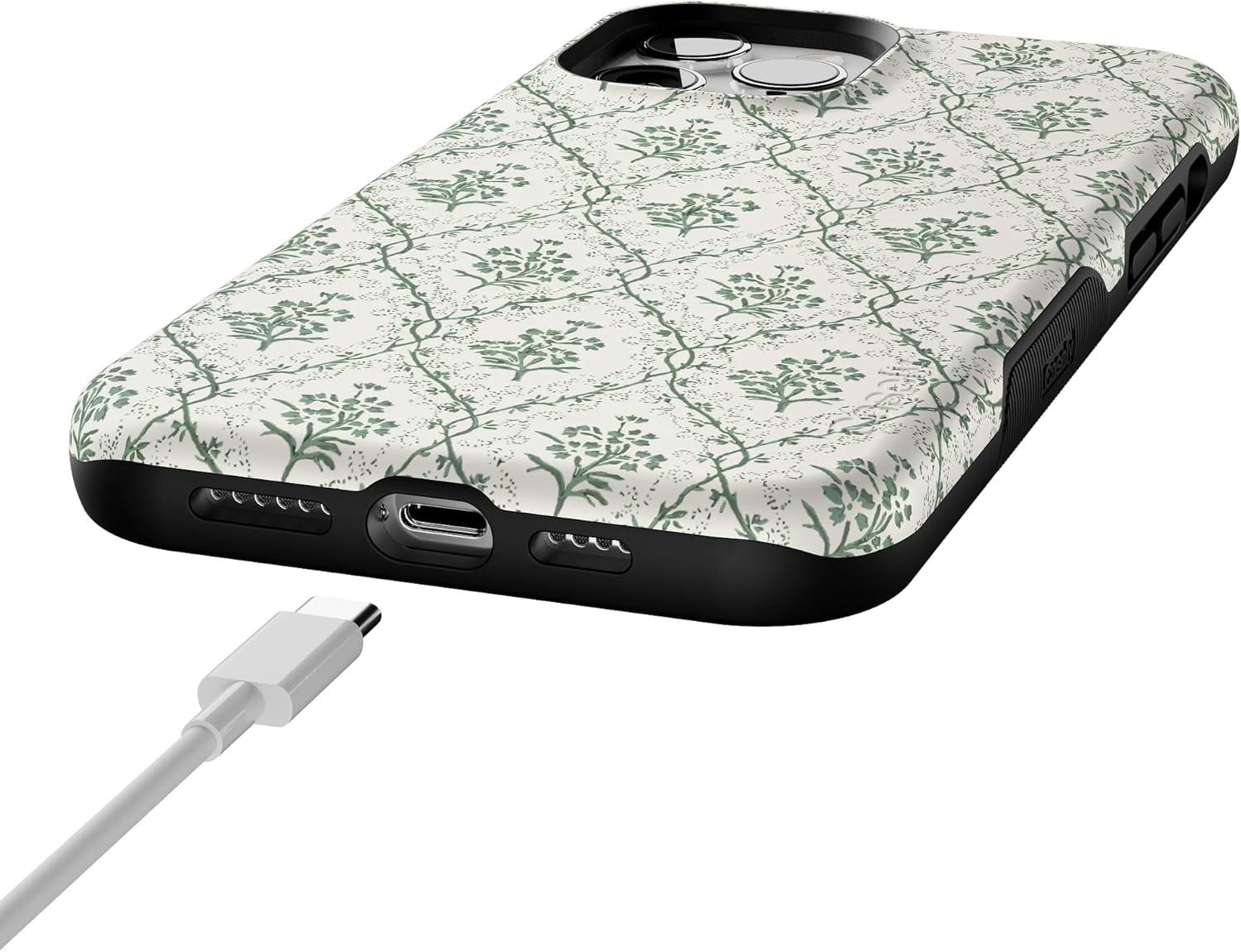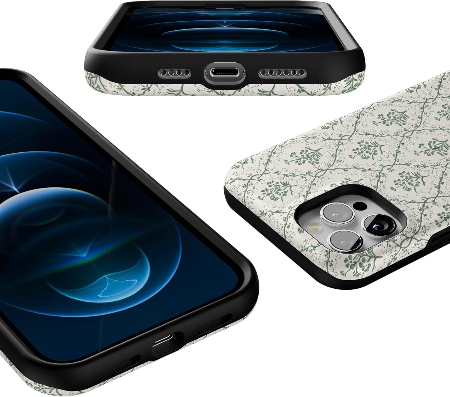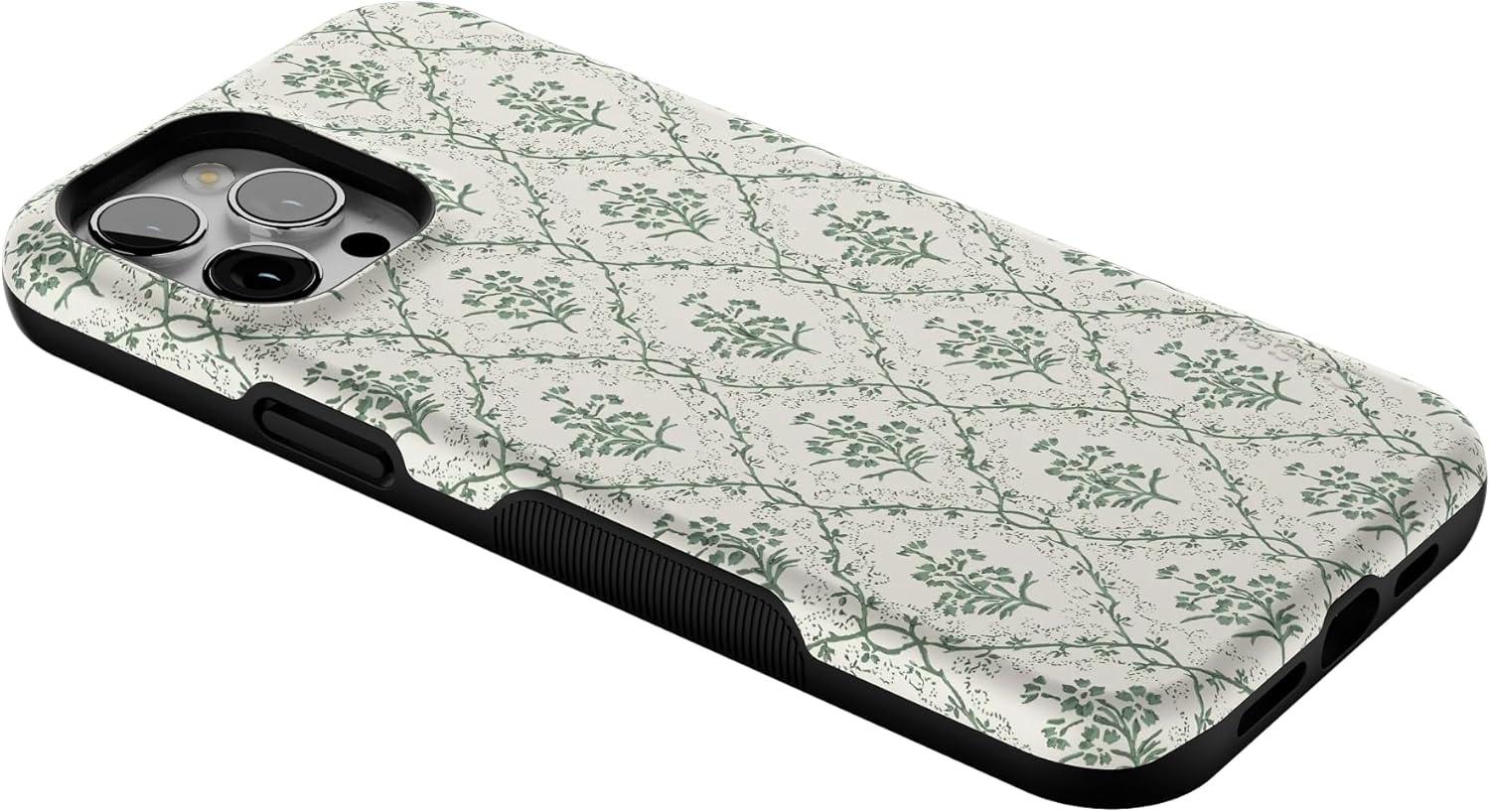 Casely iPhone 12/12 Pro Case | Tropical Dreams | Pura Vida | Compatible with MagSafe | Bold Protective Design(Sage Tapestry | Floral Vines)