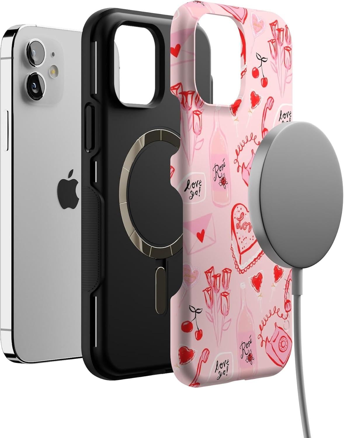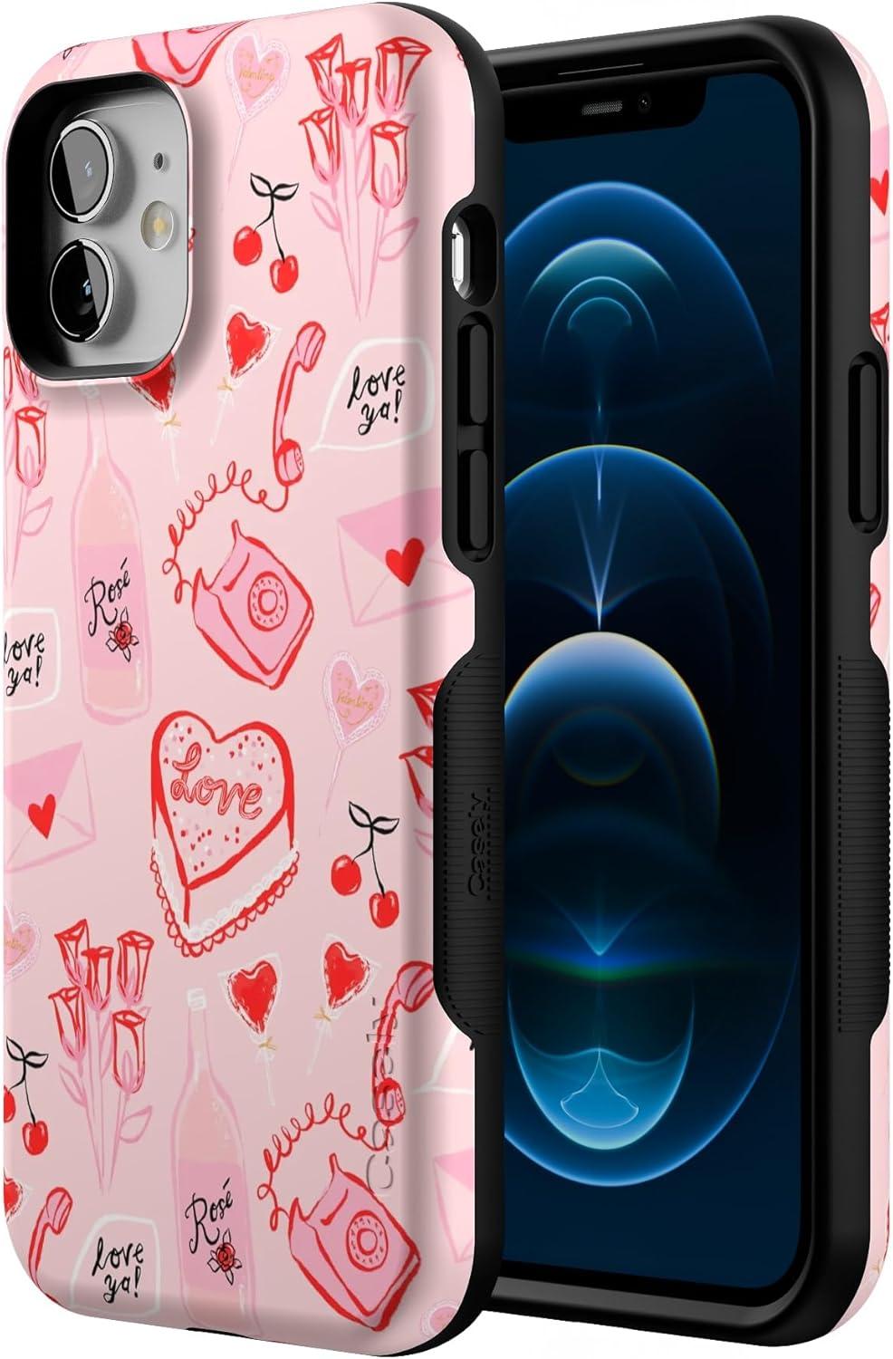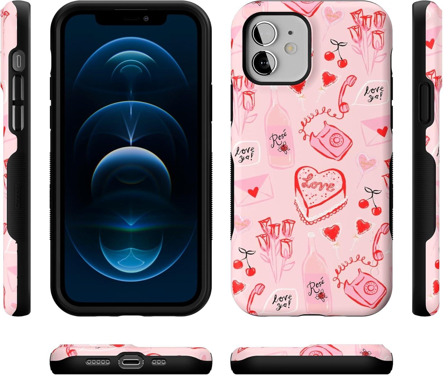 Casely iPhone 12/12 Pro Case | Tropical Dreams | Pura Vida | Compatible with MagSafe | Bold Protective Design(That’s Amore | Valentine’s)