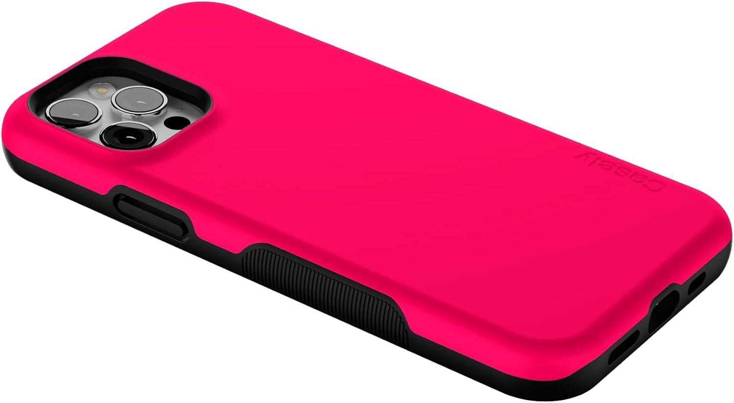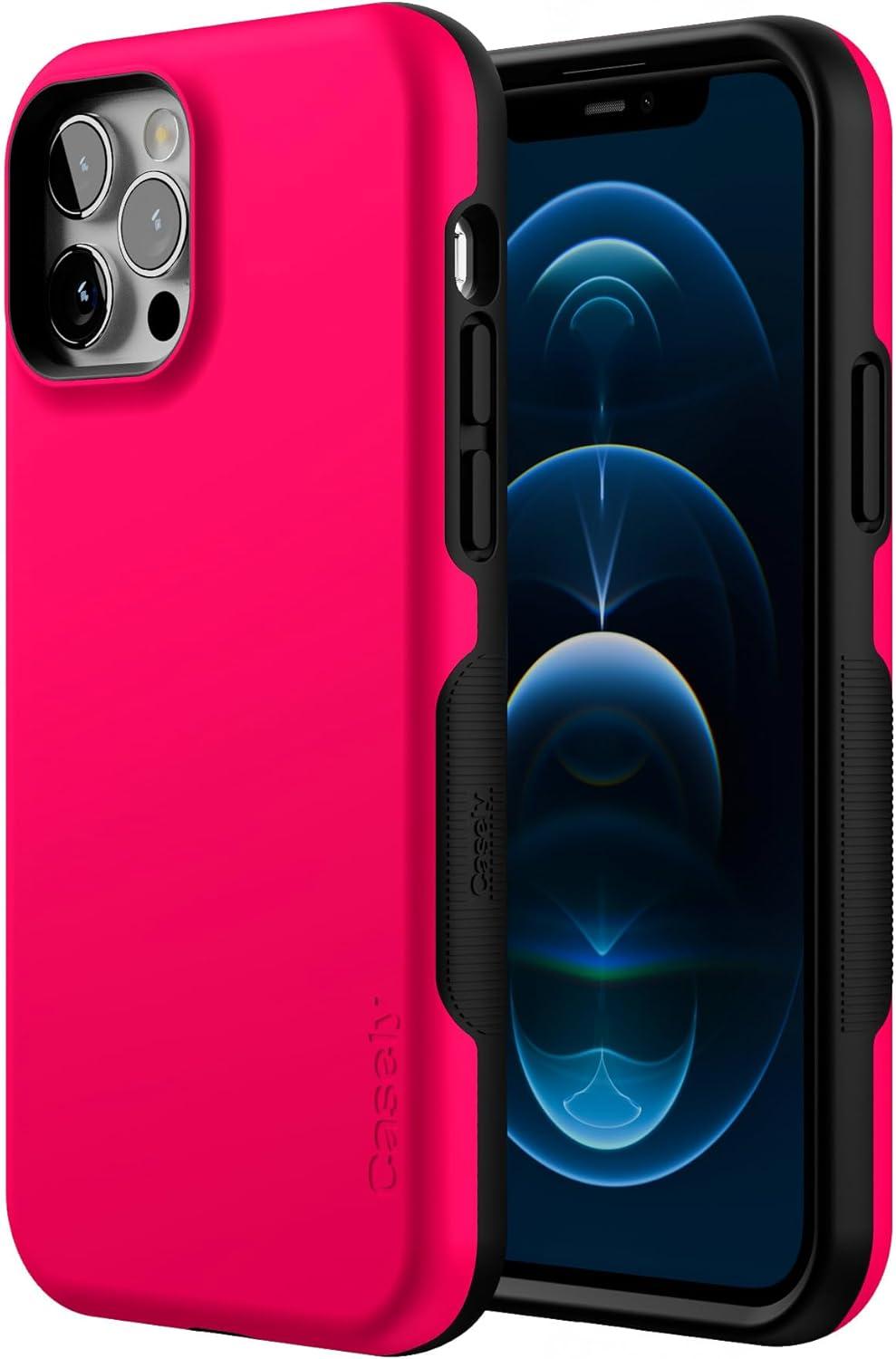 Casely iPhone 12/12 Pro Case | Tropical Dreams | Pura Vida | Compatible with MagSafe | Bold Protective Design(Think Pink | Solid Neon Pink)