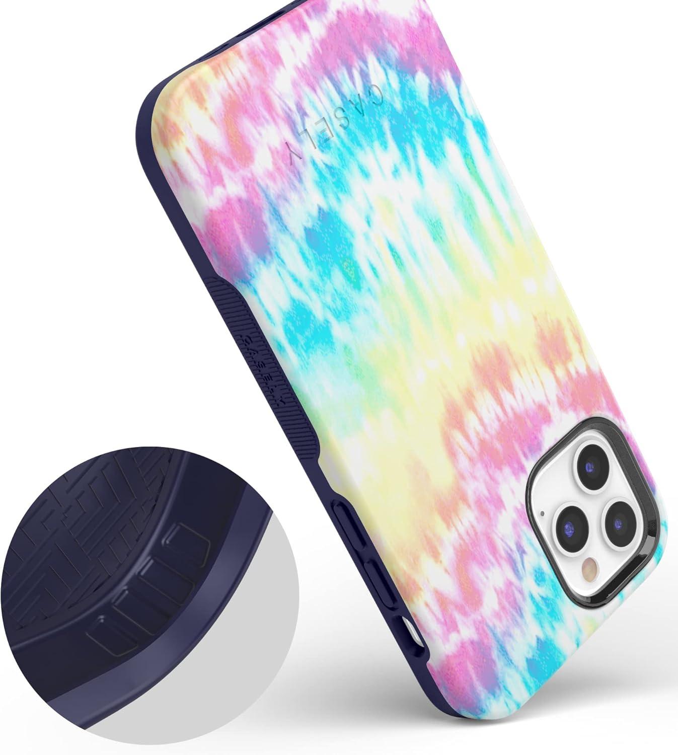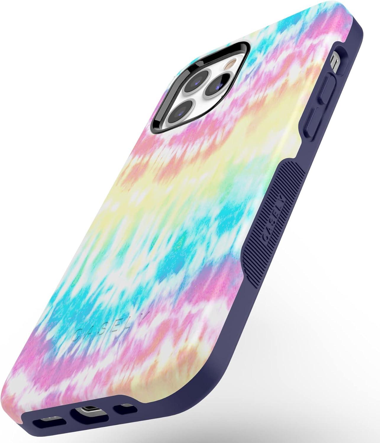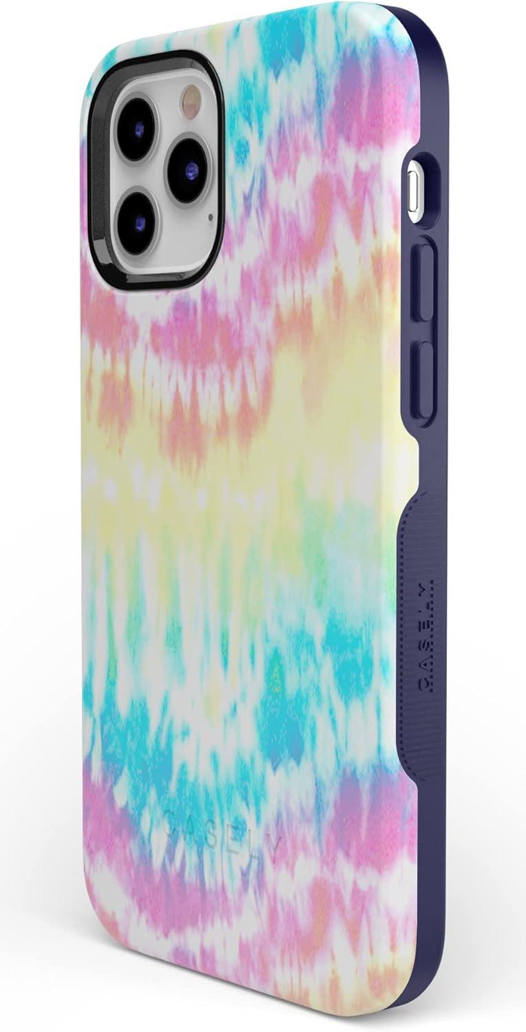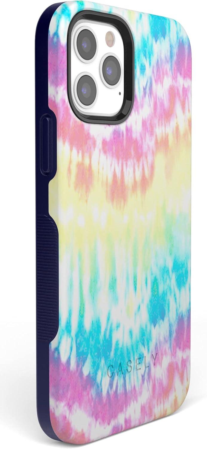 Casely iPhone 12/12 Pro Case | Tropical Dreams | Pura Vida | Compatible with MagSafe | Bold Protective Design(Wild & Free | Classic Rainbow Tie Dye)
