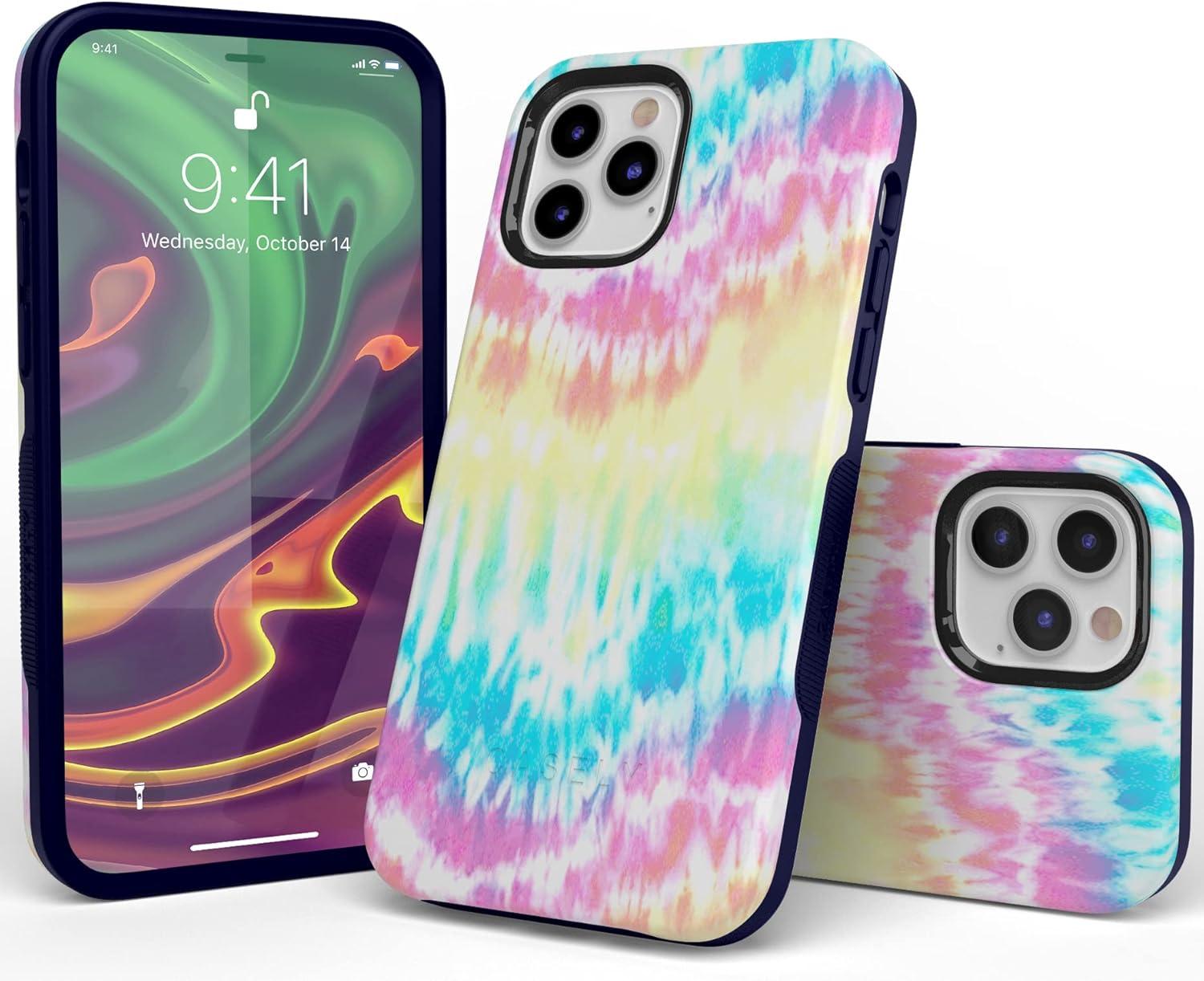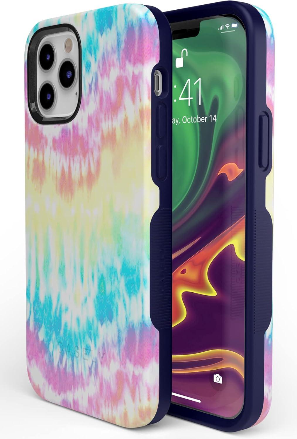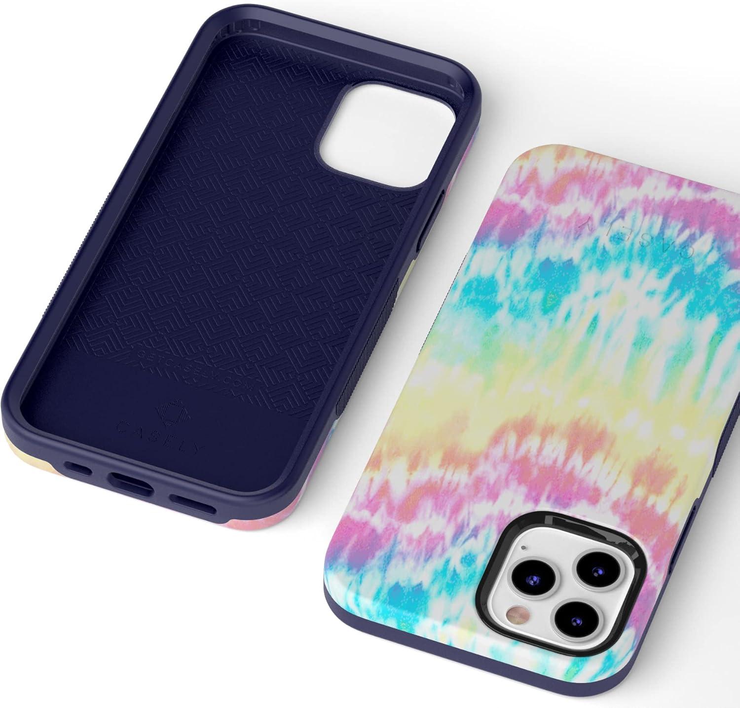 Casely iPhone 12/12 Pro Case | Tropical Dreams | Pura Vida | Compatible with MagSafe | Bold Protective Design(Wild & Free | Classic Rainbow Tie Dye)