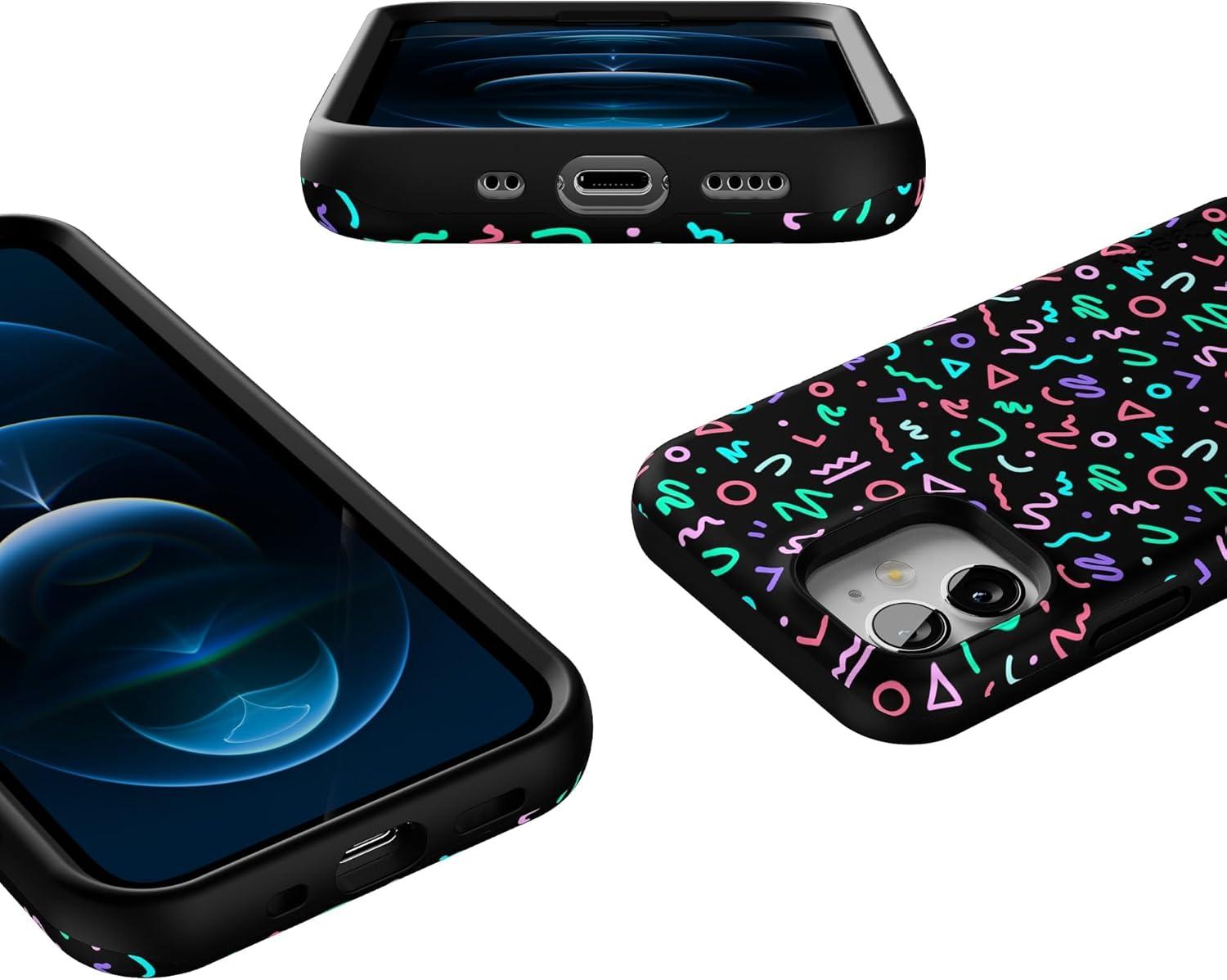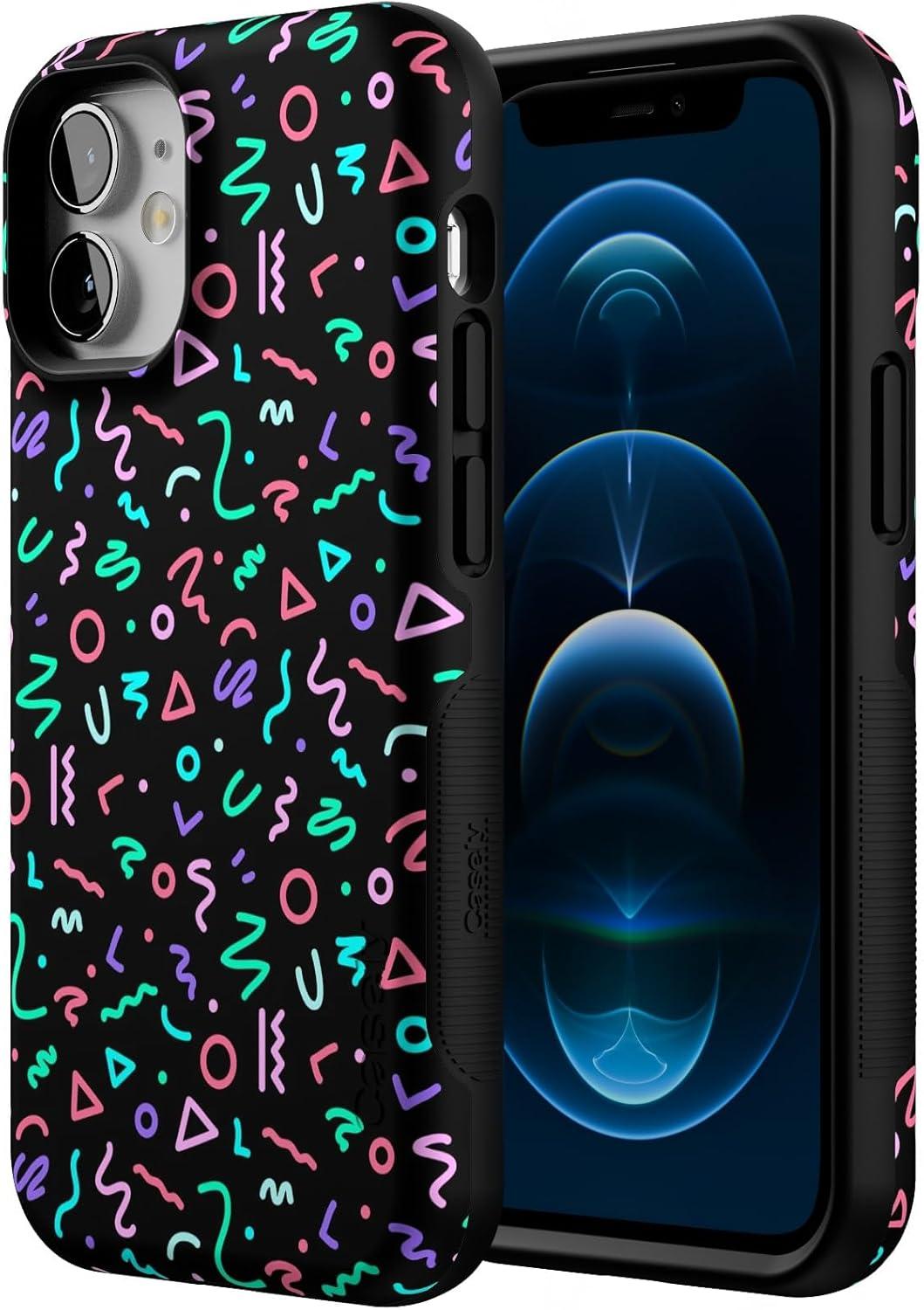 Casely iPhone 12 Mini Case | Dark Fantasy | Contrast Floral | Bold Protective Design | Compatible with MagSafe(Always Vibing | Retro)