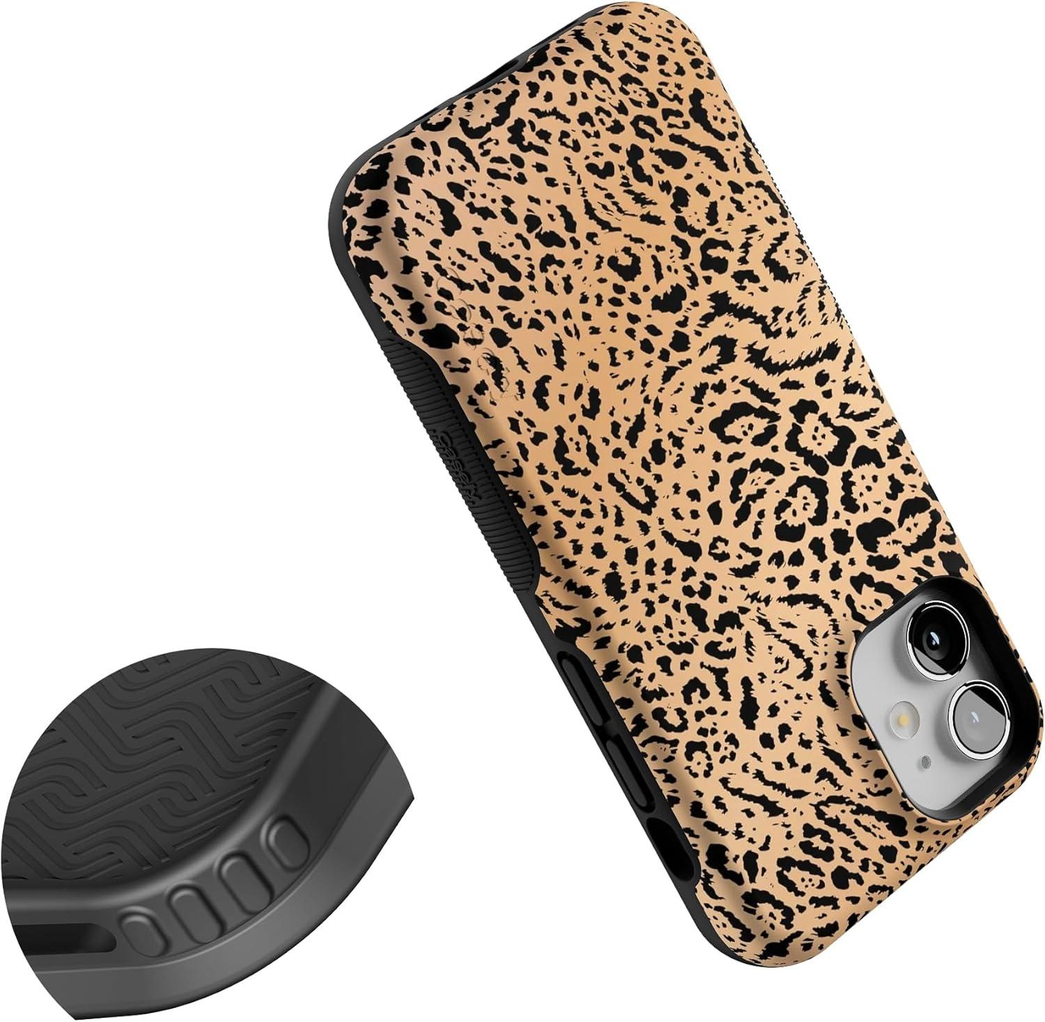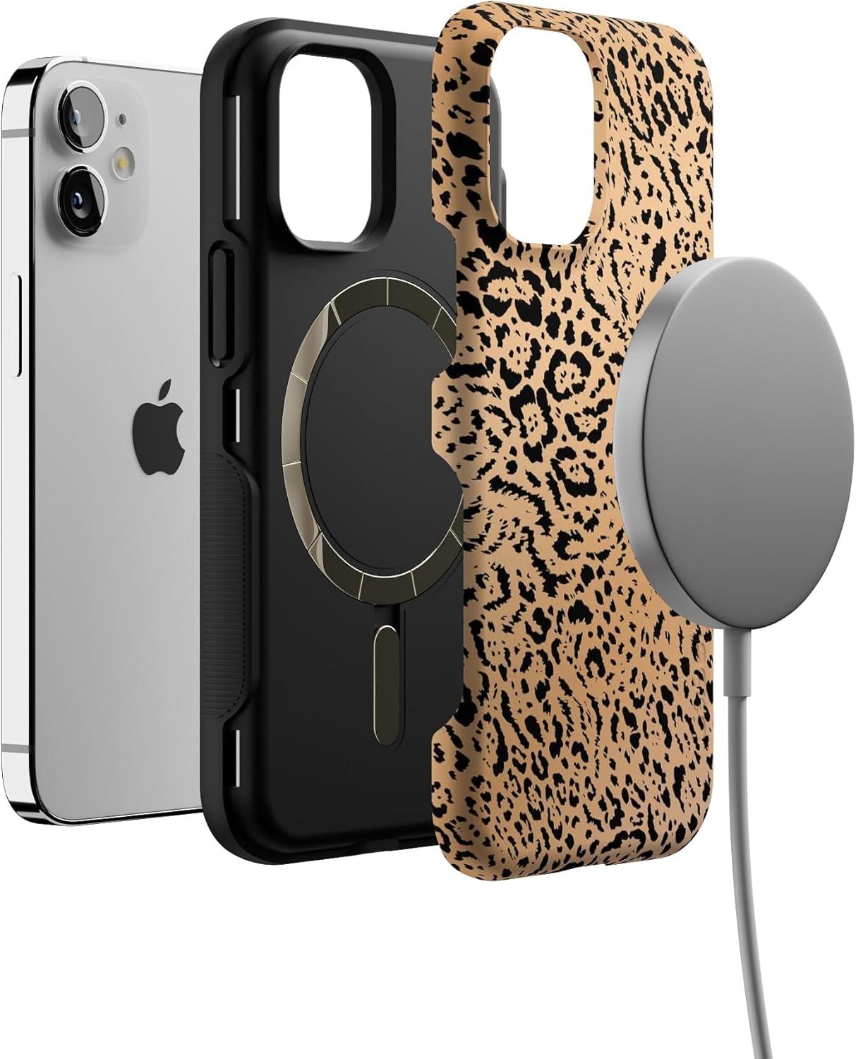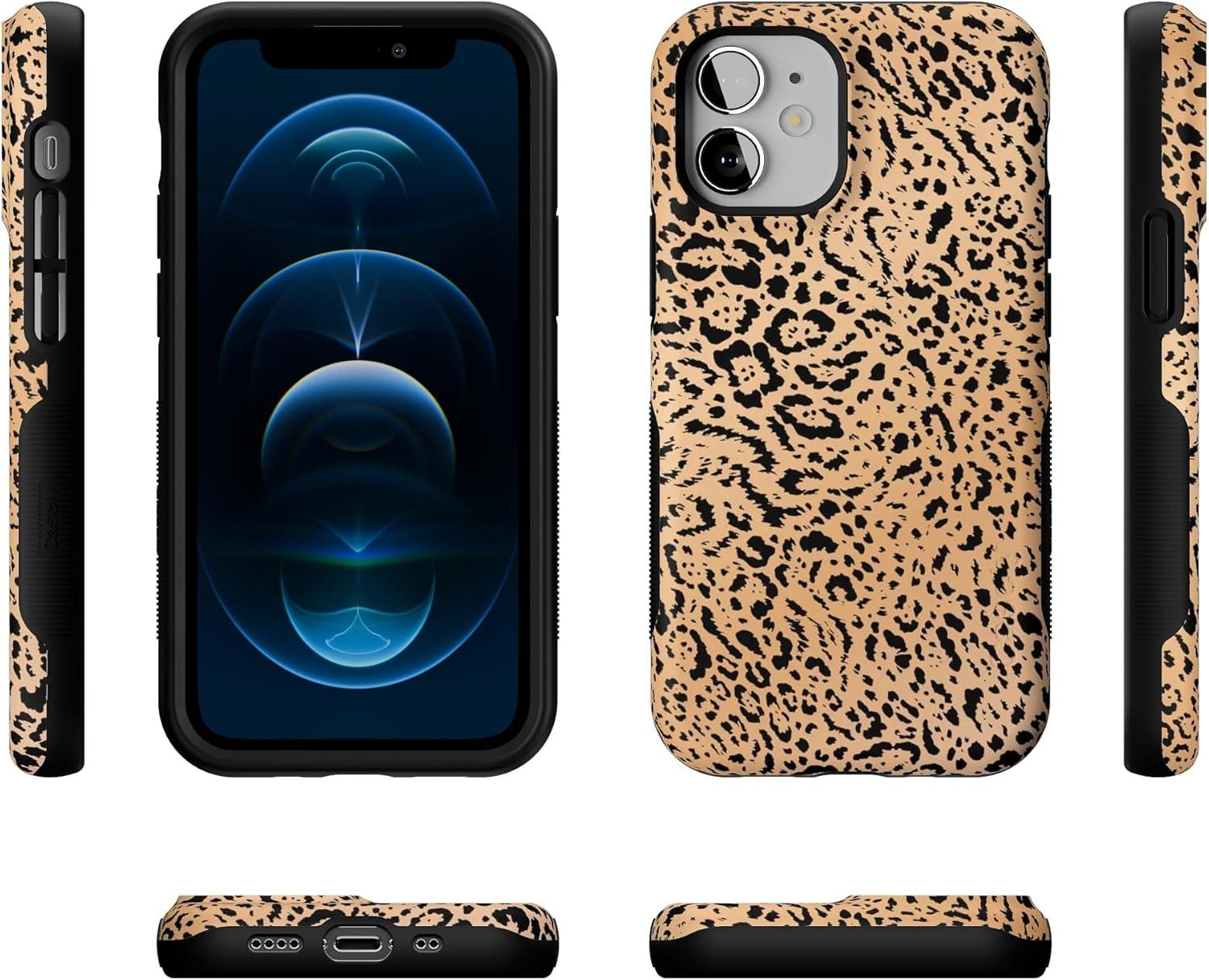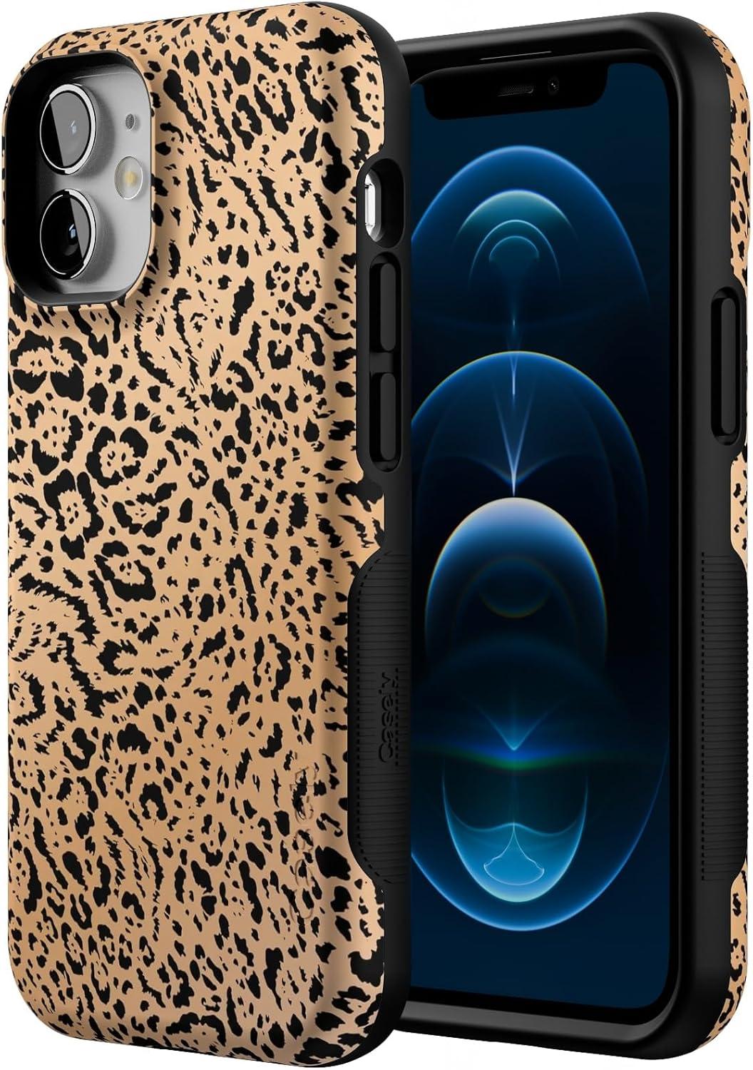 Casely iPhone 12 Mini Case | Dark Fantasy | Contrast Floral | Bold Protective Design | Compatible with MagSafe(Born to Be Wild | Jaguar Print)