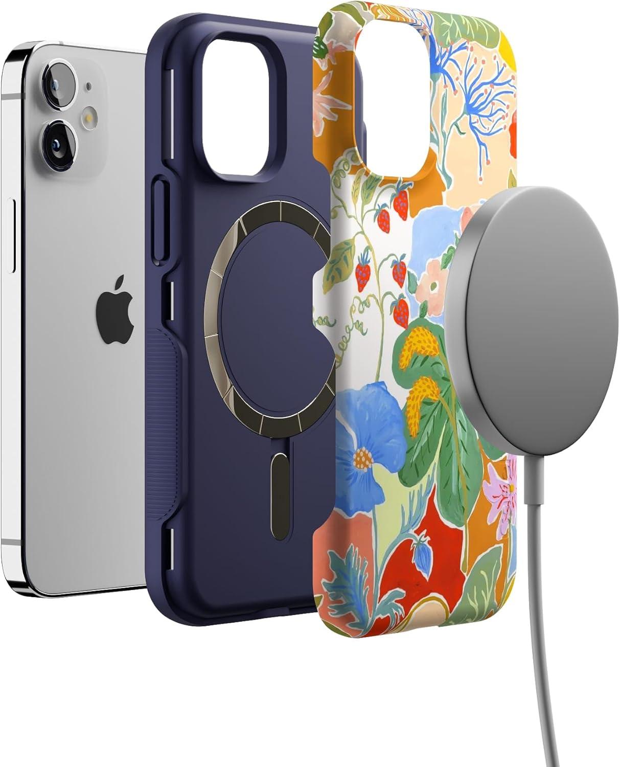 Casely iPhone 12 Mini Case | Dark Fantasy | Contrast Floral | Bold Protective Design | Compatible with MagSafe(Botanical Blooms | Floral Patchwork)