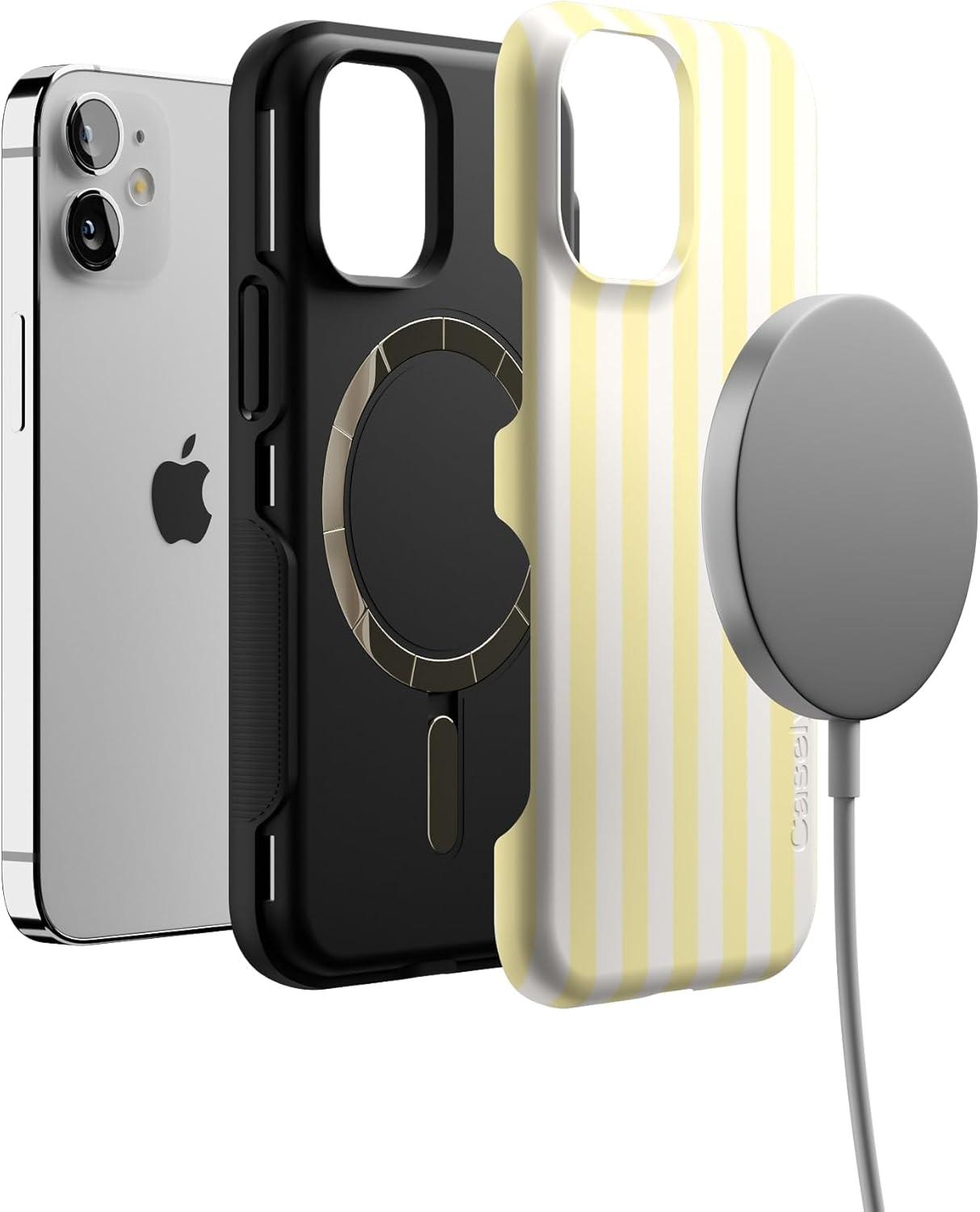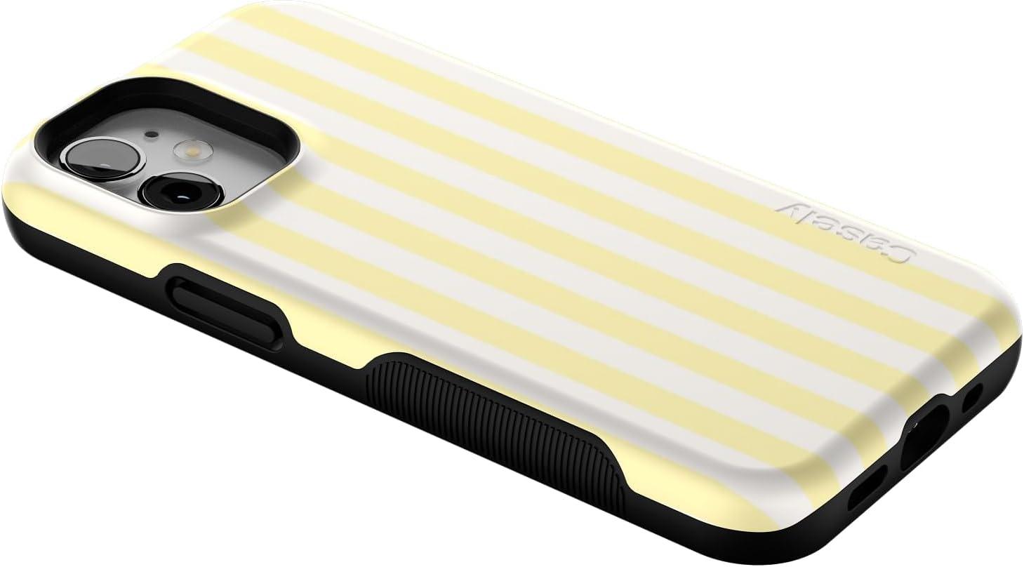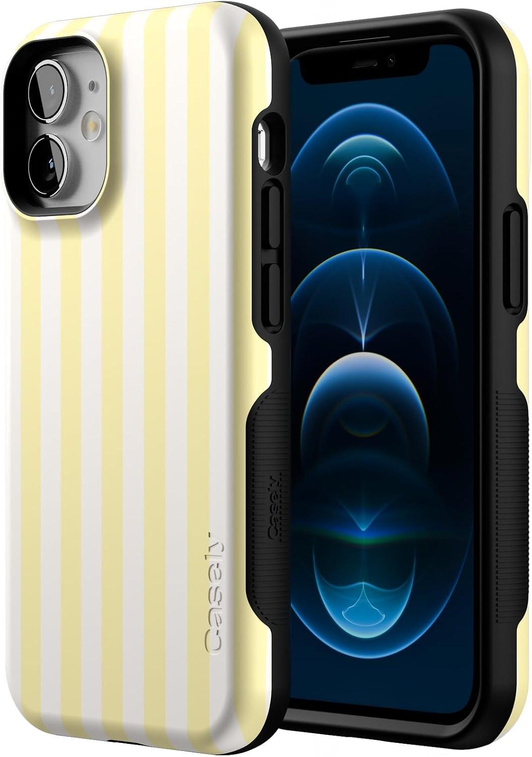 Casely iPhone 12 Mini Case | Dark Fantasy | Contrast Floral | Bold Protective Design | Compatible with MagSafe(Butter Yellow Stripes | Sunday Best)