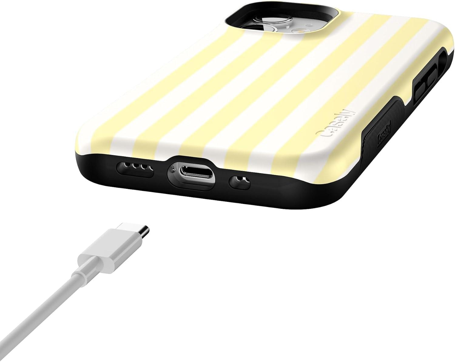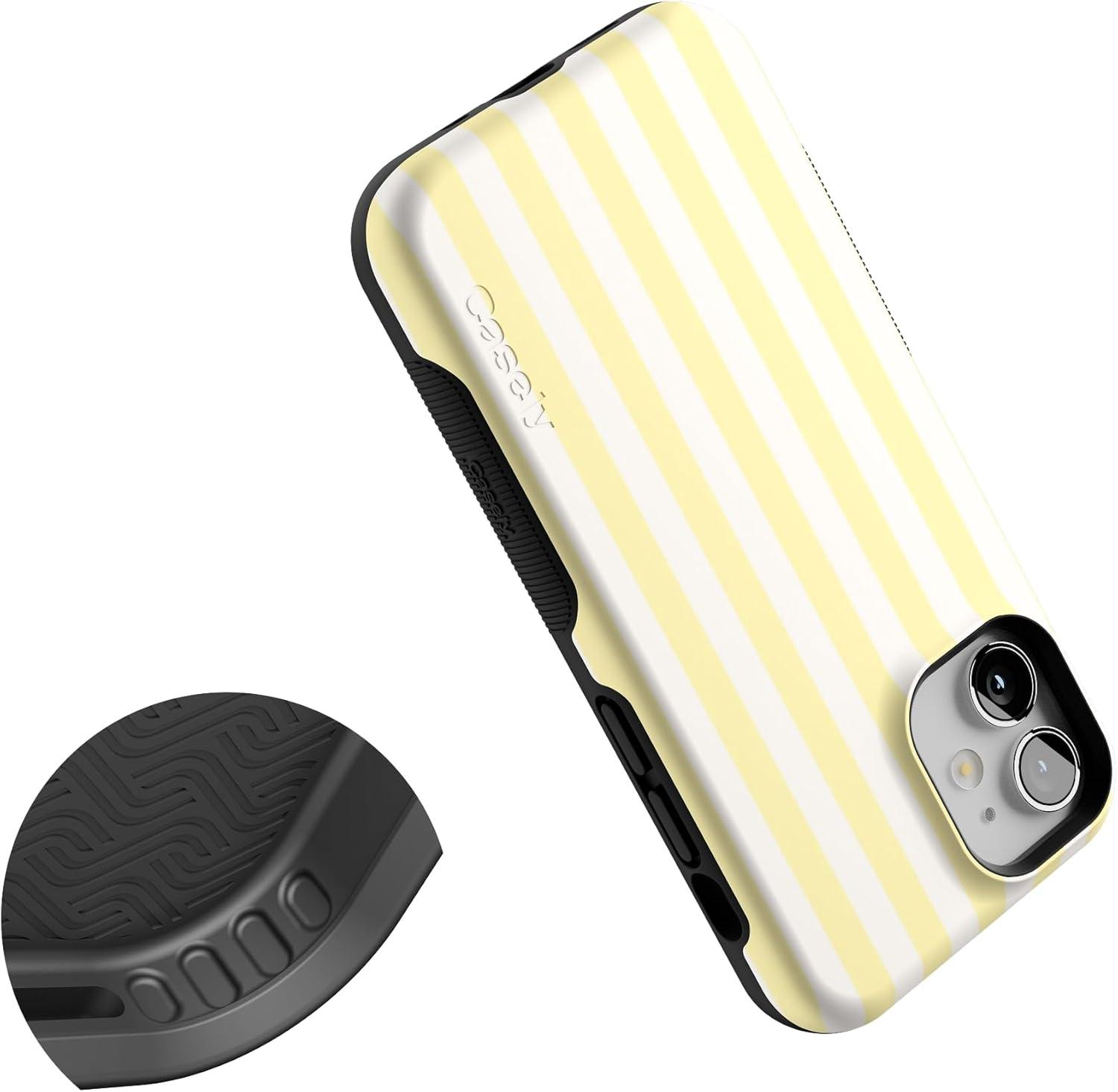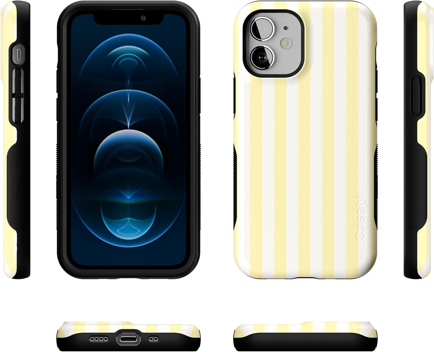 Casely iPhone 12 Mini Case | Dark Fantasy | Contrast Floral | Bold Protective Design | Compatible with MagSafe(Butter Yellow Stripes | Sunday Best)