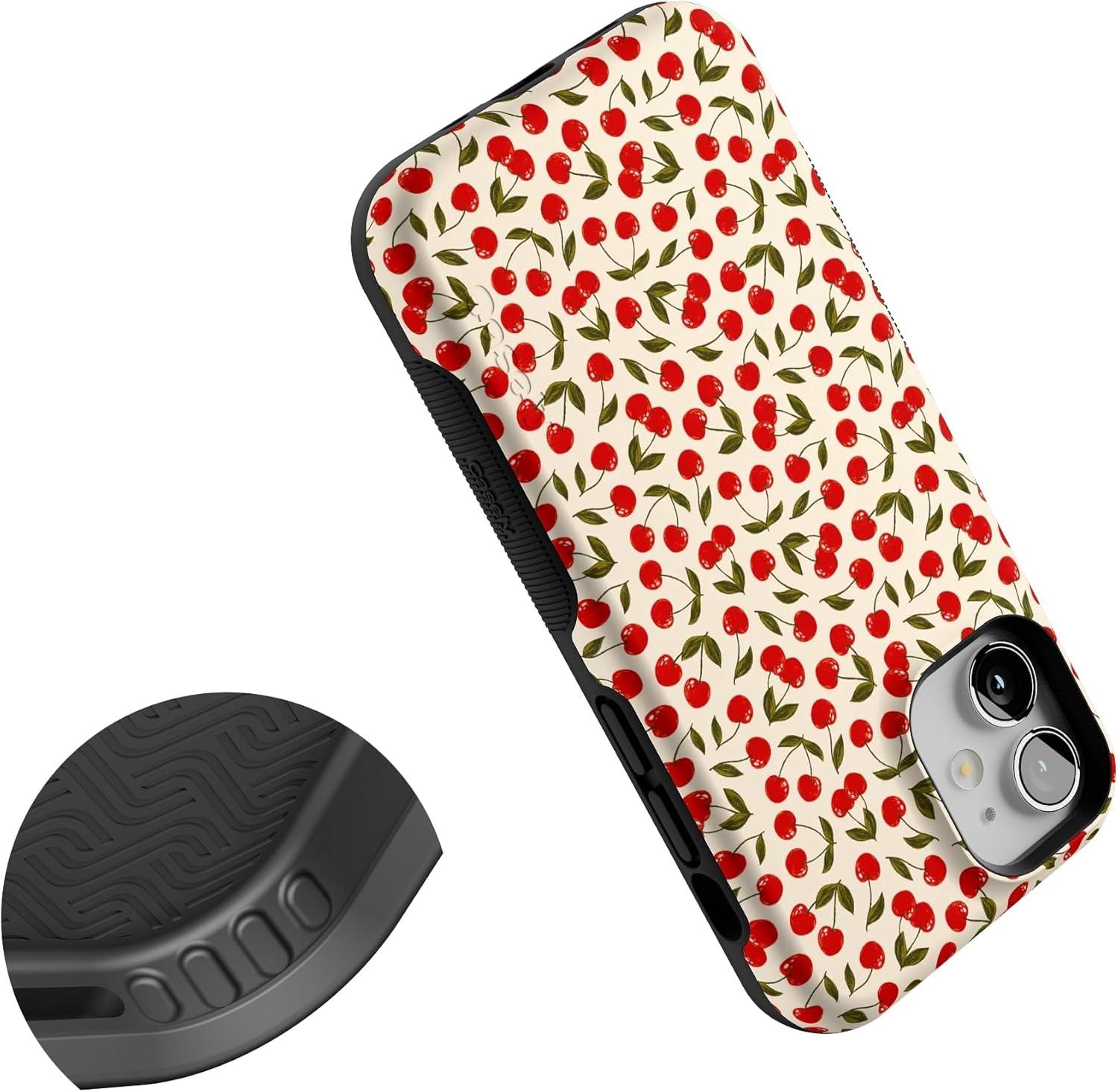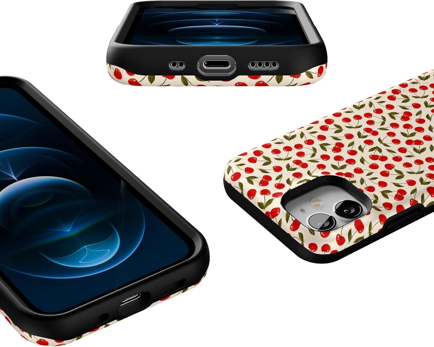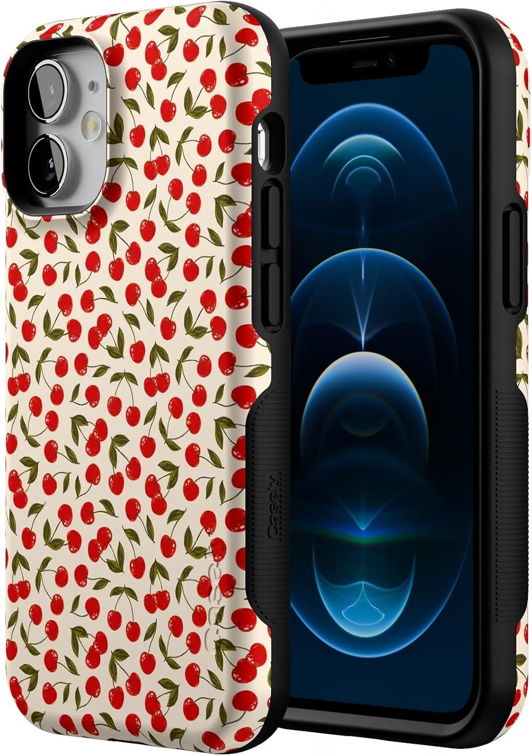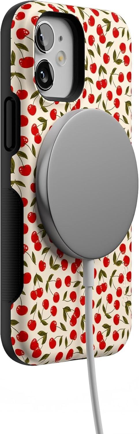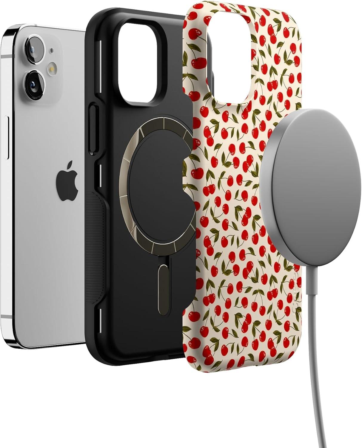 Casely iPhone 12 Mini Case | Dark Fantasy | Contrast Floral | Bold Protective Design | Compatible with MagSafe(Cherry on Top | Red Cherries)