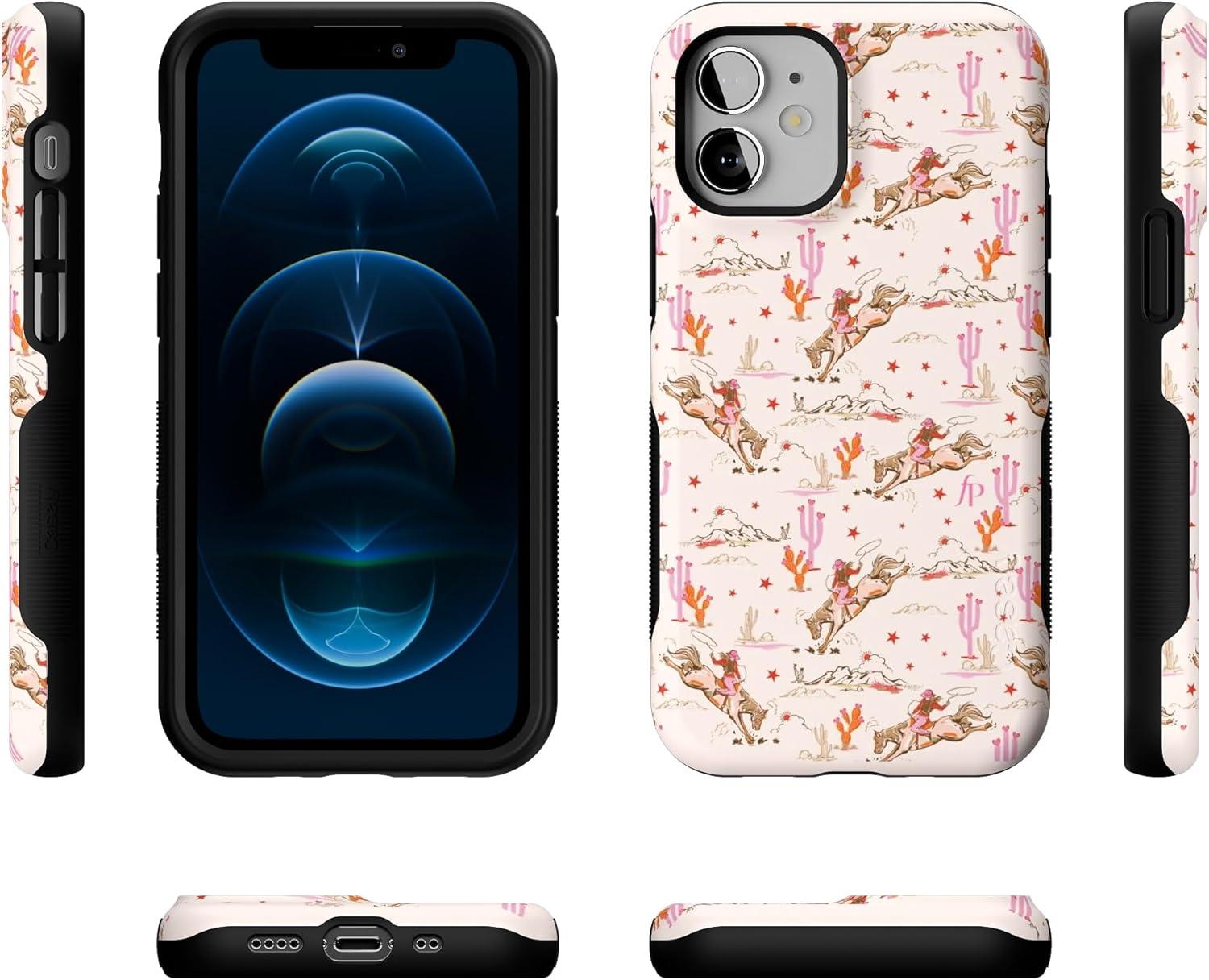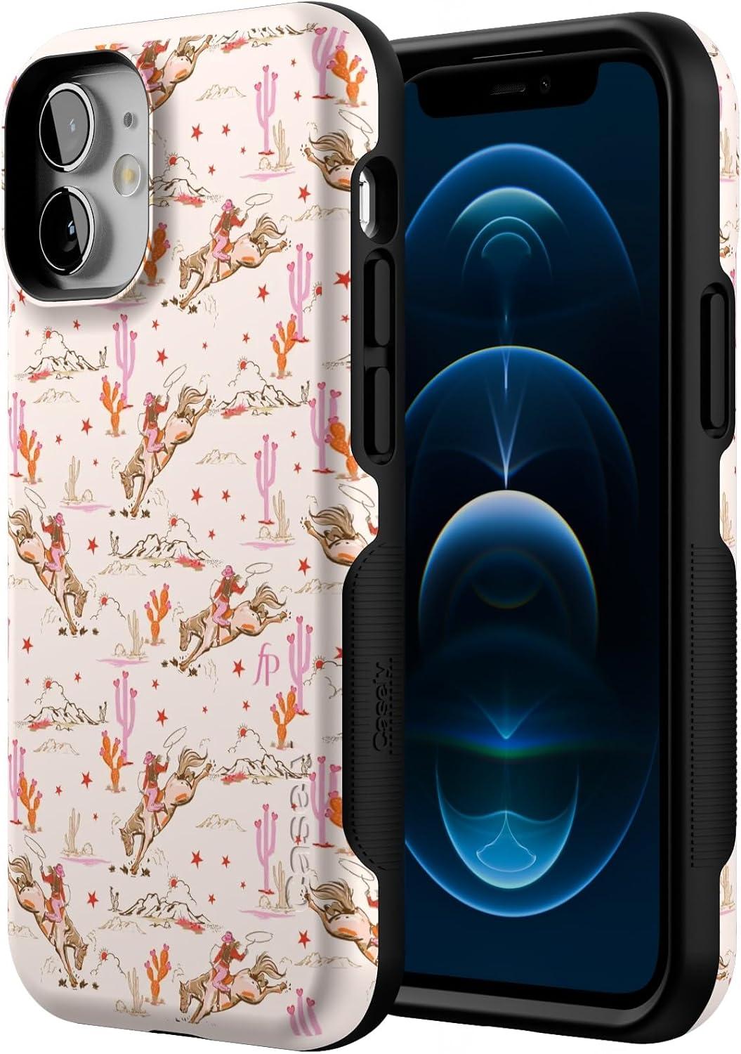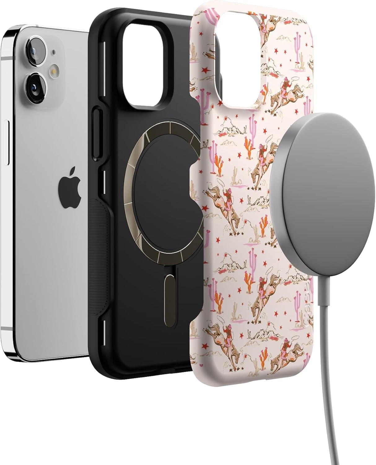 Casely iPhone 12 Mini Case | Dark Fantasy | Contrast Floral | Bold Protective Design | Compatible with MagSafe(Cowgirl Canyon | FashionPass x Casely)