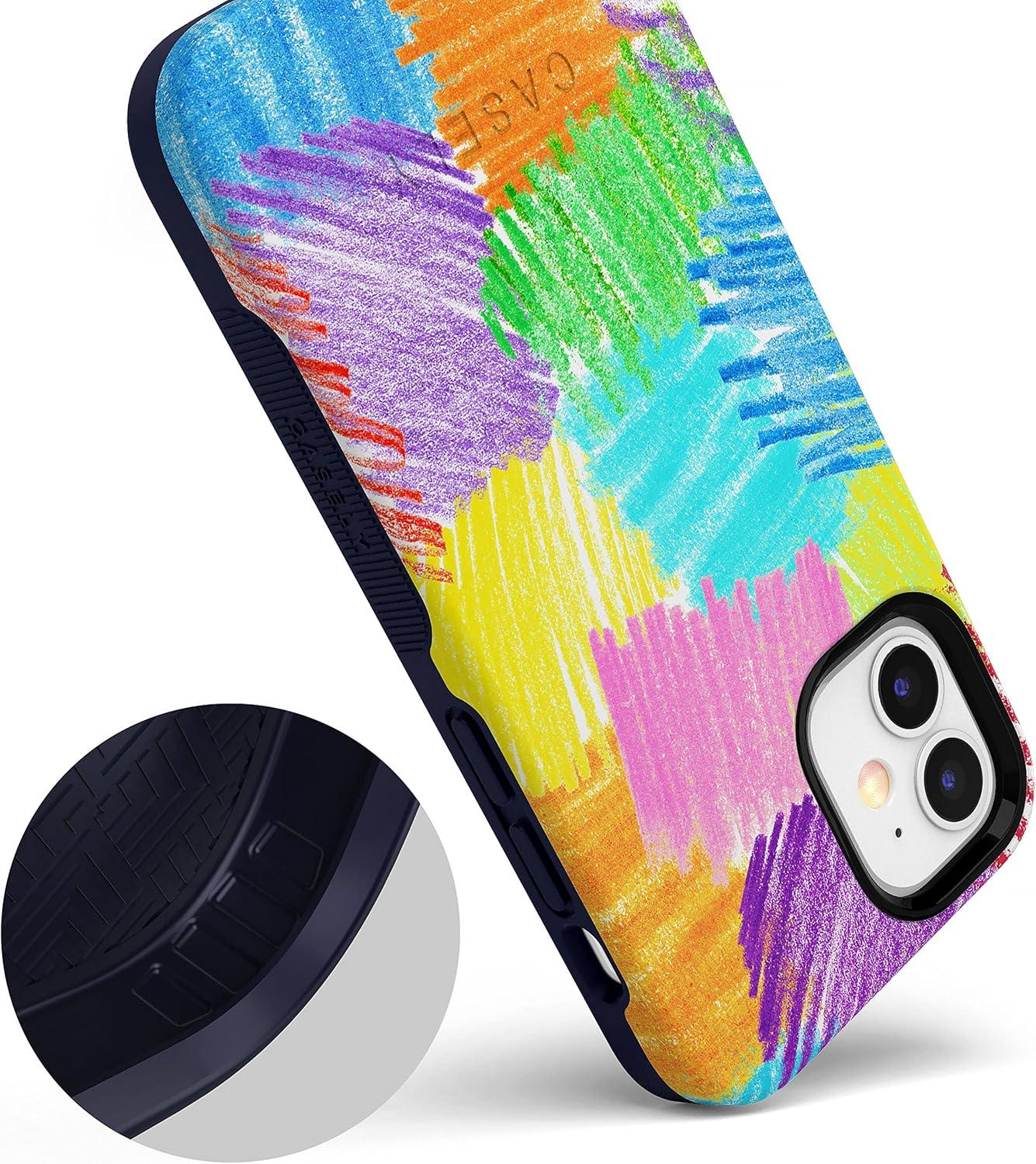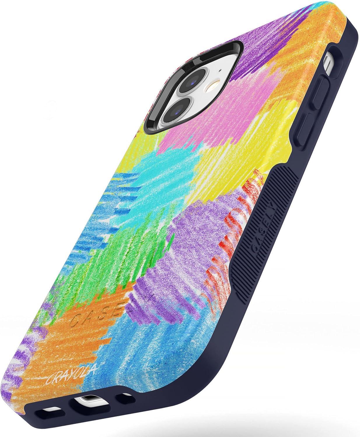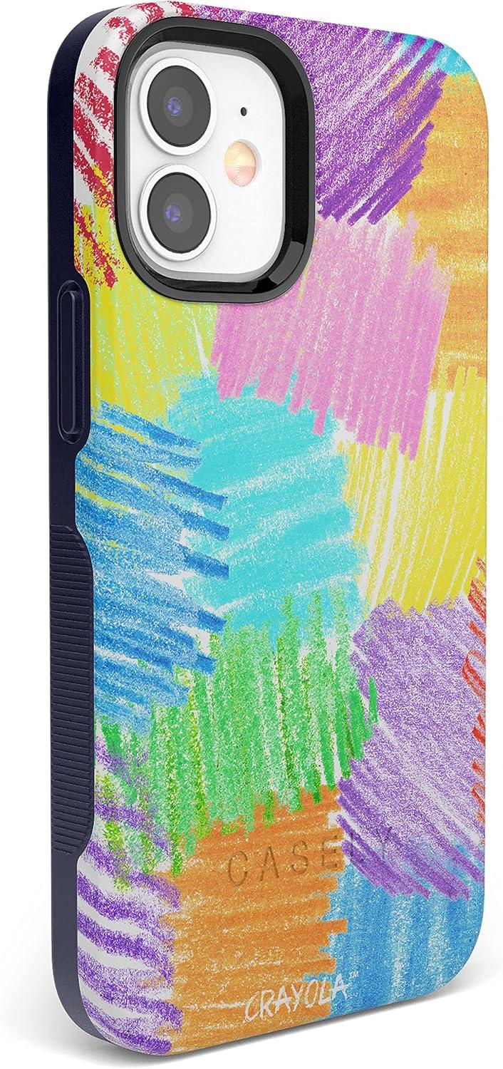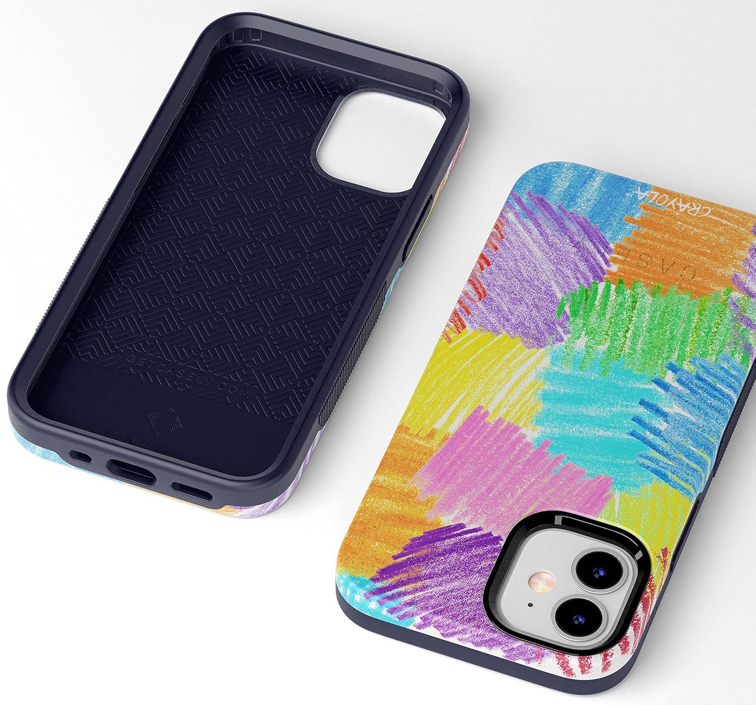 Casely iPhone 12 Mini Case | Dark Fantasy | Contrast Floral | Bold Protective Design | Compatible with MagSafe(Crayola | Scribble Me That | Rainbow Pencil)