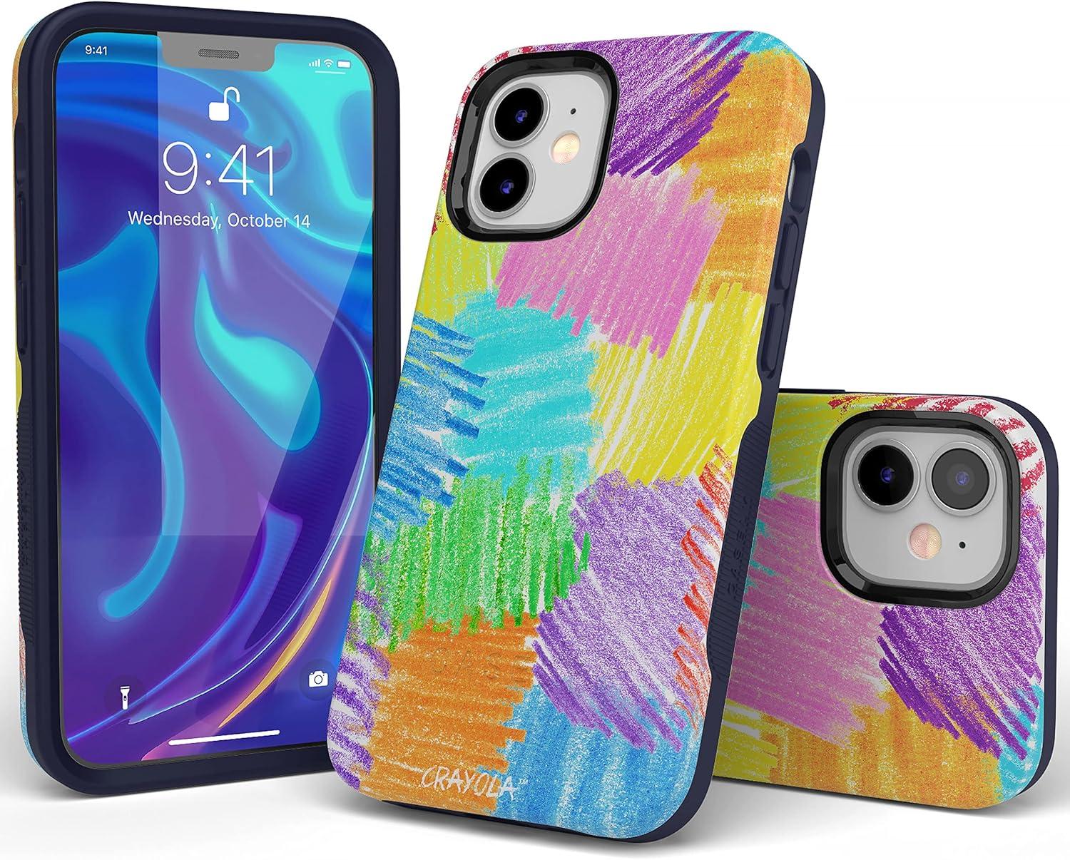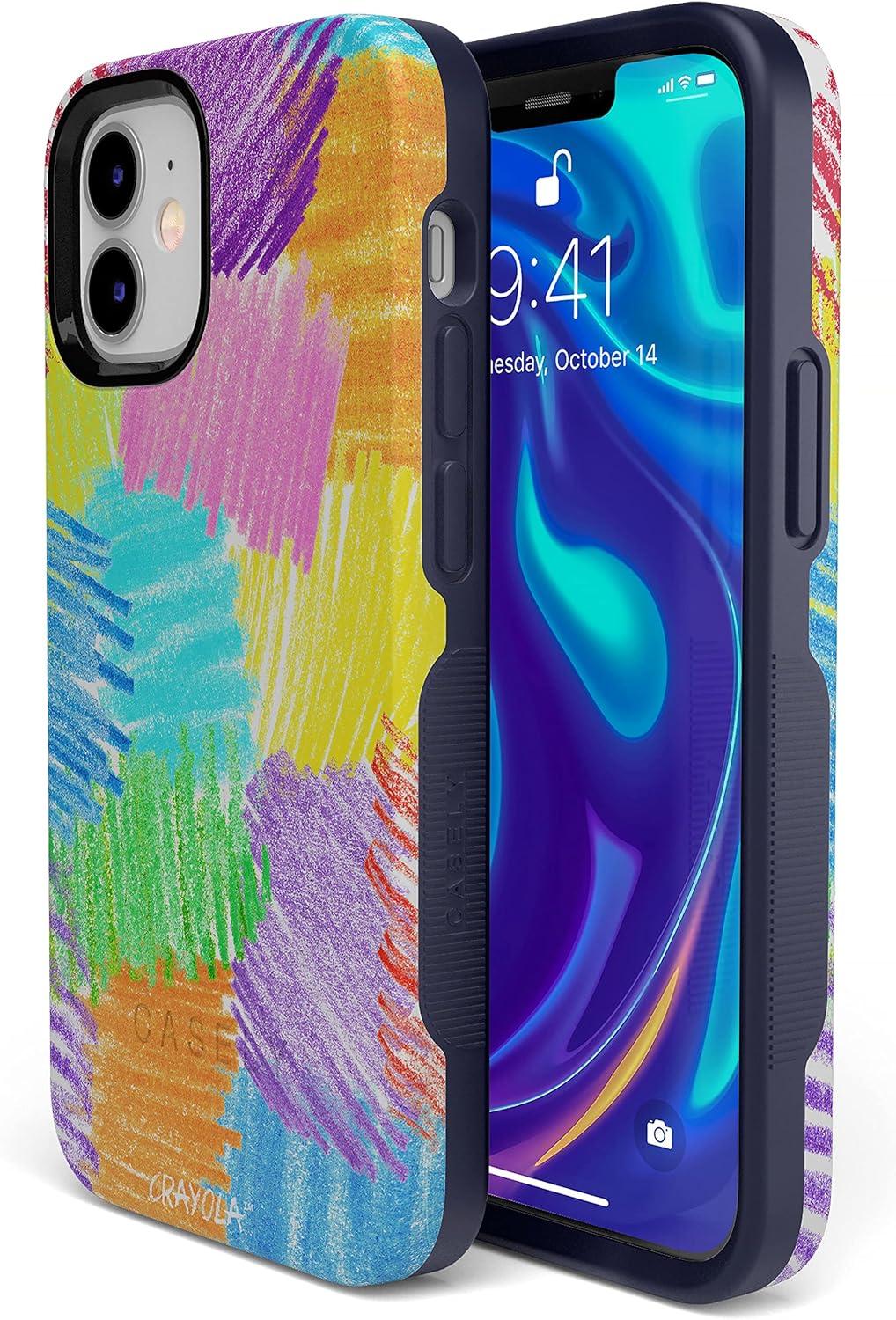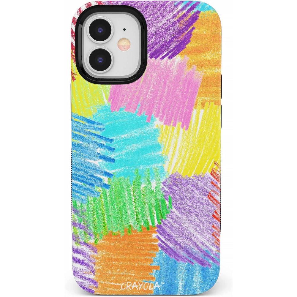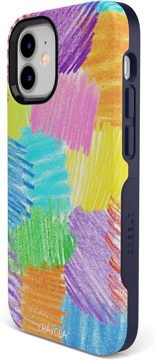Casely iPhone 12 Mini Case | Dark Fantasy | Contrast Floral | Bold Protective Design | Compatible with MagSafe(Crayola | Scribble Me That | Rainbow Pencil)