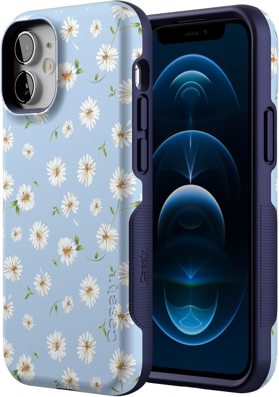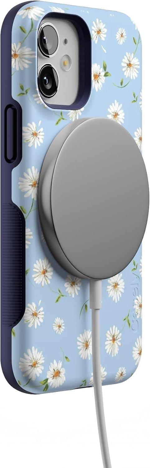 Casely iPhone 12 Mini Case | Dark Fantasy | Contrast Floral | Bold Protective Design | Compatible with MagSafe(Daisy Daydream | Baby Blue Floral)