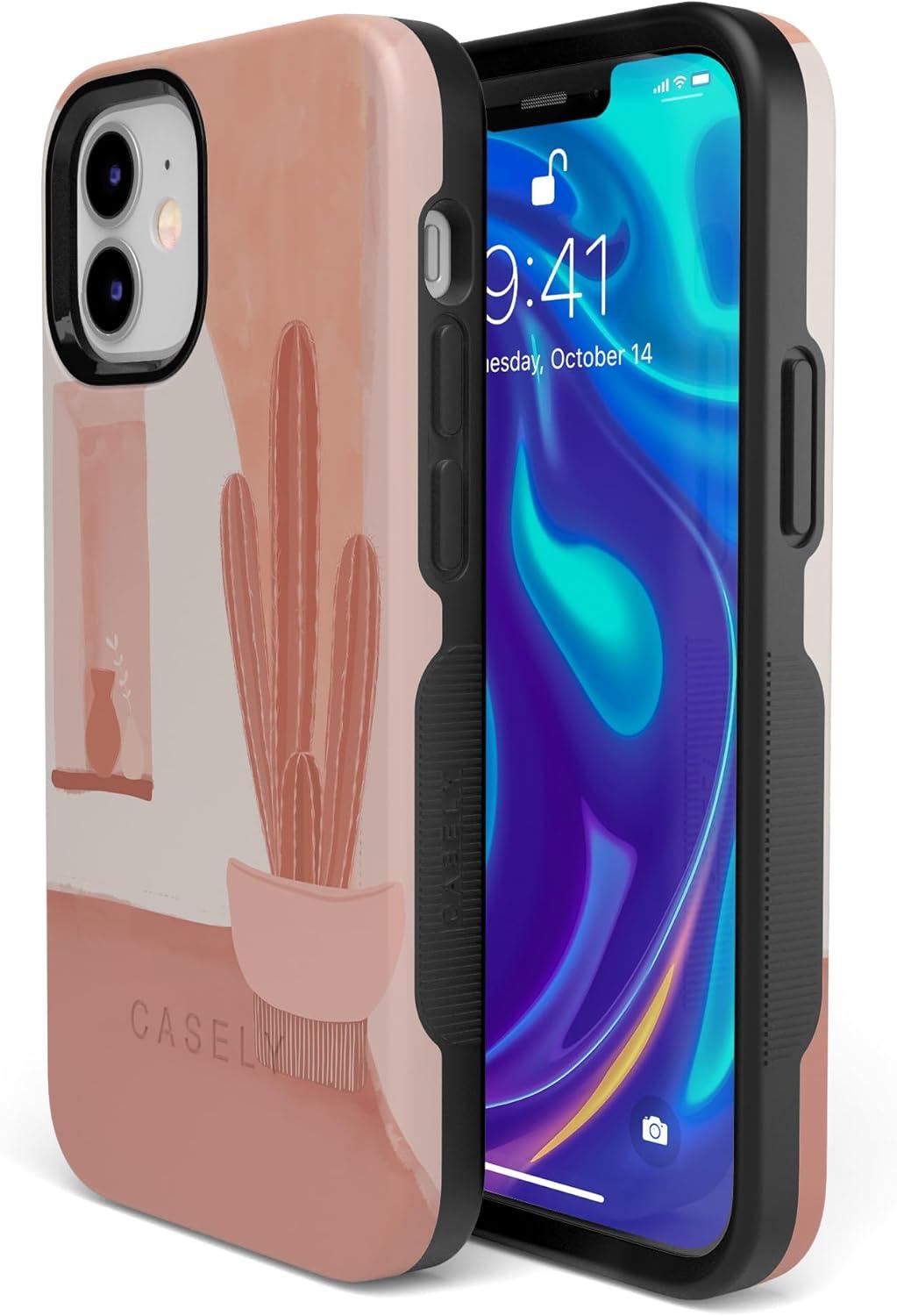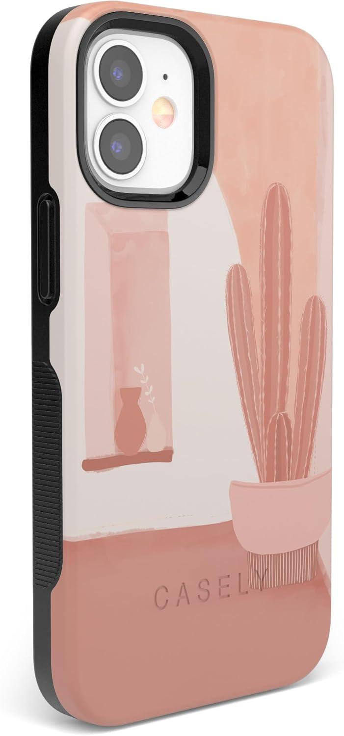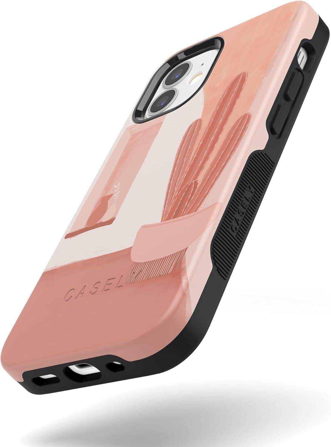 Casely iPhone 12 Mini Case | Dark Fantasy | Contrast Floral | Bold Protective Design | Compatible with MagSafe(Desert Daze | Peachy Cactus)