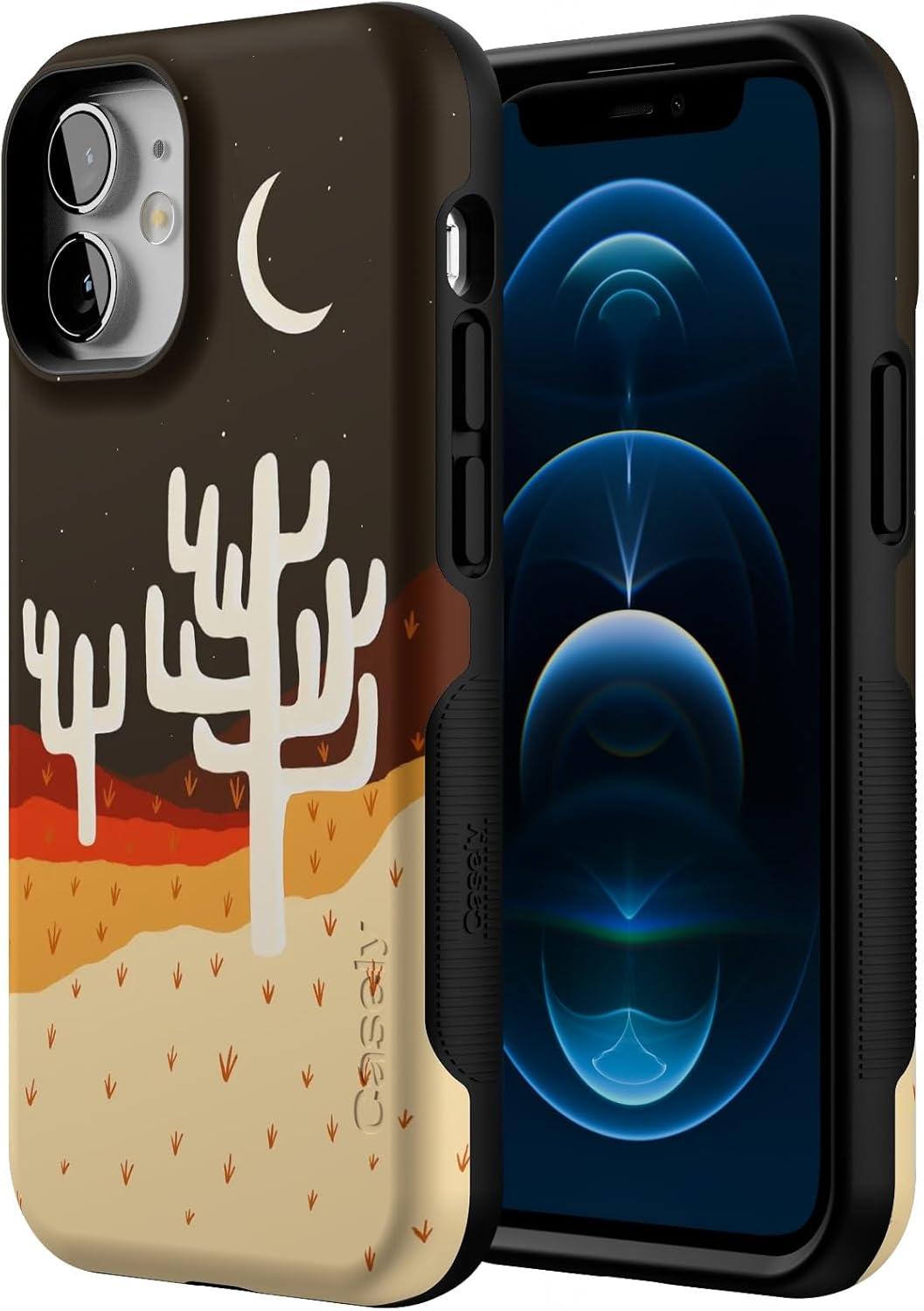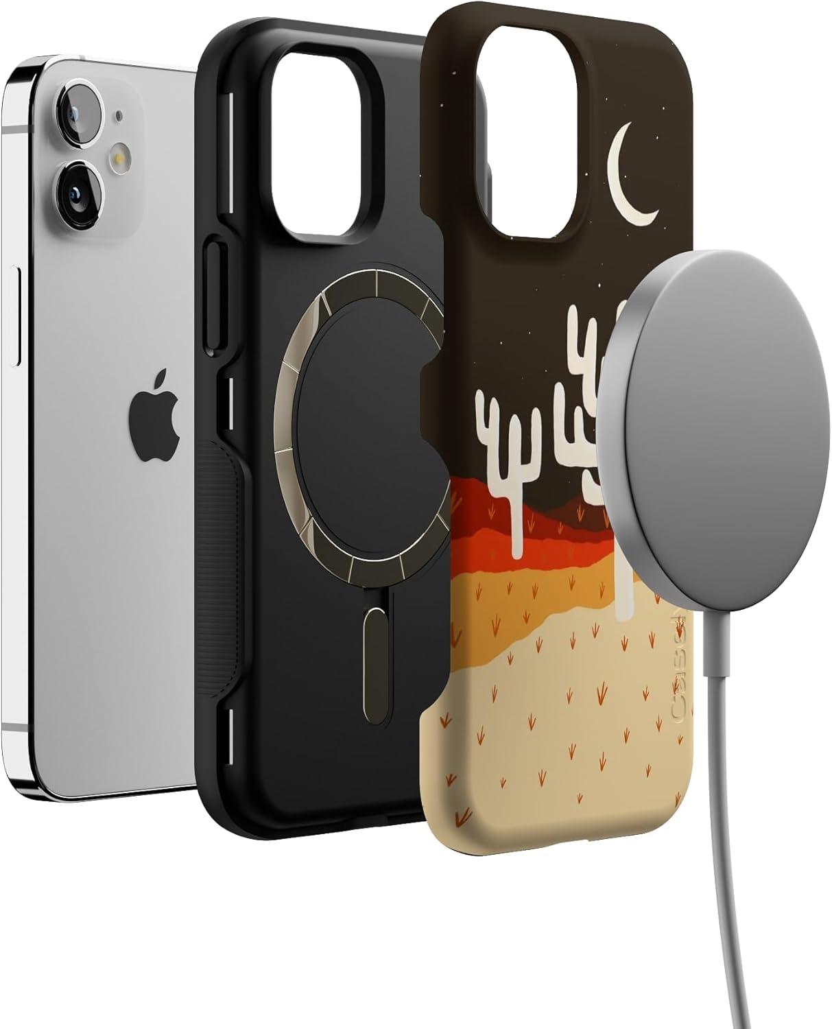 Casely iPhone 12 Mini Case | Dark Fantasy | Contrast Floral | Bold Protective Design | Compatible with MagSafe(Desert Nights | Cactus Colorblock)