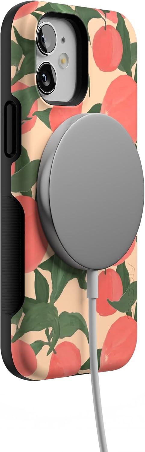Casely iPhone 12 Mini Case | Dark Fantasy | Contrast Floral | Bold Protective Design | Compatible with MagSafe(Feeling Peachy | Blush Vines)