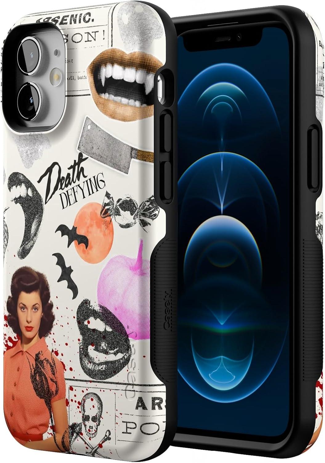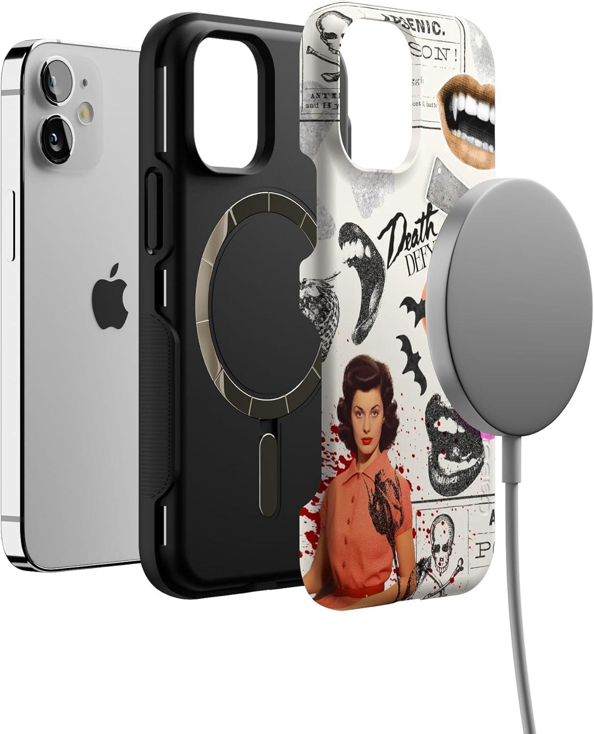 Casely iPhone 12 Mini Case | Dark Fantasy | Contrast Floral | Bold Protective Design | Compatible with MagSafe(If You Dare | Horror Collage)