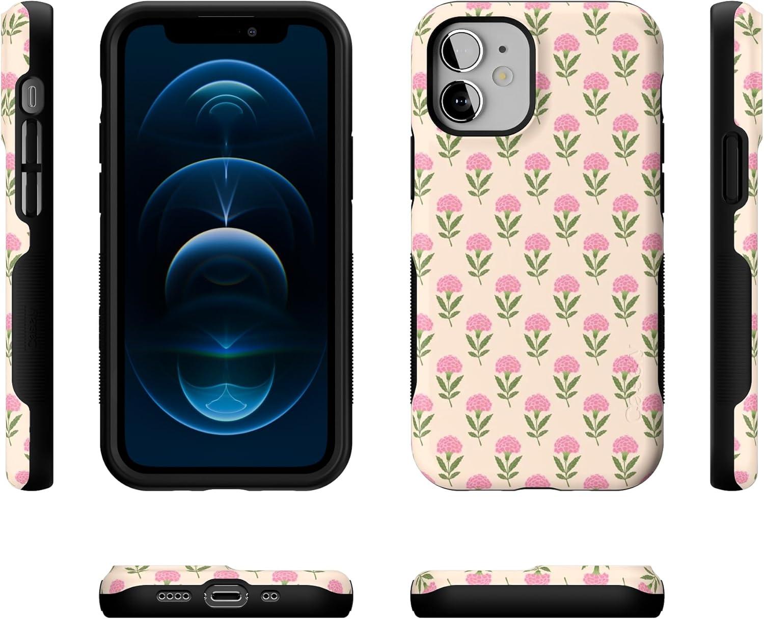 Casely iPhone 12 Mini Case | Dark Fantasy | Contrast Floral | Bold Protective Design | Compatible with MagSafe(Jenna’s Flowers | Fun on Weekdays)