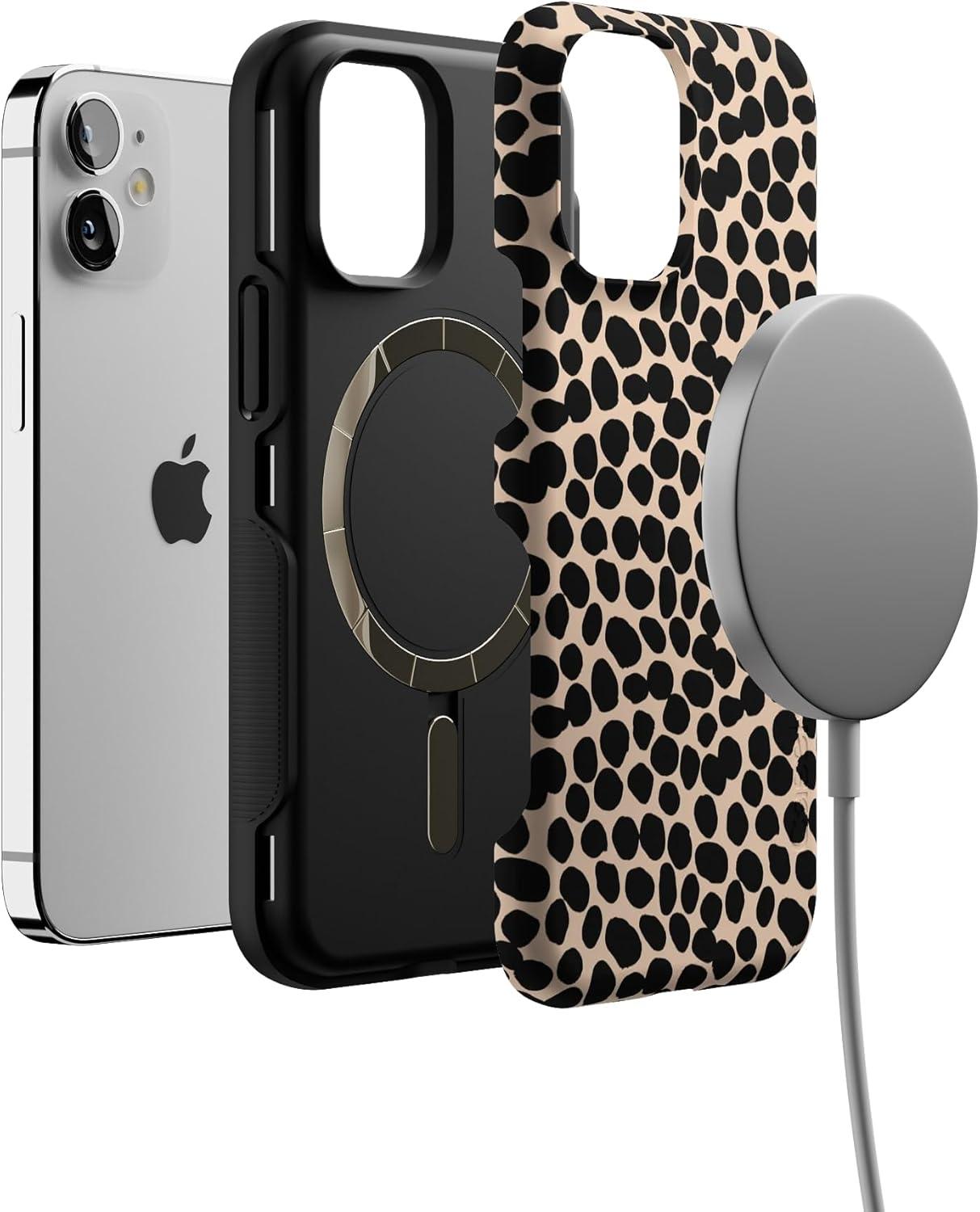 Casely iPhone 12 Mini Case | Dark Fantasy | Contrast Floral | Bold Protective Design | Compatible with MagSafe(Lost in Spots | Cheetah Print)