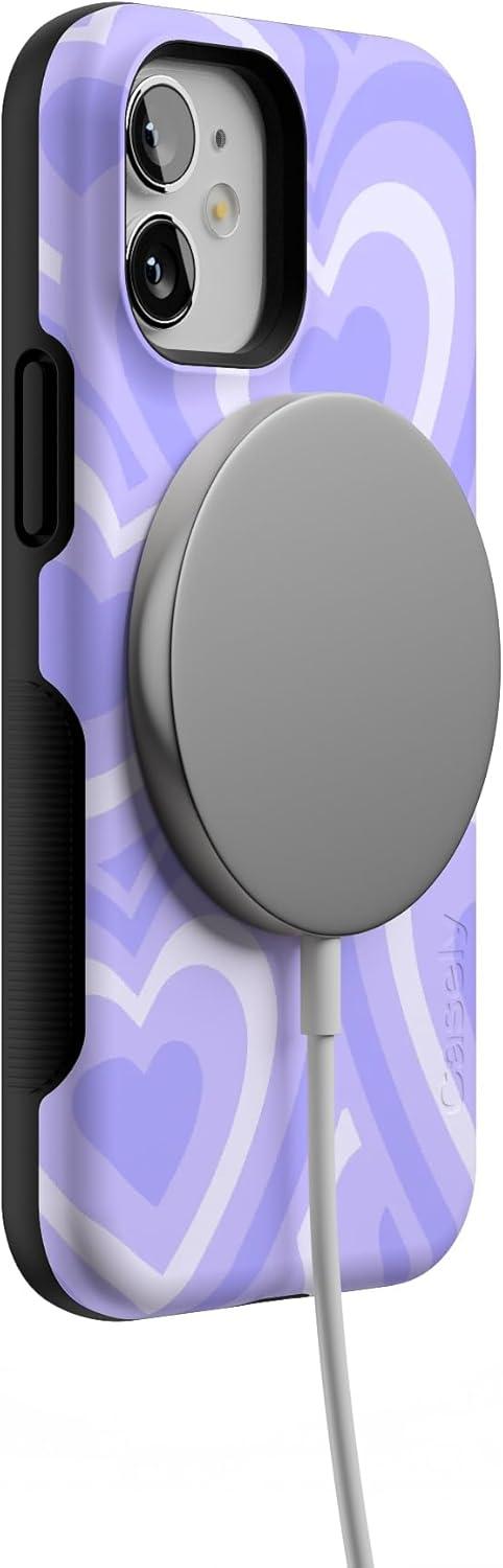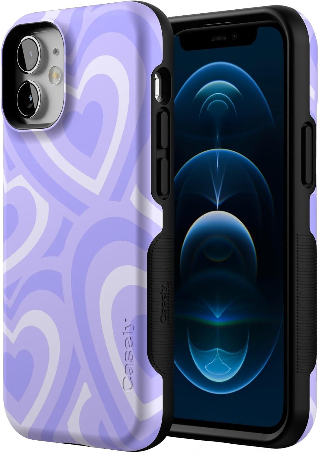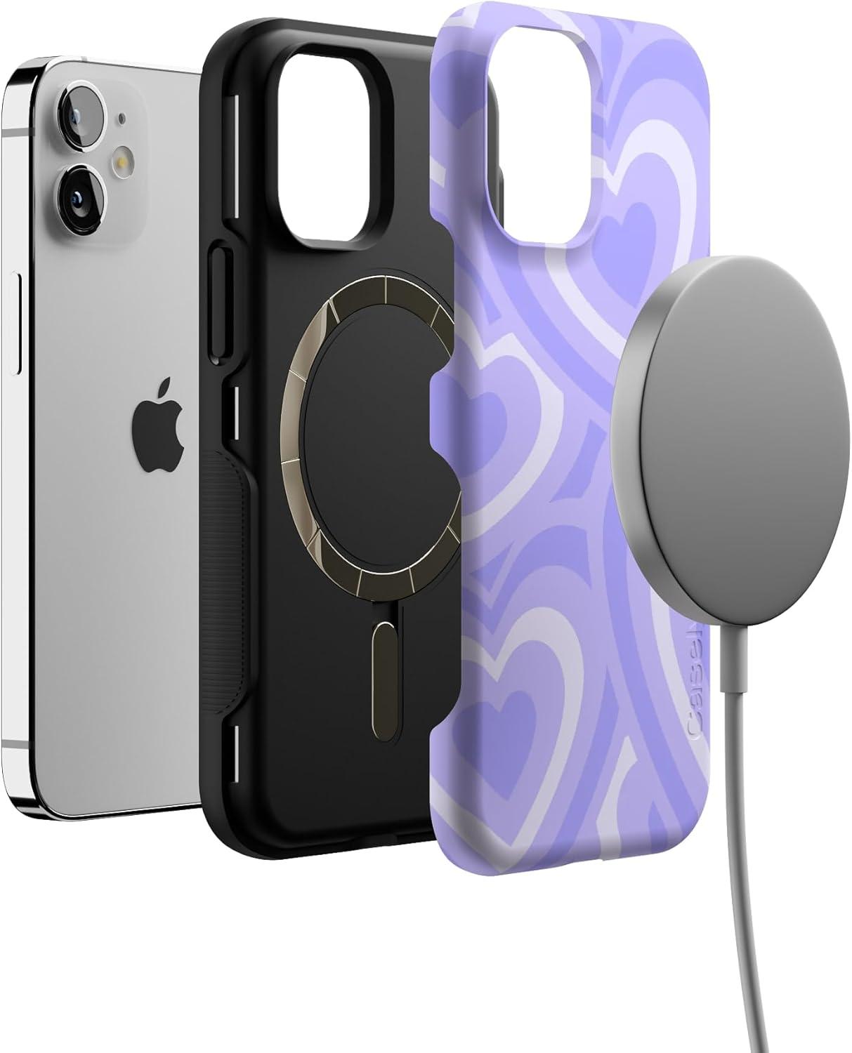 Casely iPhone 12 Mini Case | Dark Fantasy | Contrast Floral | Bold Protective Design | Compatible with MagSafe(Love Song | Lavender Heart)