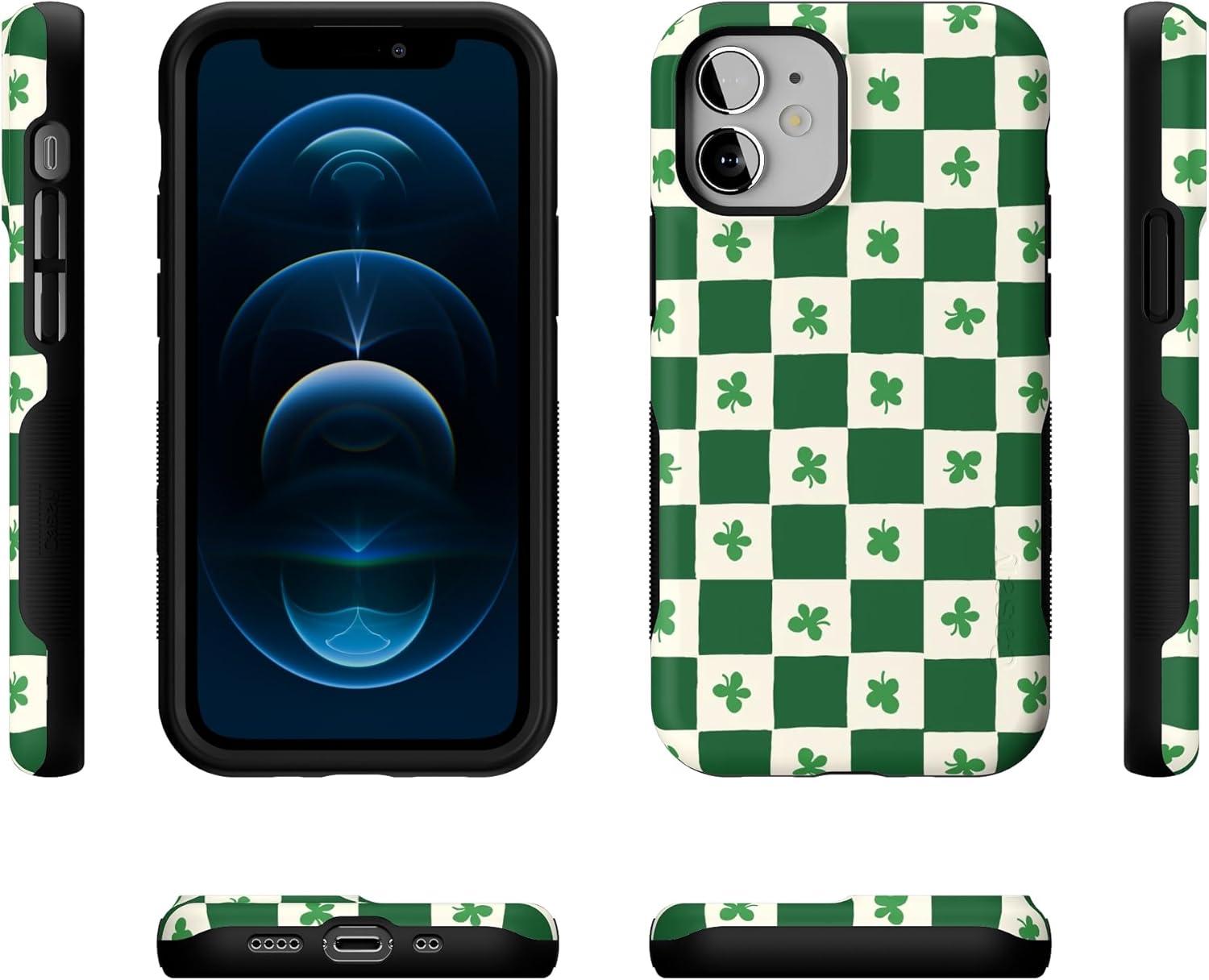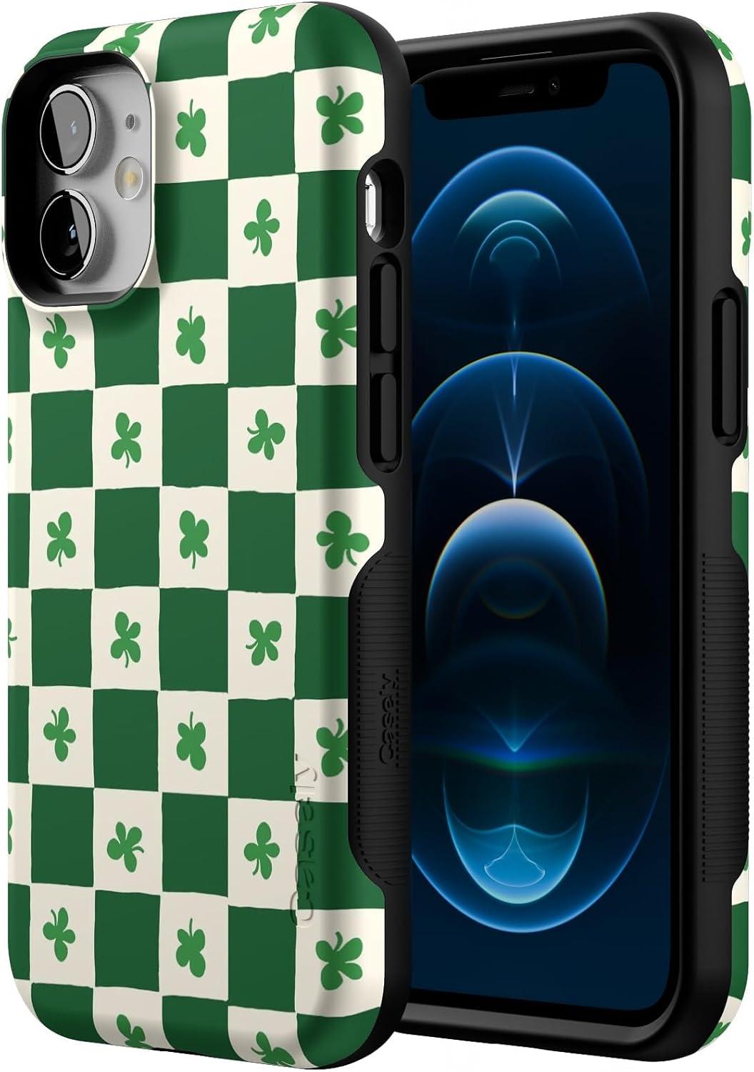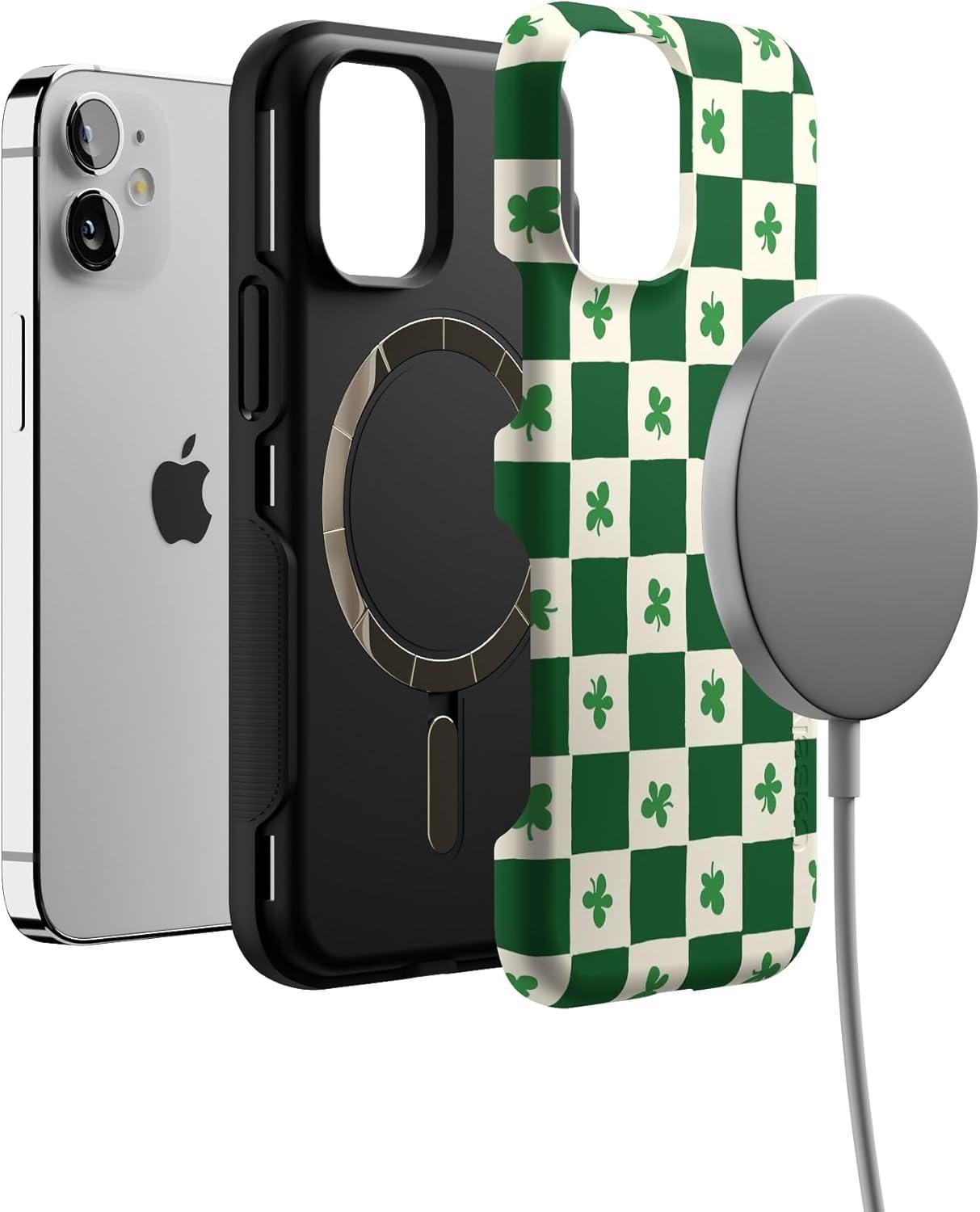 Casely iPhone 12 Mini Case | Dark Fantasy | Contrast Floral | Bold Protective Design | Compatible with MagSafe(Lucky You | Shamrock)