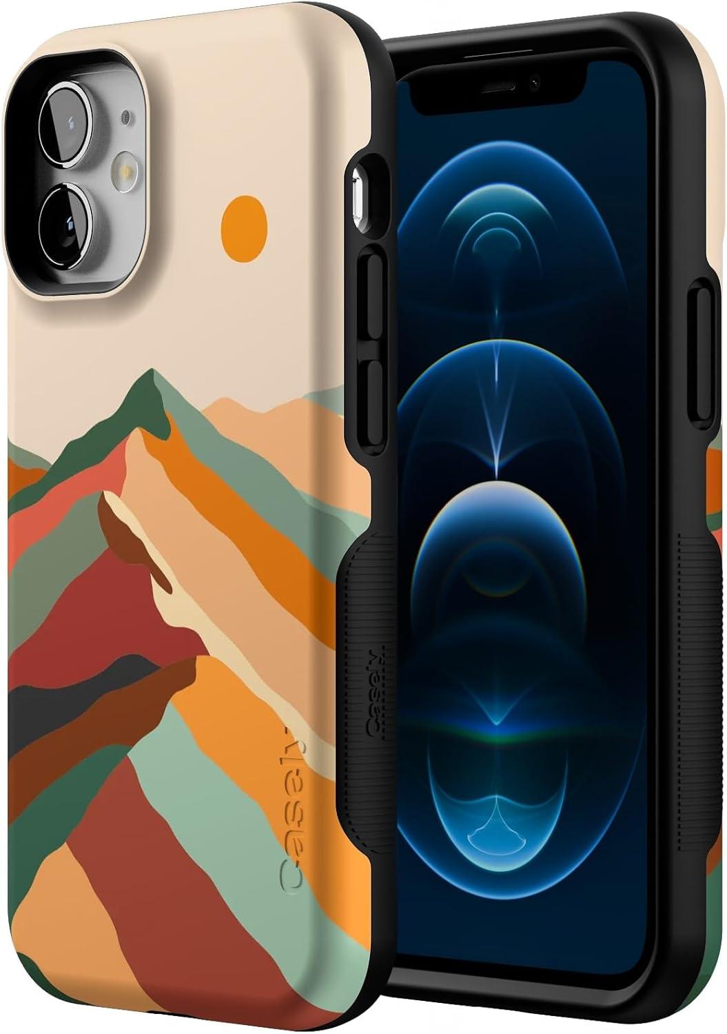 Casely iPhone 12 Mini Case | Dark Fantasy | Contrast Floral | Bold Protective Design | Compatible with MagSafe(Magic Mountain | Colorblock)
