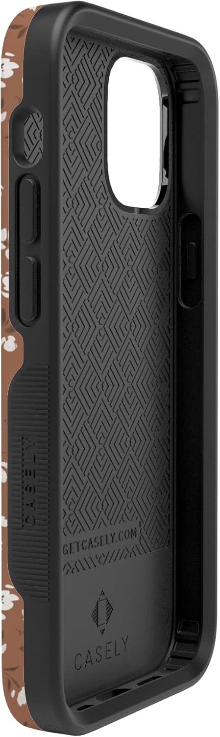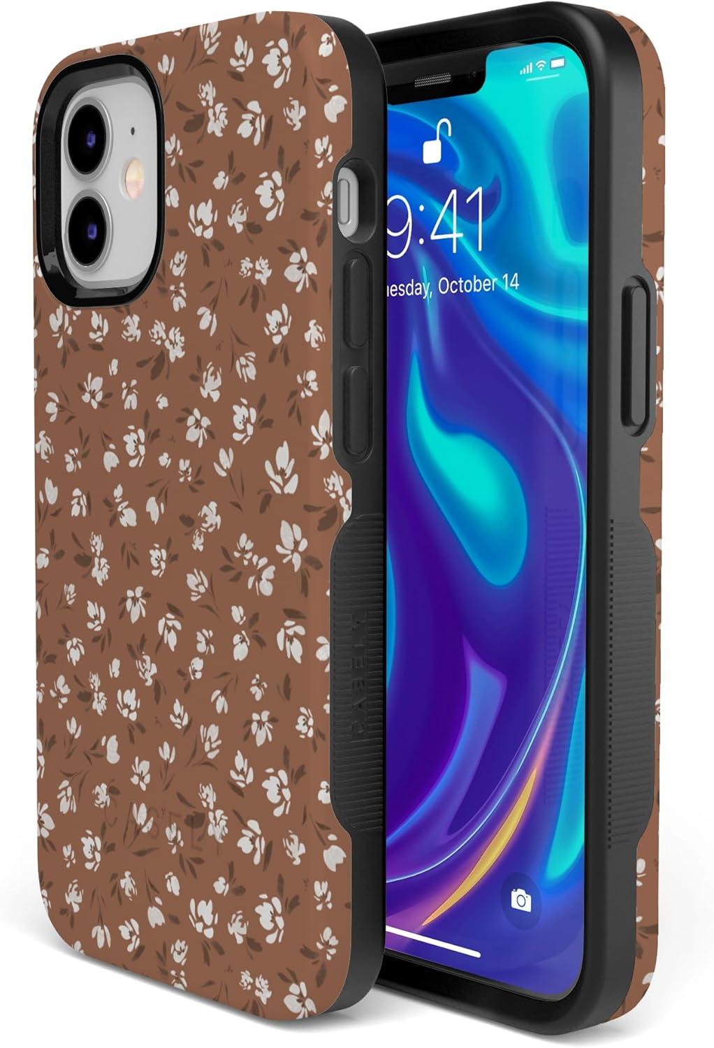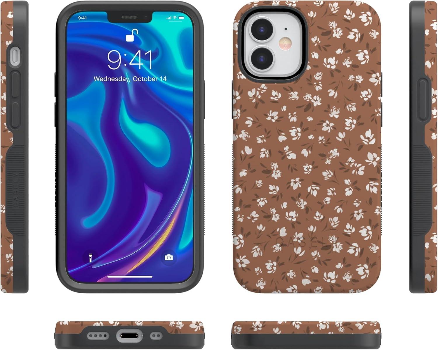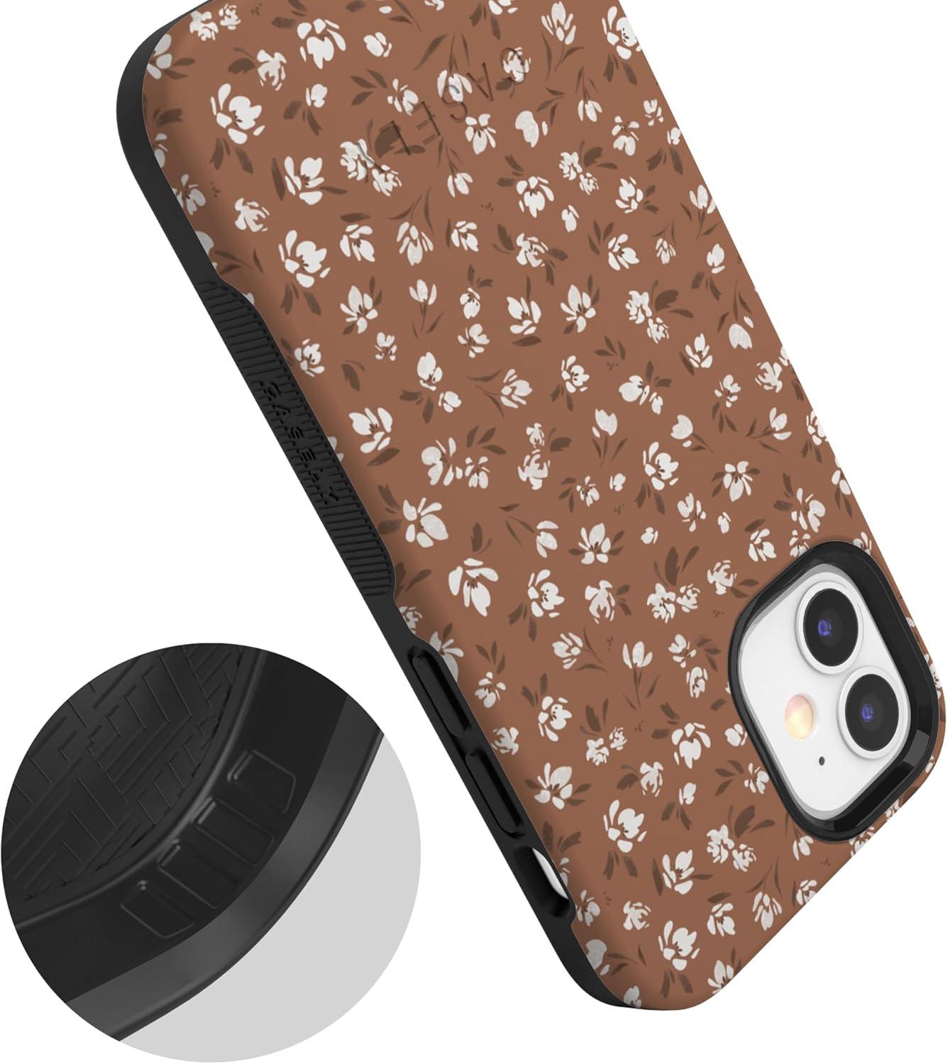 Casely iPhone 12 Mini Case | Dark Fantasy | Contrast Floral | Bold Protective Design | Compatible with MagSafe(Mocha Meadow | Tiny Flowers)